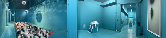 Traseul prin expoziția multimedia a rezultat din interacțiunea dintre firul narativ generat de dialogurile dintre artiști și relațiile compoziționale dintre lucrări, precum și dintre lucrări și spațiu.