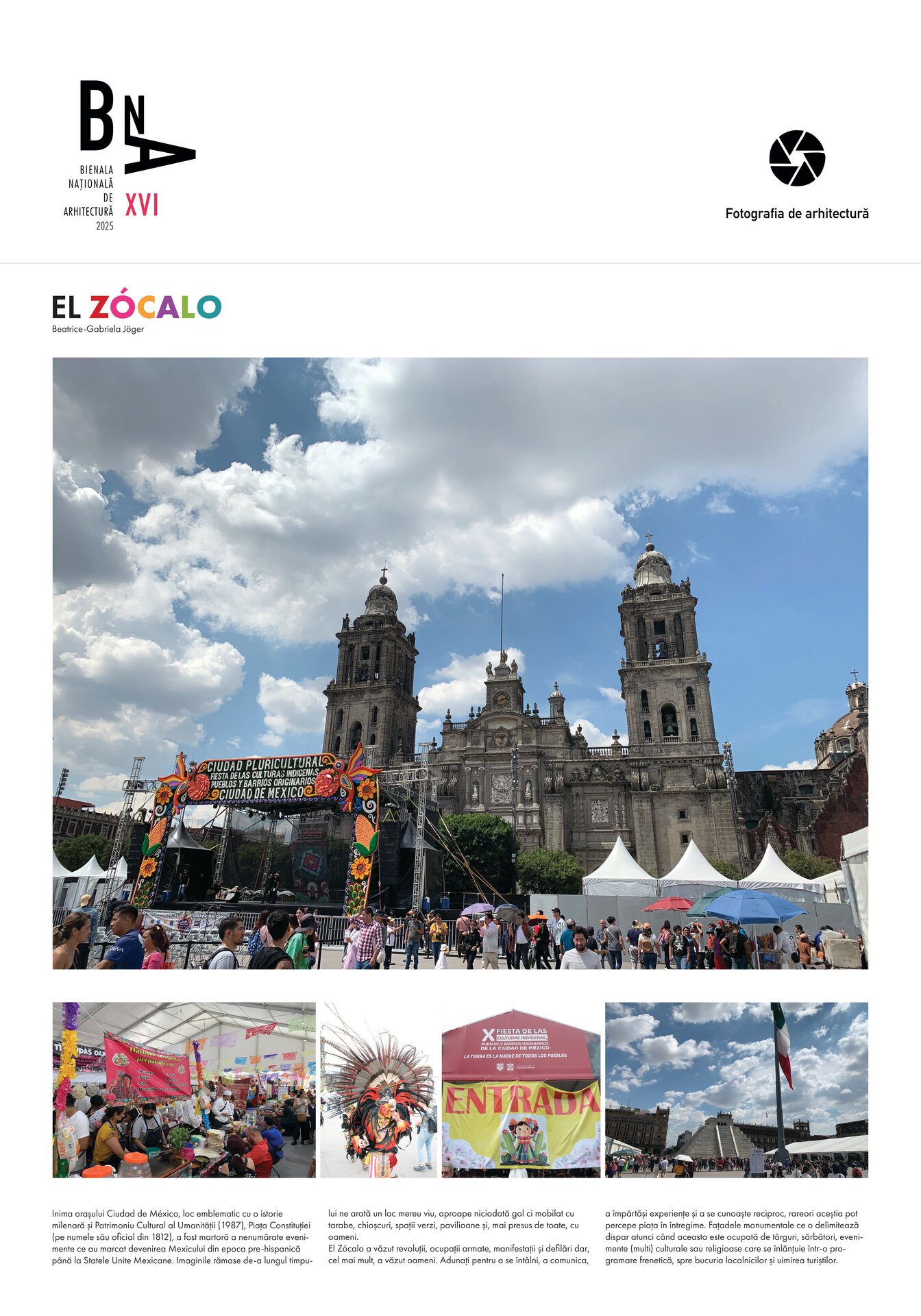 Numele său este simbolul independenței Mexicului, a văzut revoluții, ocupații armate, manifestații, defilări și concerte dar, cel mai mult, în ultima vreme, vede oamenii adunați pentru a se întâlni, a comunica, a împărtăși experiențe și a se cunoaște reciproc. La fel ca în imaginile pictate sau desenate de-a lungul timpului, care ne arată un loc mereu viu, aproape niciodată gol ci mobilat cu tarabe, chioșcuri, pavilioane, statui și, mai presus de toate, cu oameni. Rareori aceștia pot percepe piața în întregime. Plinta urbană a fațadelor monumentale ce o delimitează, în stiluri variate - ce merg de la barocul mexican la eclectic -, dispare atunci când aceasta este ocupată. Cele patru laturi ale pieței sunt dedicate unor funcțiuni bine definite: cult, la nord – Catedrala Metropolitană; puterea executivă, la est – Palatul Național, început în 1522 de Hernán Cortés, pe ruinele palatului lui Moctezuma Xocoyotzin, ultimul conducător mexica; guvernare locală, la sud - Vechiul Palat al Primăriei și Palatul Guvernului orașului; la vest – clădiri administrative, comerciale și hoteluri. Păstrând funcțiunile, clădirile dedicate acestora au avut o devenire istorică complexă, cu construcții în etape, demolări, înlocuiri și extinderi, toate pentru a corespunde necesităților momentului respectiv. Astăzi legată de oraș prin circulația auto periferică și o stație de metrou, El Zócalo a cunoscut și trecerea tramvaielor, prezența unor monumente, fântâni și amenajări peisagere în centrul său, înainte ca acesta să fie acum dedicat prezenței umane, la fel ca în marile ansambluri arhitecturale pre-hispanice. Probabil favorizați și de climă, mexicanii au o vocație pentru a trăi și a se manifesta în aer liber, și ce loc mai potrivit este chiar centrul orașului lor? Variate târguri economice, de carte, ale culturilor din Mexic, se înlănțuie în zilele noastre într-o programare frenetică, spre bucuria localnicilor și uimirea turiștilor.