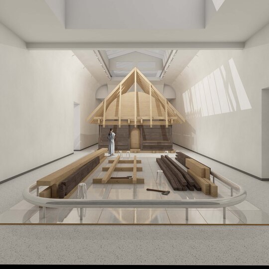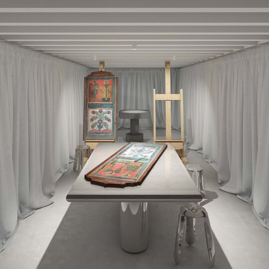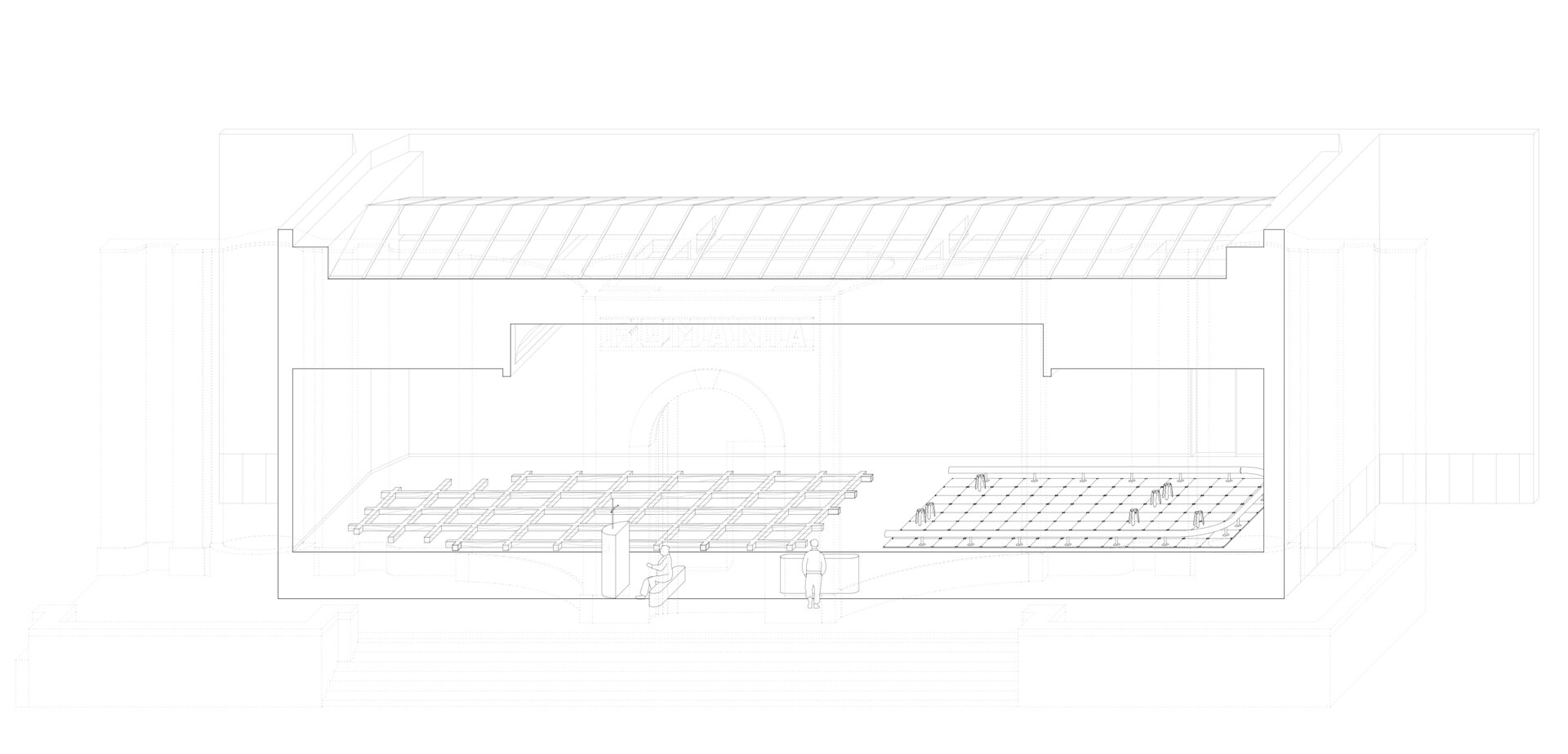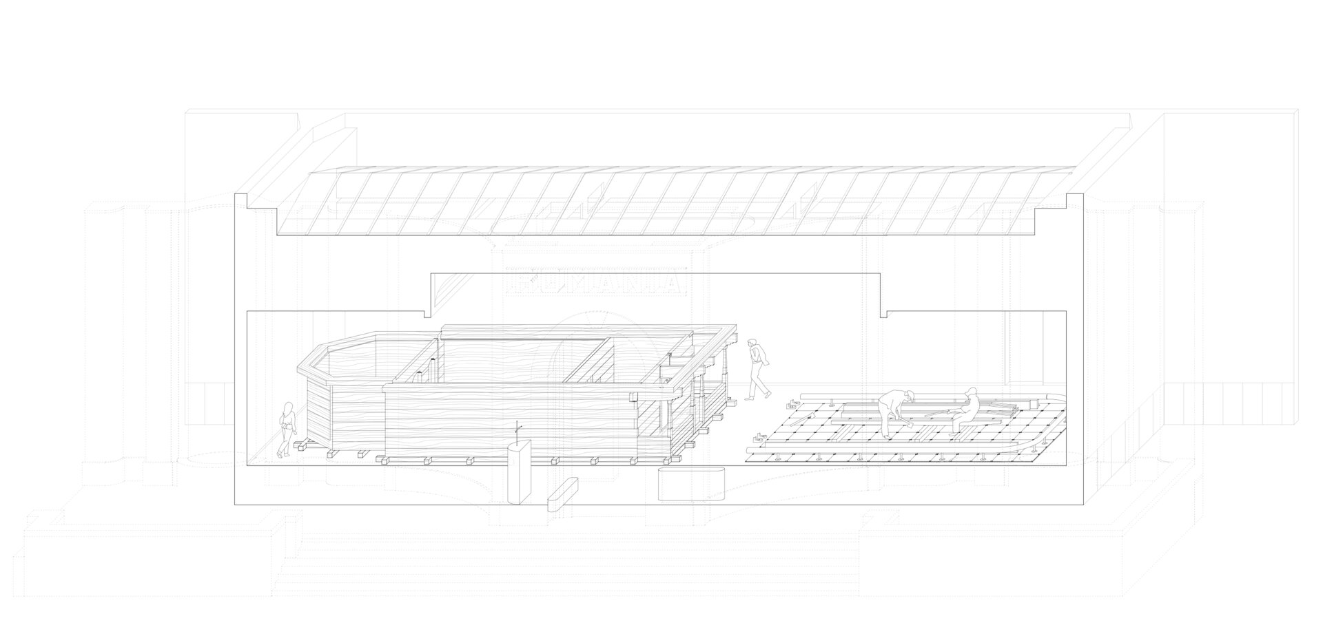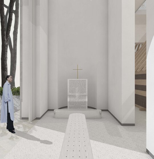 Pe parcursul primelor 3 luni, se va asista la înălțarea bisericii în Pavilionul României din Giardini della Bienale, biserica fiind amplasată în jumătatea nordică a pavilionului, iar spațiul sudic amenajat pentru activitățile de restaurare și ateliere. Galeria IRCCU va fi dedicată restaurării componentelor artistice, servind drept laborator și spațiu metaforic similar unui spațiu ecleziastic.