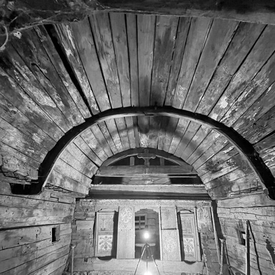 Biserica, inclusă în proiectul de documentare al Asociației Biserici Înlemnite, este abandonată și degradată. Datată din 1794, biserica are un plan drept cu abside și pridvor deschis. Sistemul constructiv implică îmbinări în coadă de rândunică și elemente notabile precum grinzile superioare în consolă. Componentele artistice includ iconostasul și ușile diaconești decorate.
