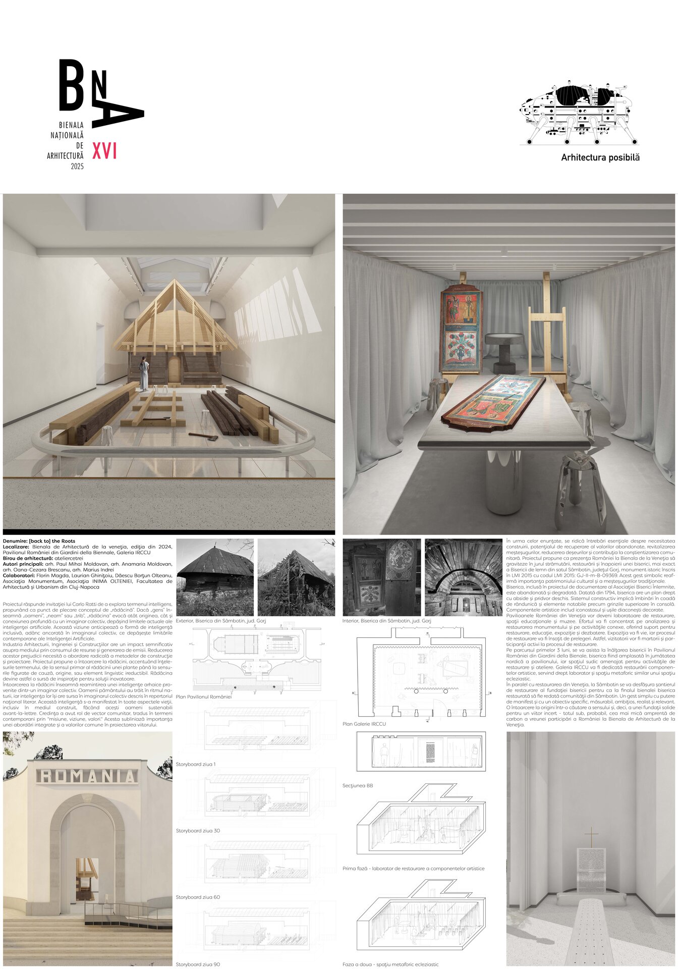 În urma celor enunțate, se ridică întrebări esențiale despre necesitatea construirii, potențialul de recuperare al valorilor abandonate, revitalizarea meșteșugurilor, reducerea deșeurilor și contribuția la conștientizarea comunitară. Proiectul propune ca prezența României la Bienala de la Veneția să graviteze în jurul strămutării, restaurării și înapoierii unei biserici, mai exact a Bisericii de lemn din satul Sâmbotin, județul Gorj, monument istoric înscris în LMI 2015 cu codul LMI 2015: GJ-II-m-B-09369. Acest gest simbolic reafirmă importanța patrimoniului cultural și a meșteșugurilor tradiționale.