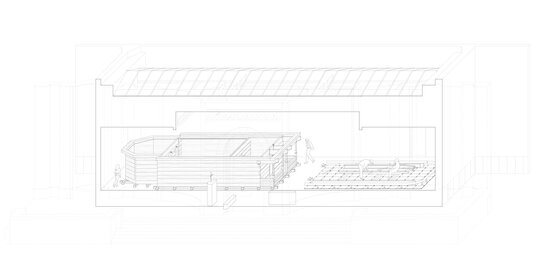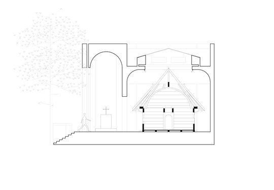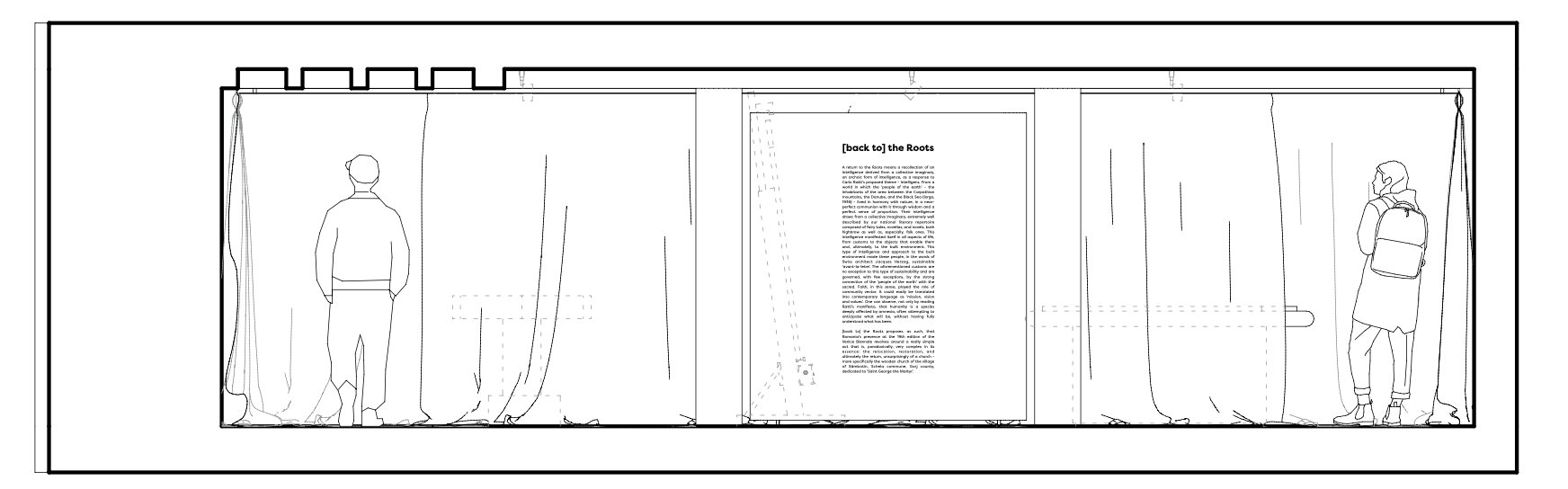 În paralel cu restaurarea din Veneția, la Sâmbotin se va desfășura șantierul de restaurare al fundației bisericii pentru ca la finalul bienalei biserica restaurată să fie redată comunității din Sâmbotin. Un gest simplu cu putere de manifest și cu un obiectiv specific, măsurabil, ambițios, realist și relevant. O întoarcere la origini într-o căutare a sensului și, deci, a unei fundații solide pentru un viitor incert - totul sub, probabil, cea mai mică amprentă de carbon a vreunei participări a României la Bienala de Arhitectură de la Veneția.