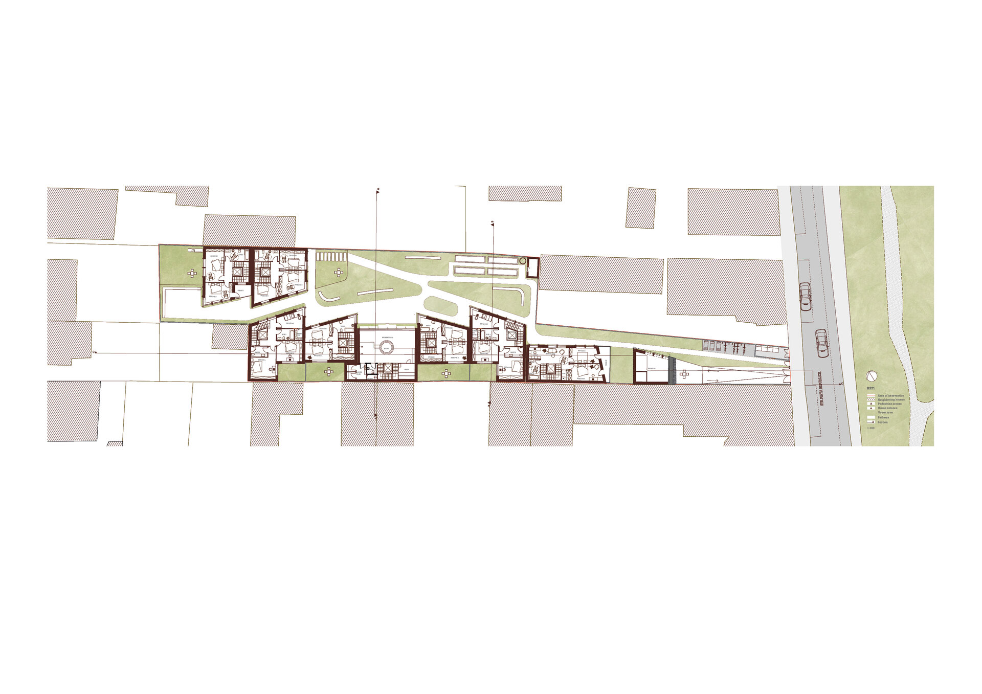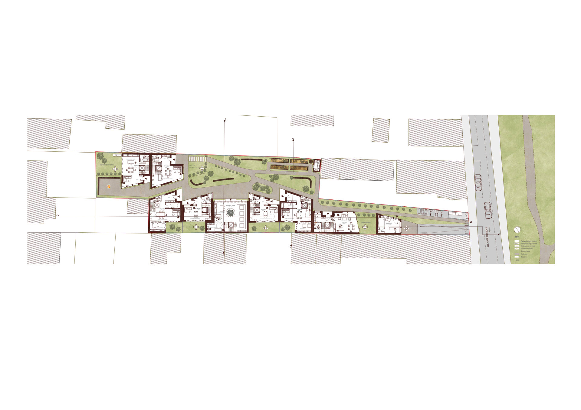În timpul studiului zonei, am observat contururile și liniile formate de clădirile învecinate, iar această observație a dat naștere siluetei ușor înclinate a construcțiilor noastre. Această inspirație locală nu este doar un gest estetic, ci o punte subtilă între nou și existent, între comunitatea de astăzi și cea deja formată în jur. De asemenea, merită menționat că planurile interioare urmează același limbaj vizual ca și fațadele – o coerență care se reflectă atât în funcționalitate, cât și în expresia arhitecturală.