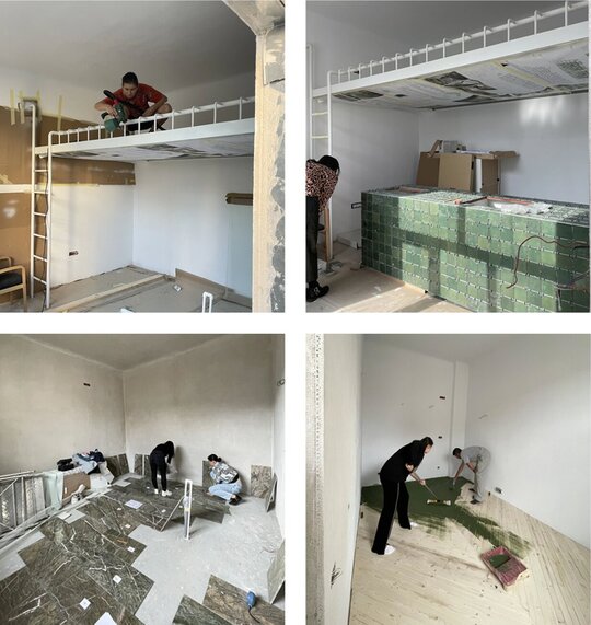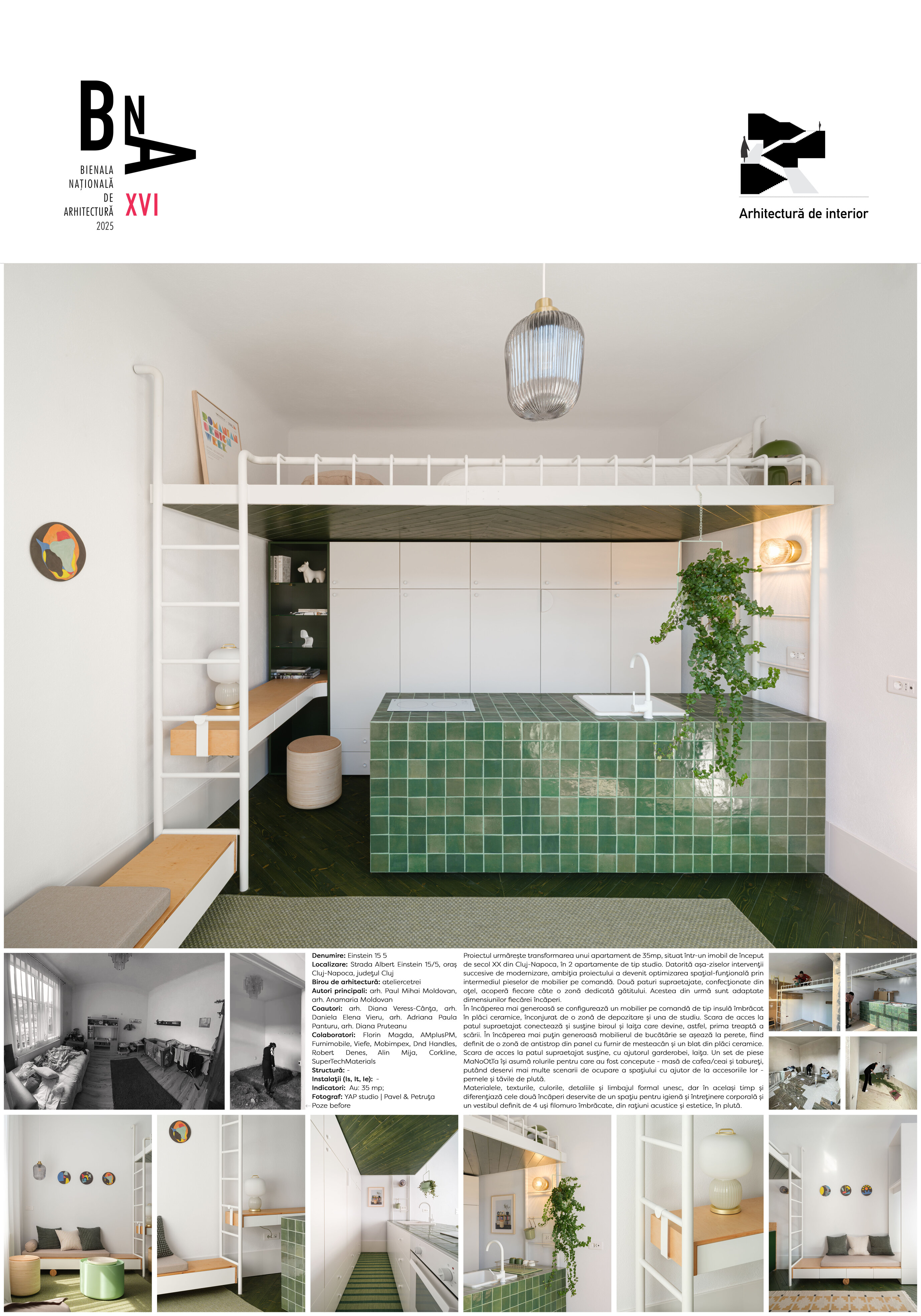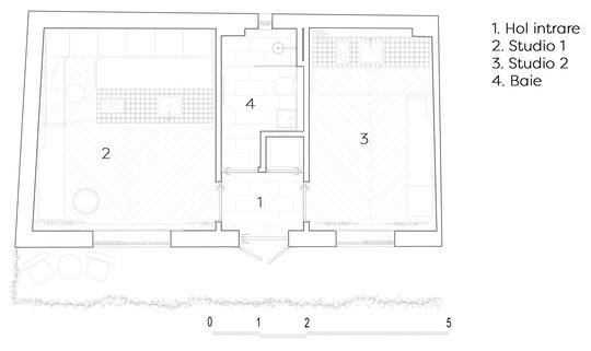 Proiectul urmărește transformarea unui apartament de 35mp, situat într-un imobil de început de secol XX din Cluj-Napoca, în 2 apartamente de tip studio. Datorită așa-ziselor intervenții succesive de modernizare, ambiția proiectului a devenit optimizarea spațial-funțională prin intermediul pieselor de mobilier pe comandă. Două paturi supraetajate, confecționate din oțel, acoperă fiecare câte o zonă dedicată gătitului. Acestea din urmă sunt adaptate dimensiunilor fiecărei încăperi.