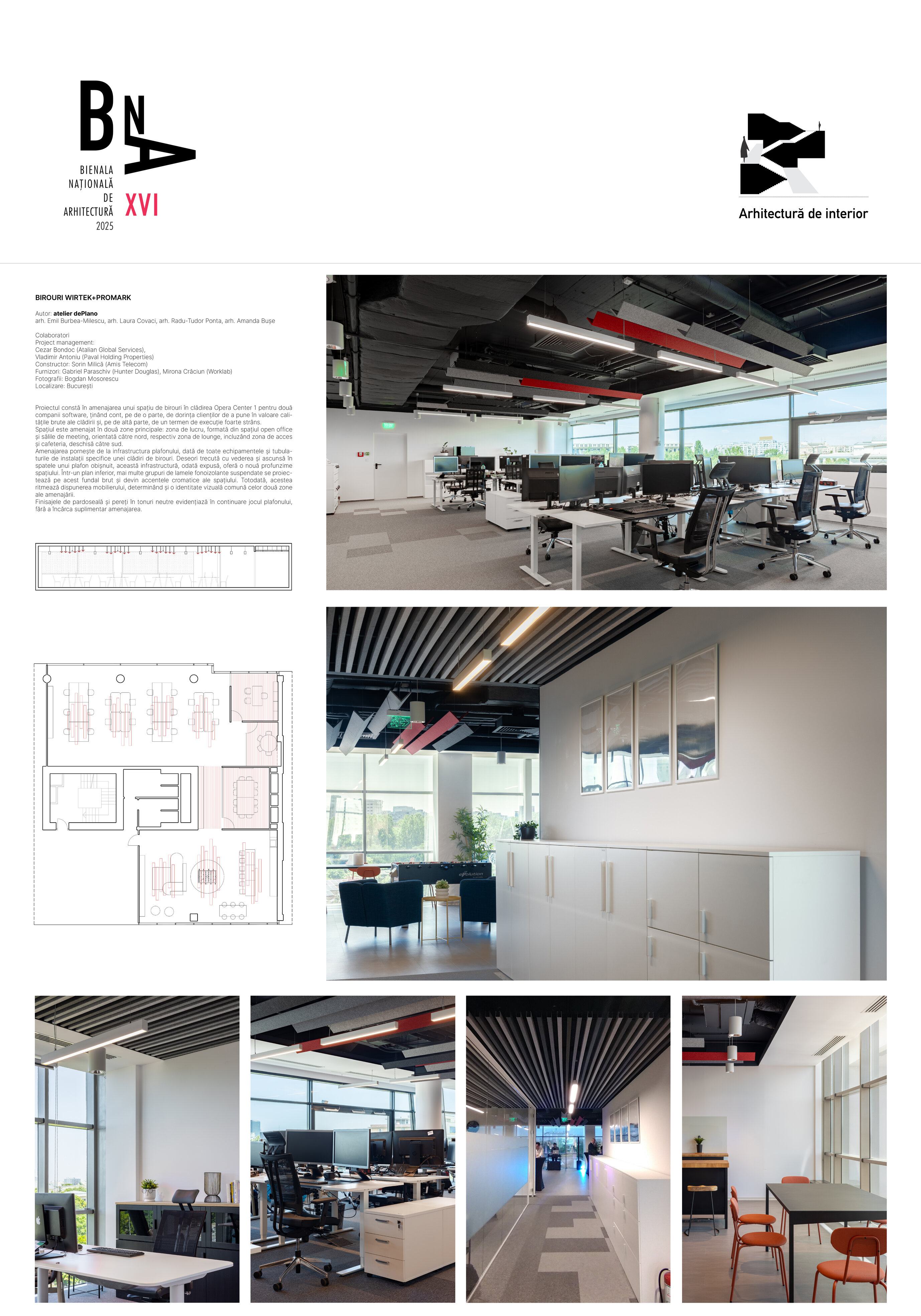 Proiectul constă în amenajarea unui spațiu de birouri în clădirea Opera Center 1 pentru două companii software, ținând cont, pe de o parte, de dorința clienților de a pune în valoare calitățile brute ale clădirii și, pe de altă parte, de un termen de execuție foarte strâns.