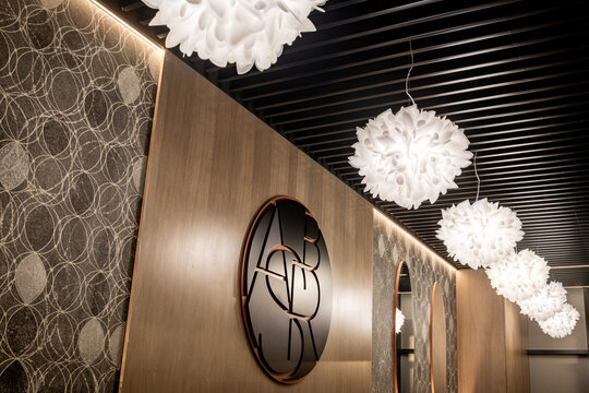 Brandingul – dezvoltat în paralel cu amenajarea – este discret, dar prezent, iar monograma cu accente aurii păstrează nota de eleganță, completând limbajul spațial fără a-l concura. Astfel, identitatea vizuală nu este aplicată, ci integrată, participând organic la definirea atmosferei.