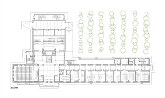 Reorganizarea circulațiilor și asigurarea accesibilității au contribuit la creșterea coerenței funcționale a întregii clădiri și a presupus integrarea discretă a unui lift care asigură accesul persoanelor cu dizabilități și conectează toate nivelurile, și adăugarea în partea din spate a clădirii a unui nou volum ce adăpostește o scară de evacuare și grupuri sanitare suplimentare. Acestă extindere devine complementară volumetriei clădirii existente, integrându-se subtil și preluând cotele elementelor existente.