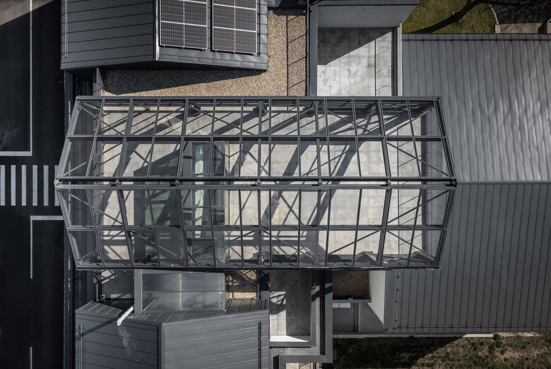 Componenta principală a intervenției o constituie reconfigurarea zonei de acoperiș, care a fost transformată funcțional și volumetric, pentru a acomoda noile spații destinate învățământului Facultății de Peisagistică. Această extindere pe verticală s-a realizat cu grijă față de proporțiile și ritmul elementelor clădirii originale, urmărind o inserție armonioasă, dar contemporană. Din punct de vedere morfologic, soluția arhitecturală a presupus fragmentarea acoperișului lung și unitar în volume mai mici, cu o scară compatibilă cu cea a clădirilor de pe străzile adiacente. Aceste volume reinterpretează formal și simbolic imaginea serelor – un element recurent în cadrul campusului USAMV și strâns legat de profilul disciplinelor horticole și peisagistice. Volumetria rezultată permite o relație mai prietenoasă cu contextul urban și creează o imagine distinctă, dar integrată.