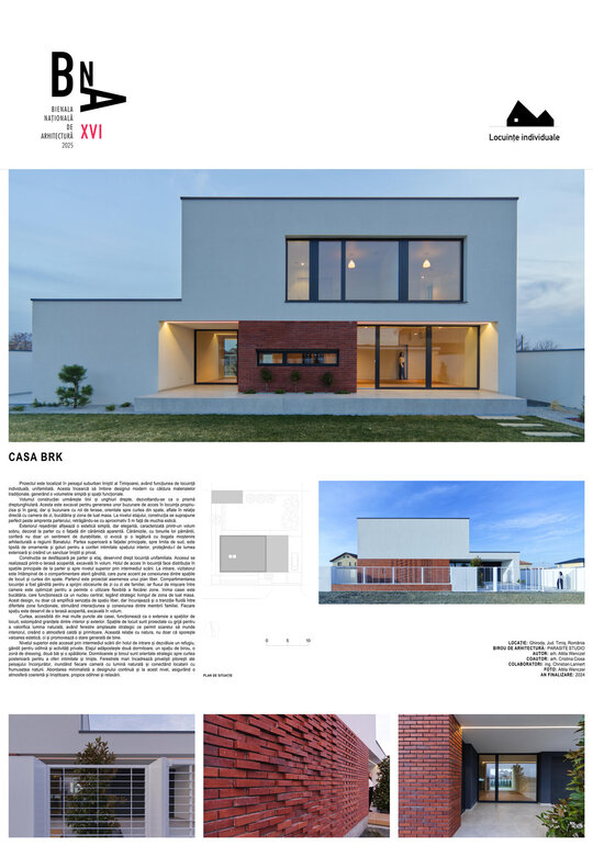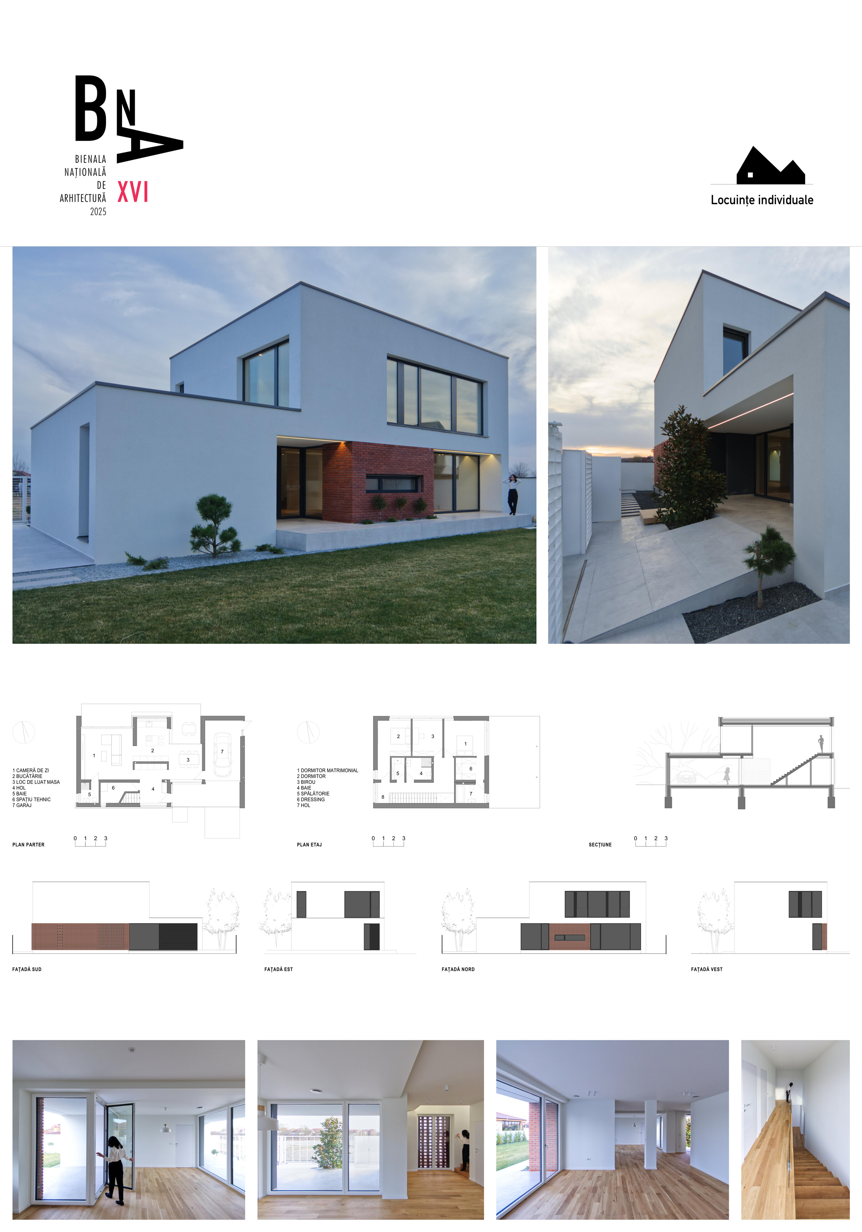 Proiectul este localizat în peisajul suburban liniștit al Timișoarei, având funcțiunea de locuință individuală, unifamilială. Acesta încearcă să îmbine designul modern cu căldura materialelor tradiționale, generând o volumetrie simplă și spații funcționale.