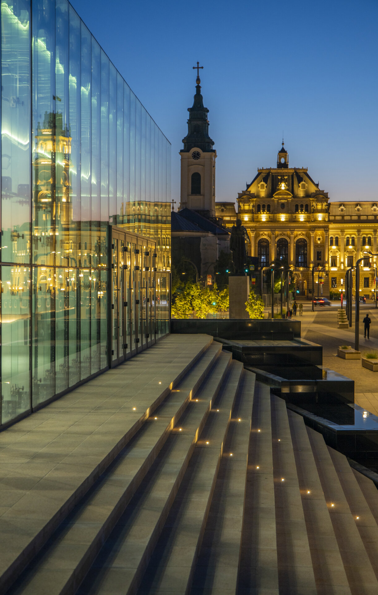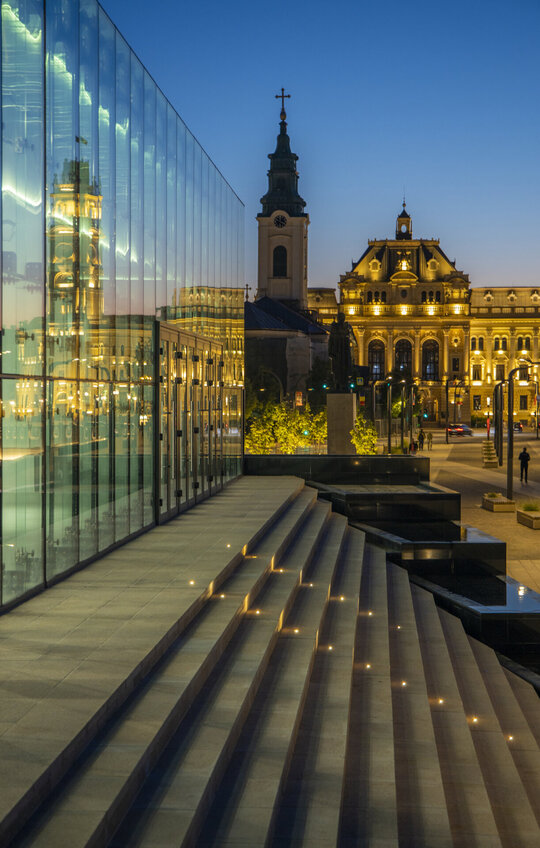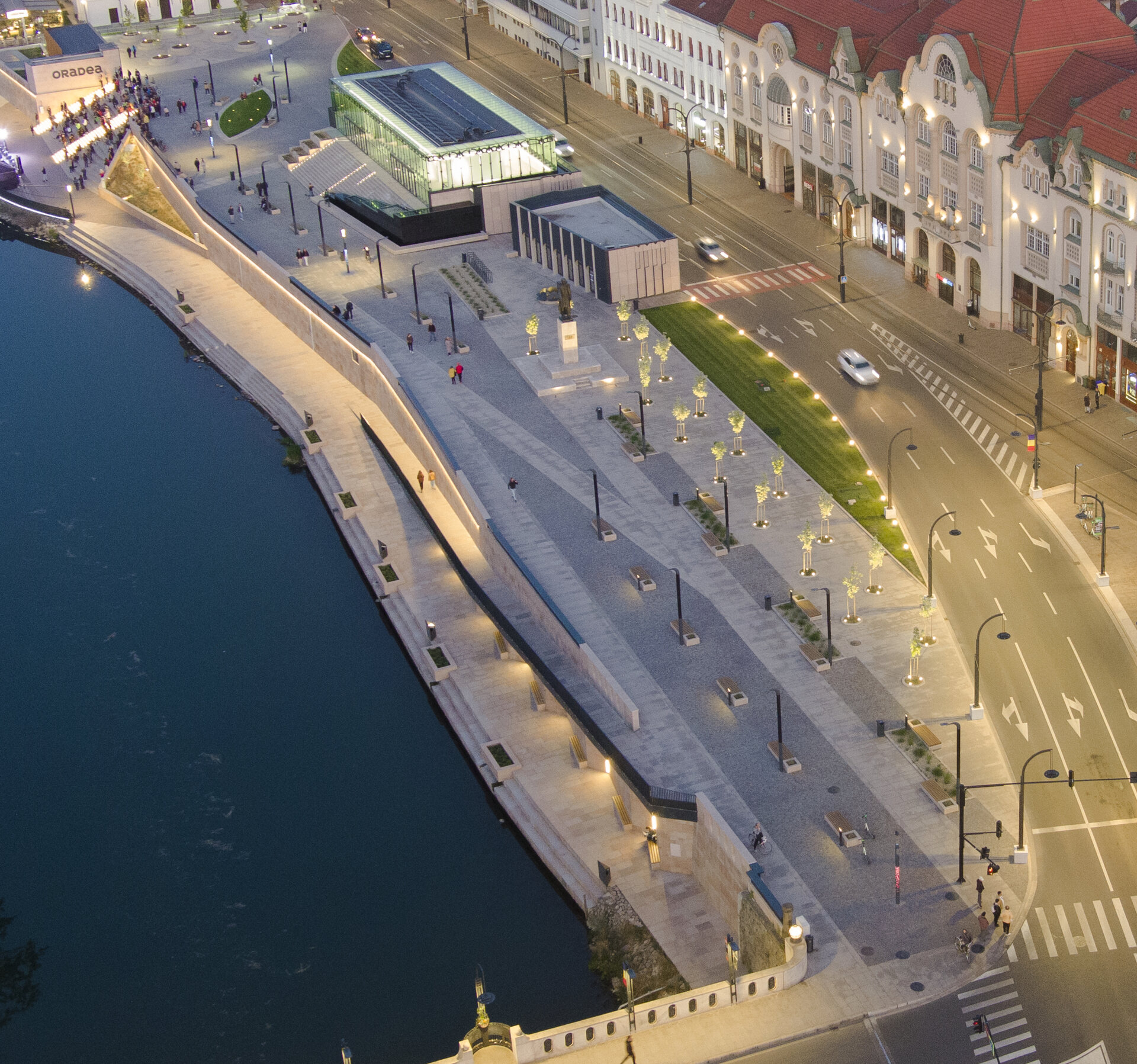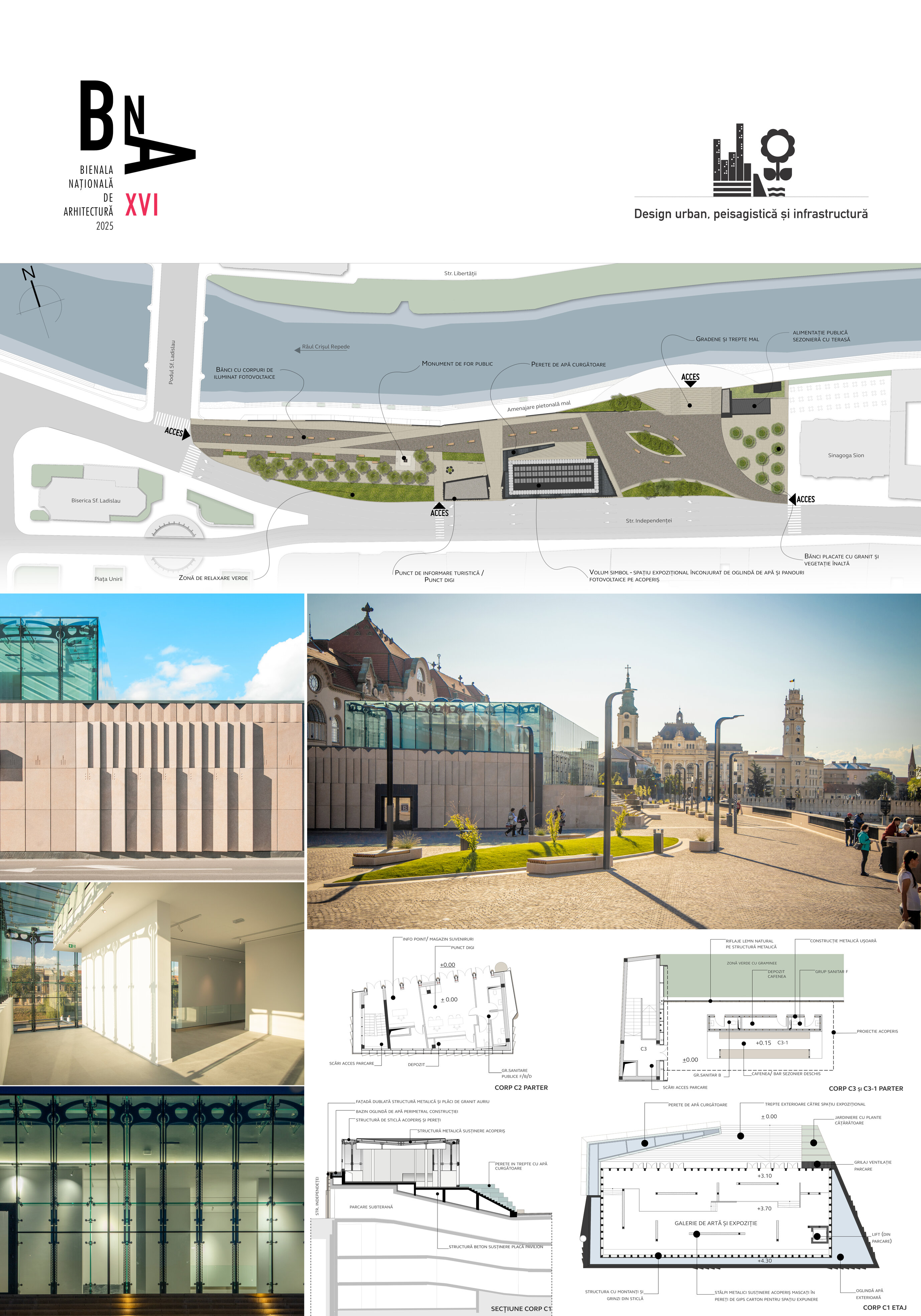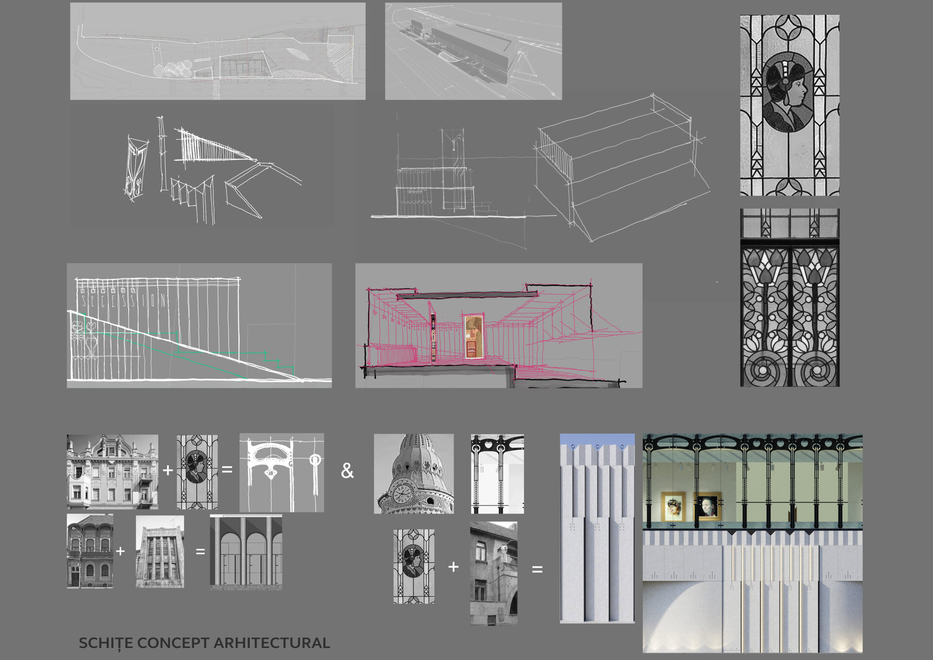 Pentru a genera un volum – simbol şi pentru a acorda spaţiului funcţia catalizatoare de pol urban, am decis să dezvoltăm un spaţiu reprezentativ pentru oraşul contemporan prin reinterpretarea în cheie modernă a elementelor decorative specifice pentru perioada Art Nouveau - Secession, stiluri ce definesc identitatea culturală a Oradiei.