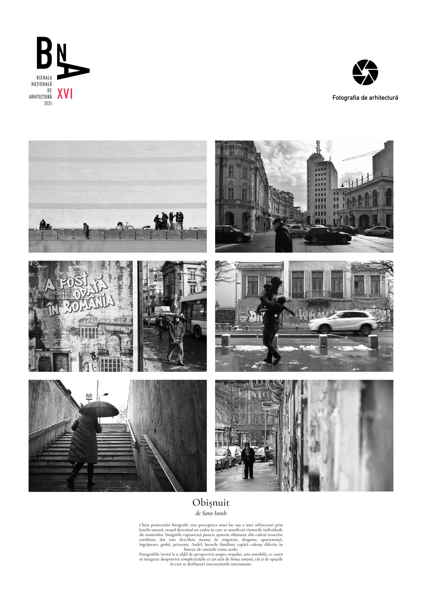 Fotografiile invită la o altfel de perspectivă asupra orașului, una sensibilă, ce caută să integreze deopotrivă complexitățile ce țin atât de ființa umană, cât și de spațiile în care se desfășoară interacțiunile interumane.
