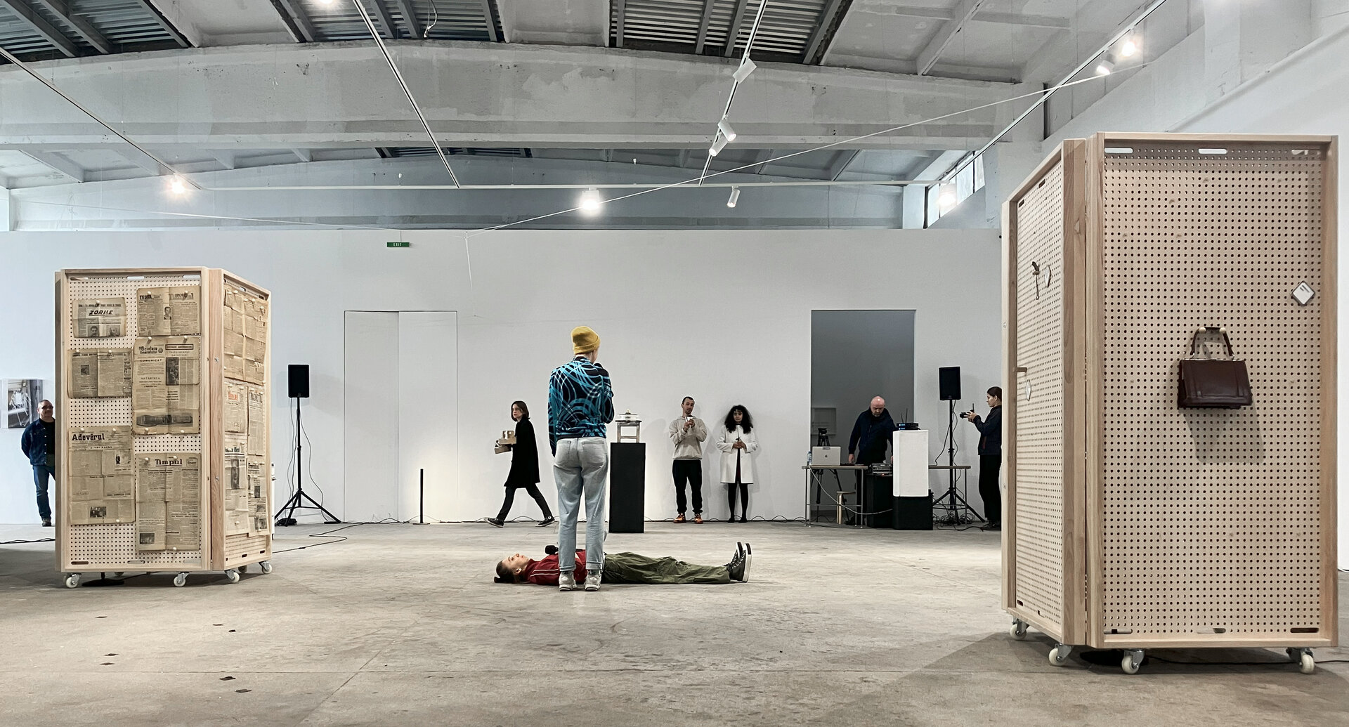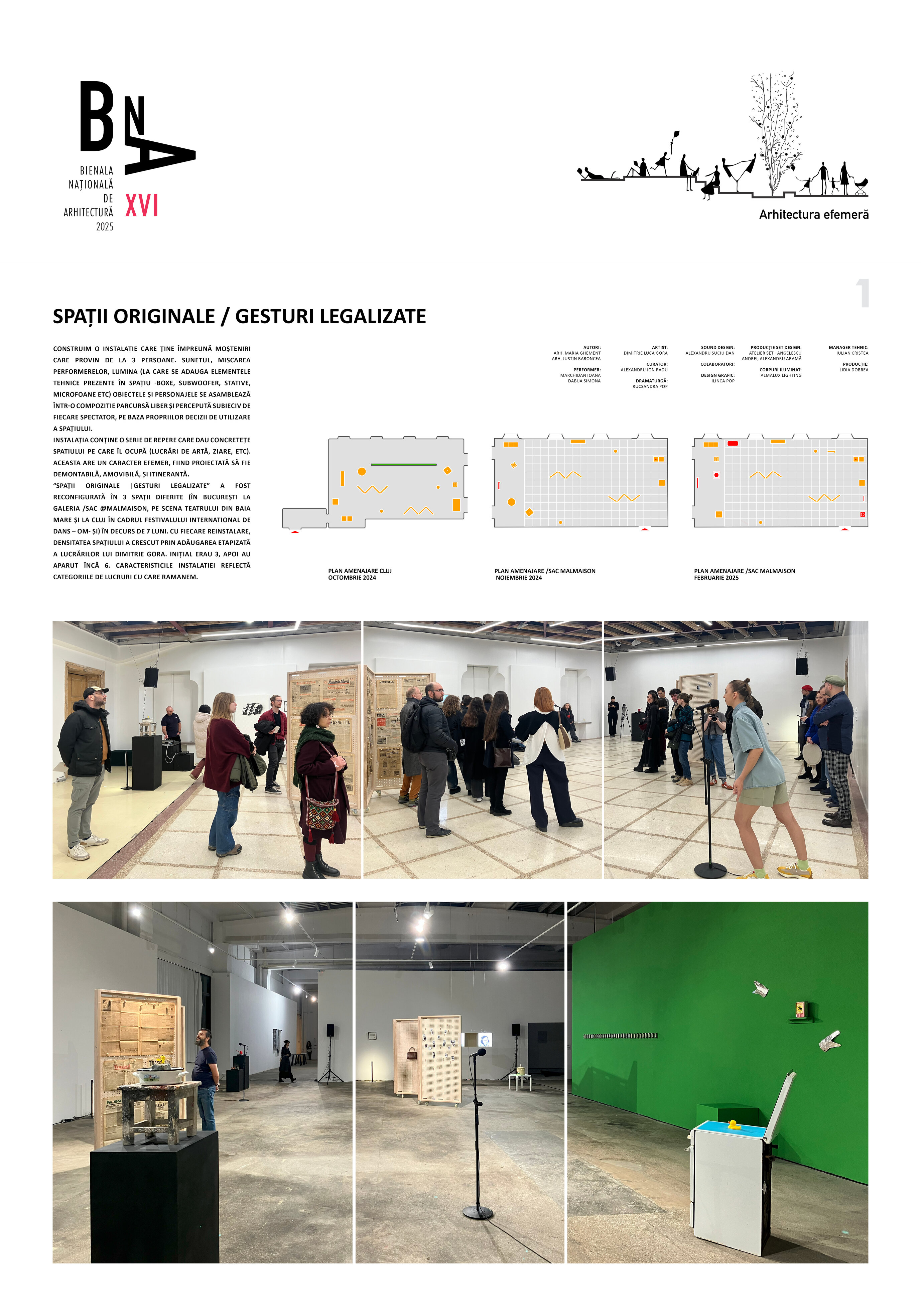 Nota: Instalația performativă este rezultatul evoluției unui proiect demarat la data de 13 septembrie 2024 în București la galeria /SAC Malmaison, continuat pe 1 Octombrie 2024 la Teatrul din Baia Mare, pe 11 octombrie la Cluj la Festivalul Internațional de Dans OM, care a avut ultima reprezentare pe data de 16 februarie 2025 în București la galeria /SAC Malmaison.