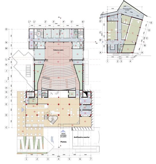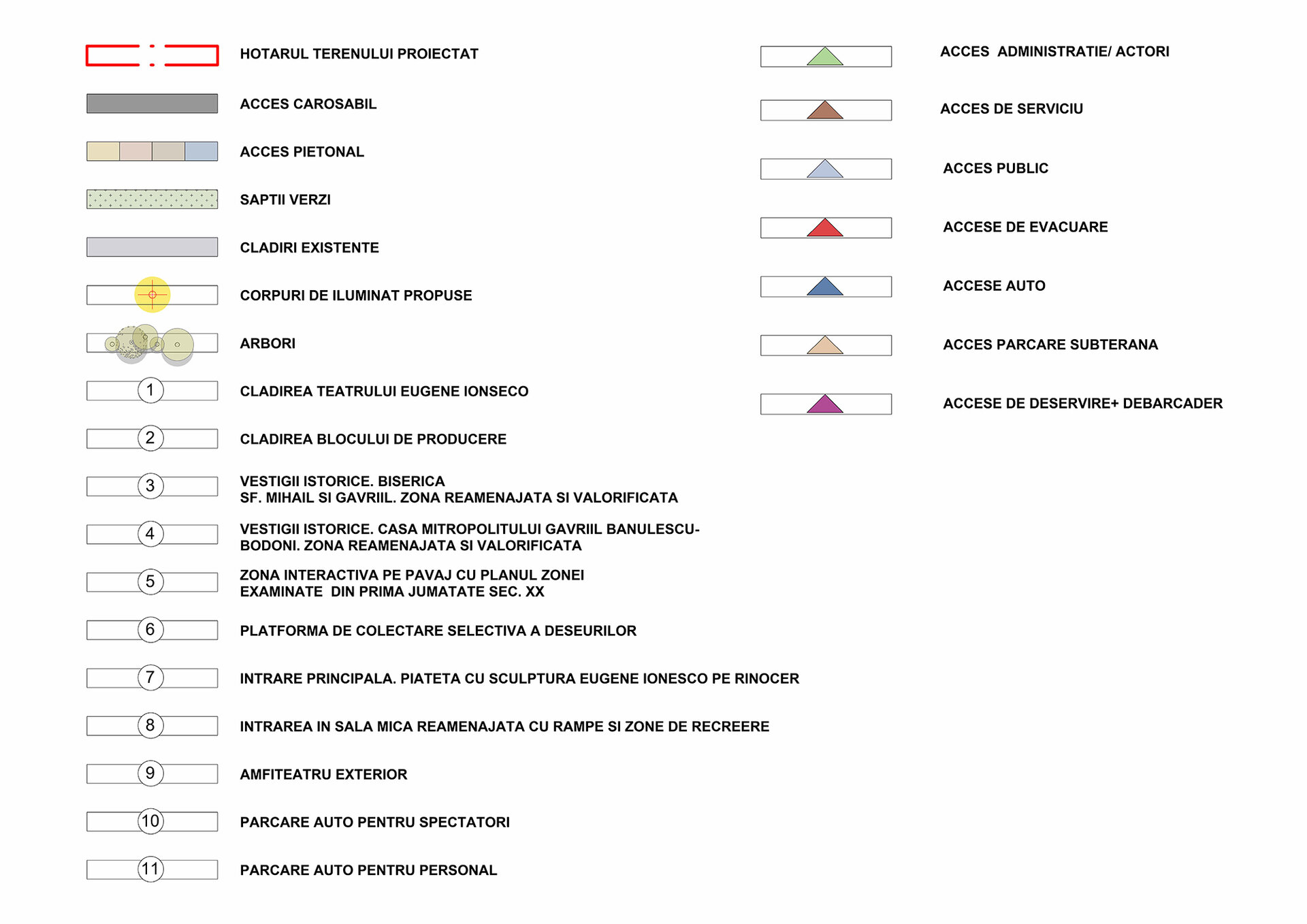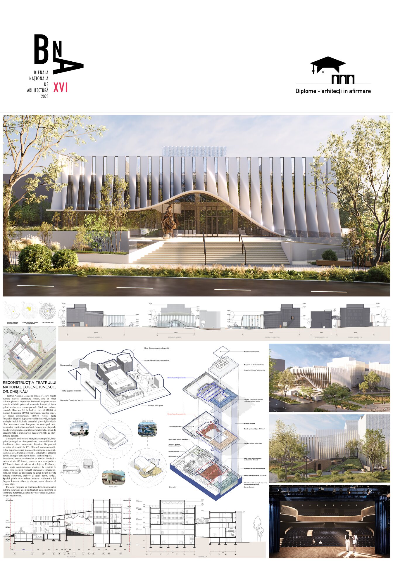 Teatrul Național „Eugene Ionesco”, care poartă numele marelui dramaturg român de renume mondial, reprezintă un reper cultural și social de importanță majoră pentru comunitate. Proiectul propune reconstrucția clădirii existente, păstrând memoria locului și integrând arhitectura contemporană, astfel încât să se creeze un spațiu cultural modern, funcțional și vizibil pentru întreaga zonă urbană. Situl are o valoare istorică deosebită: Biserica Sf. Mihail și Gavriil (Catedrala Vechi), fondată în 1806, și muzeul bisericesc, construit în 1906, marchează tradiția culturală a zonei. De asemenea, fostul cinematograf (1965), ridicat peste fundațiile bisericii după demolările monumentelor istorice din 1963, reflectă evoluția complexă a sitului. Ruinele muzeului bisericesc și vestigiile clădirilor anterioare au fost păstrate și integrate în conceptul nou, menținând continuitatea urbană și respectând istoria locului.