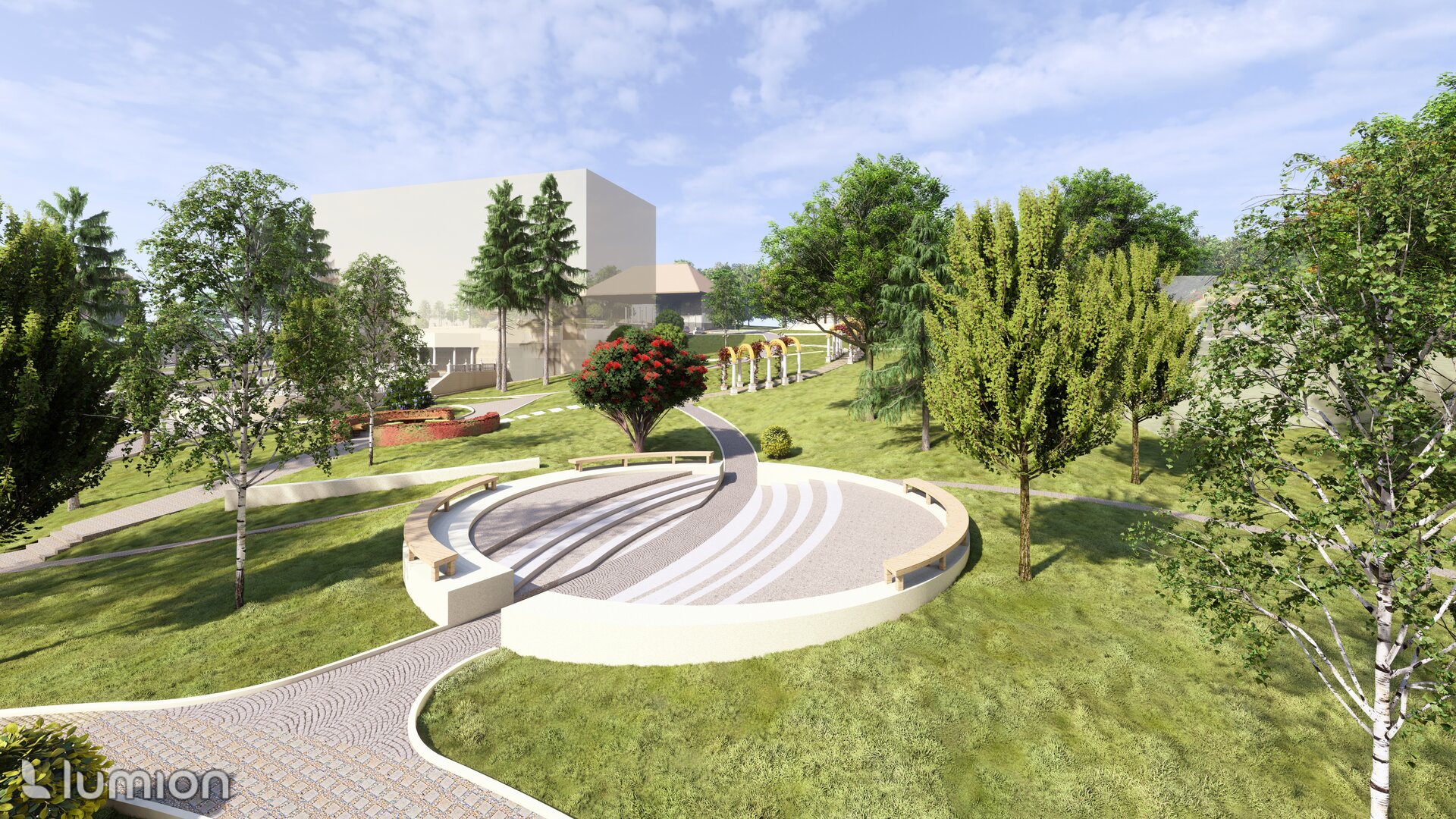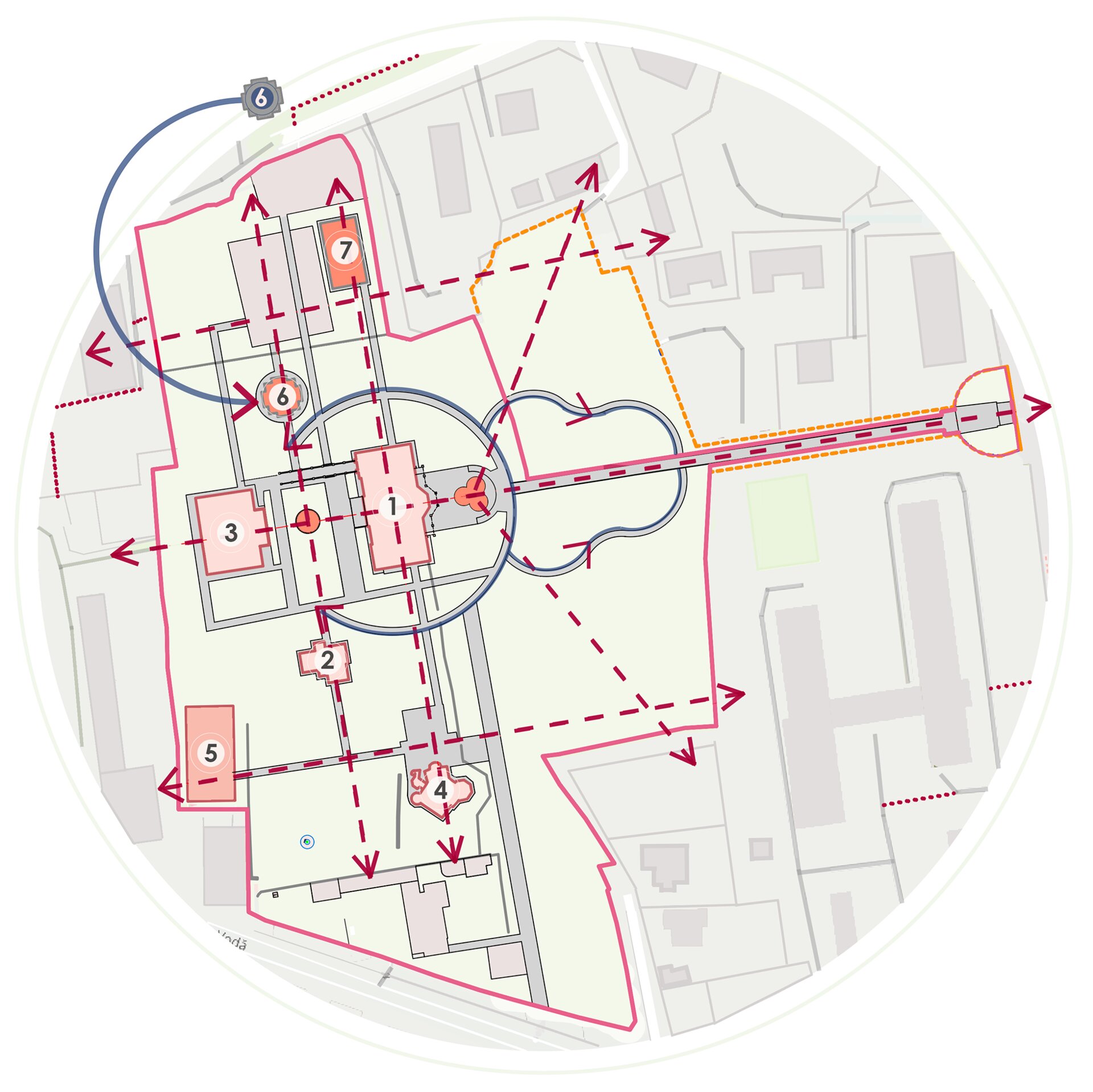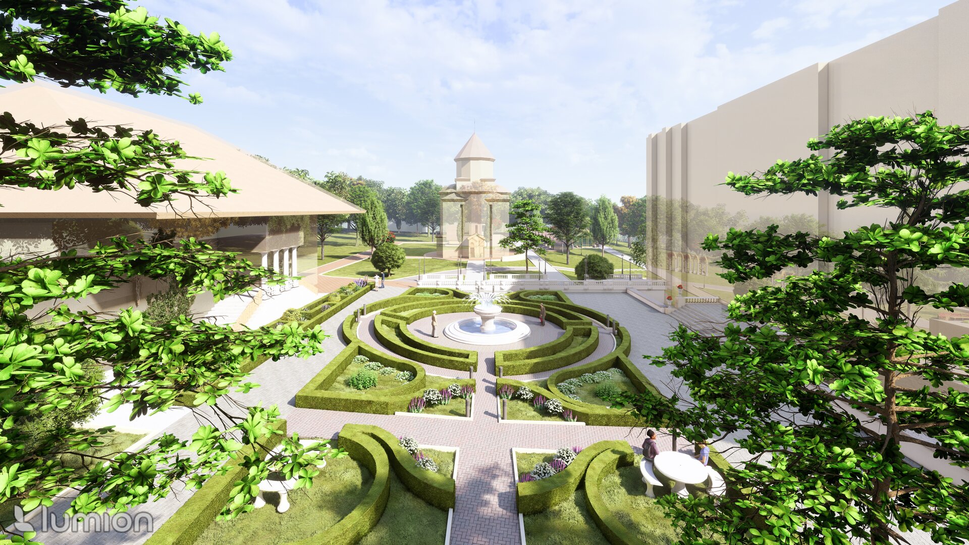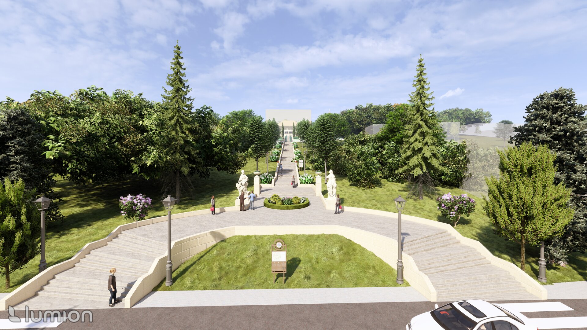 Reabilitarea propusă păstrează atmosfera de epocă și o reinterpretează pentru generațiile actuale, oferind vizitatorilor o experiență unică de conectare între istorie, natură și viața urbană. Conceptul general îmbină două stiluri aparent contrastante – formal, clasic și peisager-rustic – într-o rețea coerentă de axe, trasee și zone funcționale. Propunerea include inventarierea și protejarea vegetației valoroase, reconfigurarea aleilor pentru a crea perspective către clădirile complexului, amenajarea unor zone tematice – de promenadă, repaus și evenimente culturale – precum și introducerea infrastructurii verzi sustenabile (plantări adaptate, mobilier urban discret, soluții ecologice de drenaj). Astfel, grădina este transformată într-un spațiu cultural și recreativ modern, care respectă patrimoniul și răspunde nevoilor comunității actuale. Conceptul propus este repetarea conexiunilor neuronale, utilizat ca metaforă pentru crearea de alei sinuoase. În cadrul reabilitării grădina a fost tratată ca un sistem viu, în care toate zonele tematice-platforme de belvedere, Labirintul verde, cafeneaua în aer liber, Grădina sonoră, aleea Mozaicului Timpului - sunt conectate logic prin perspective coerente. Aceste conexiuni simbolizează transmiterea memoriei și a sensului istoric, creând o rețea peisagistică care stimulează explorarea și înțelegerea locului de către vizitatori. Una dintre propunerile centrale este introducerea unui traseu de plimbare cu trăsura, care parcurge zonele-cheie ale grădinii, oferind vizitatorilor o experiență unică, cu accente istorice. În același timp, traseul evidențiază zonele atractive din punct de vedere vizual și simbolic, precum havuzurile istorice care au fost reintegrate în pozițiile originale, labirintul verde cu scop recreativ, grădina sonoră cu instalații muzicale interactive și cafeneaua în aer liber.