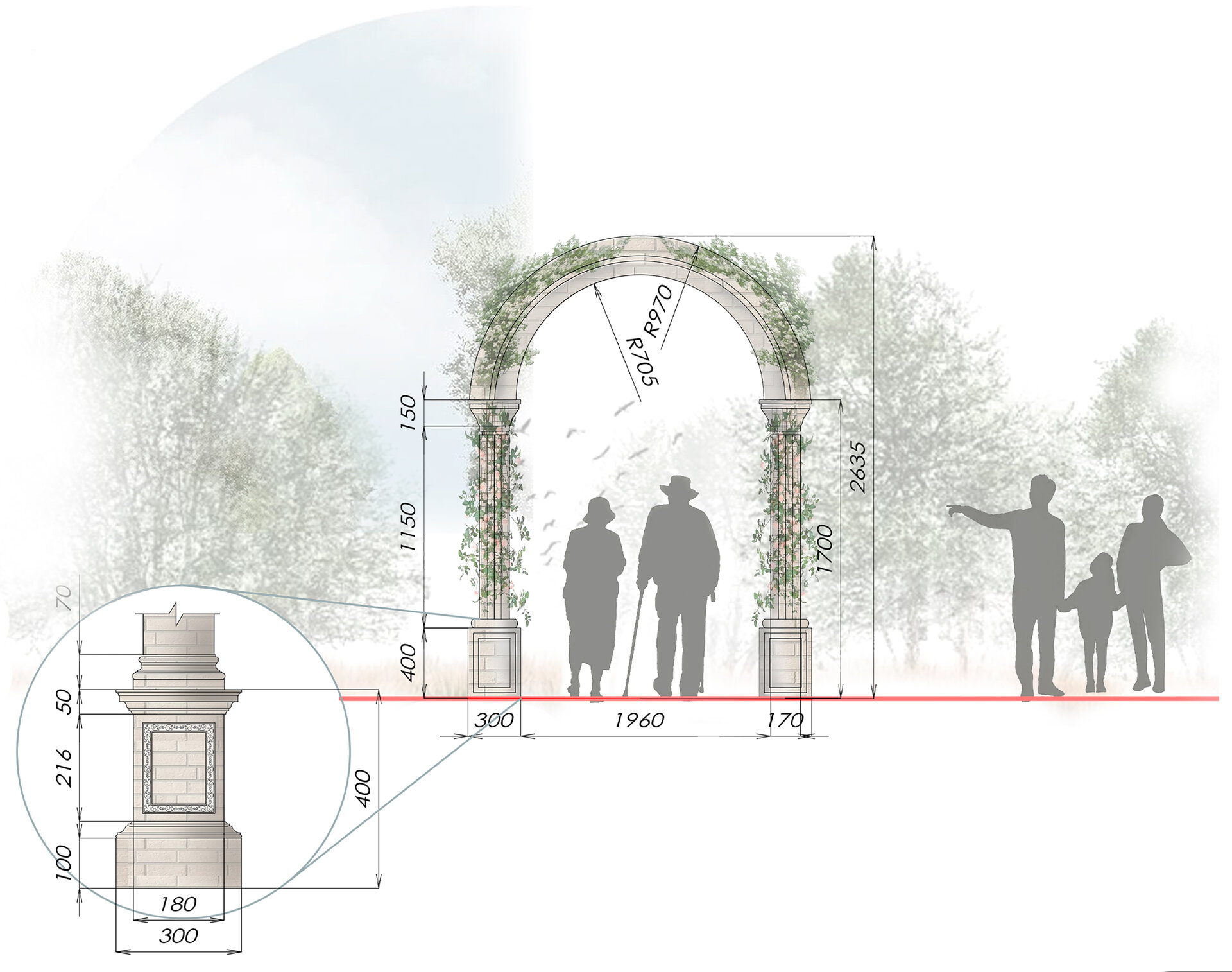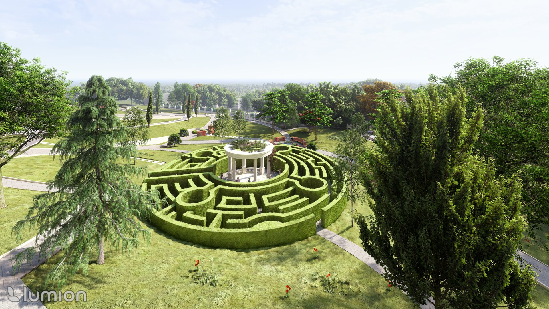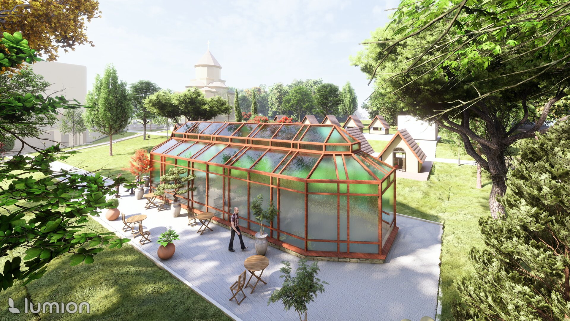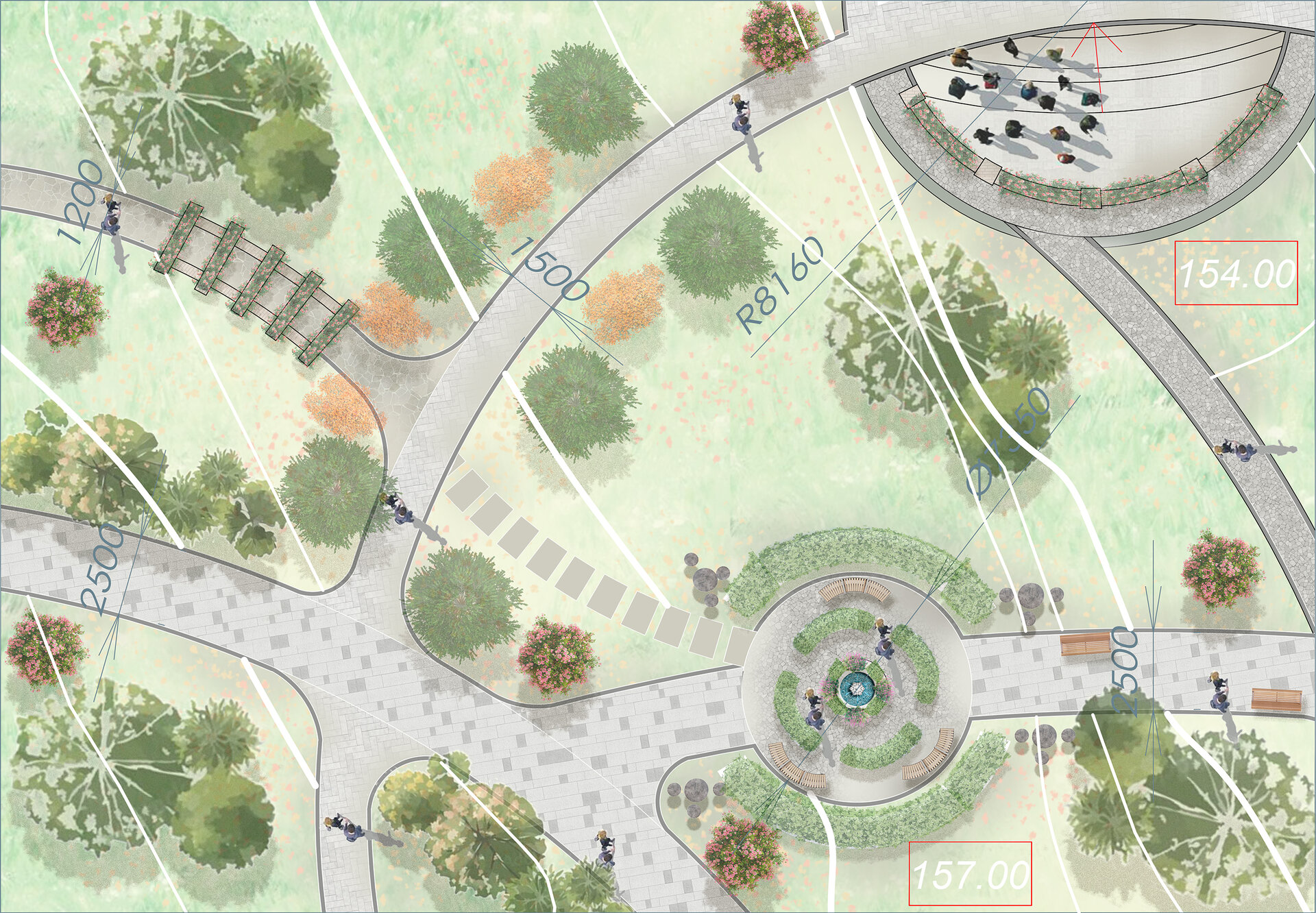 Reabilitarea propusă păstrează atmosfera de epocă și o reinterpretează pentru generațiile actuale, oferind vizitatorilor o experiență unică de conectare între istorie, natură și viața urbană. Conceptul general îmbină două stiluri aparent contrastante – formal, clasic și peisager-rustic – într-o rețea coerentă de axe, trasee și zone funcționale. Propunerea include inventarierea și protejarea vegetației valoroase, reconfigurarea aleilor pentru a crea perspective către clădirile complexului, amenajarea unor zone tematice – de promenadă, repaus și evenimente culturale – precum și introducerea infrastructurii verzi sustenabile (plantări adaptate, mobilier urban discret, soluții ecologice de drenaj). Astfel, grădina este transformată într-un spațiu cultural și recreativ modern, care respectă patrimoniul și răspunde nevoilor comunității actuale. Conceptul propus este repetarea conexiunilor neuronale, utilizat ca metaforă pentru crearea de alei sinuoase. În cadrul reabilitării grădina a fost tratată ca un sistem viu, în care toate zonele tematice-platforme de belvedere, Labirintul verde, cafeneaua în aer liber, Grădina sonoră, aleea Mozaicului Timpului - sunt conectate logic prin perspective coerente. Aceste conexiuni simbolizează transmiterea memoriei și a sensului istoric, creând o rețea peisagistică care stimulează explorarea și înțelegerea locului de către vizitatori. Una dintre propunerile centrale este introducerea unui traseu de plimbare cu trăsura, care parcurge zonele-cheie ale grădinii, oferind vizitatorilor o experiență unică, cu accente istorice. În același timp, traseul evidențiază zonele atractive din punct de vedere vizual și simbolic, precum havuzurile istorice care au fost reintegrate în pozițiile originale, labirintul verde cu scop recreativ, grădina sonoră cu instalații muzicale interactive și cafeneaua în aer liber.