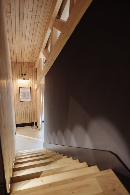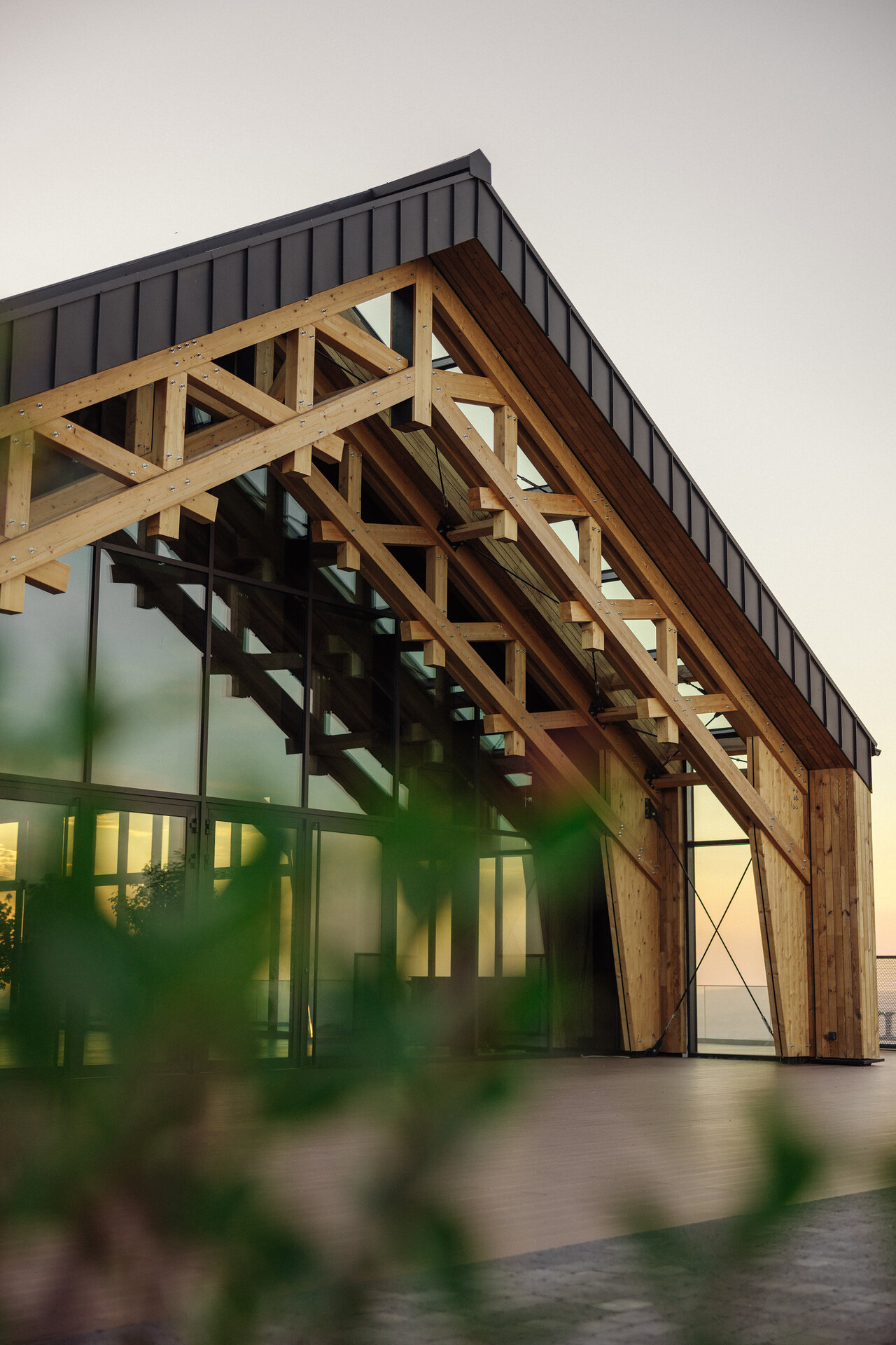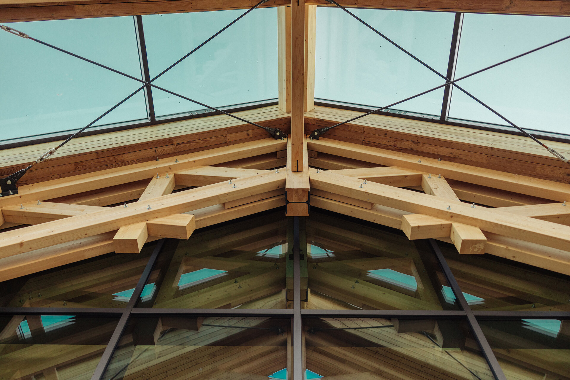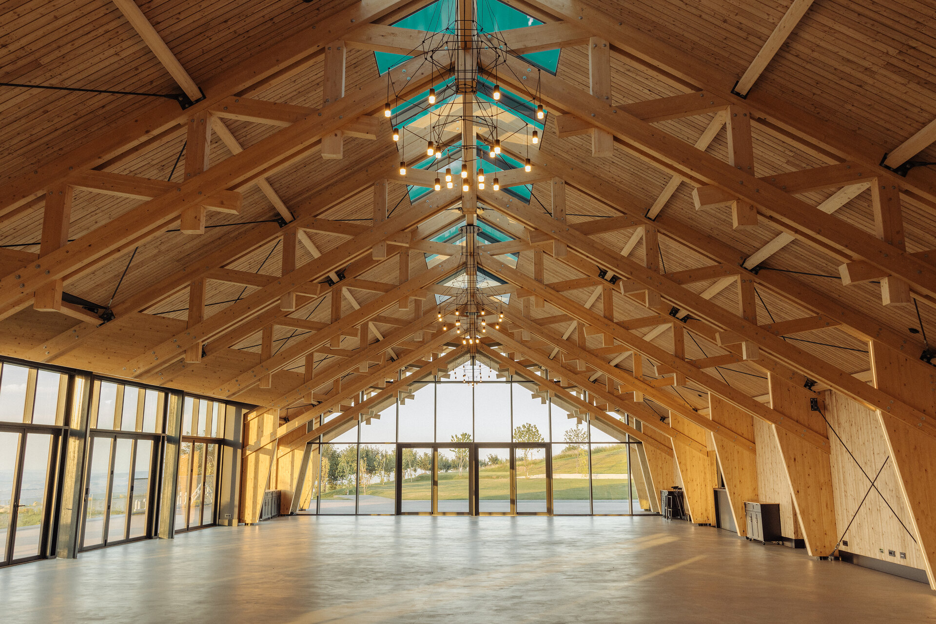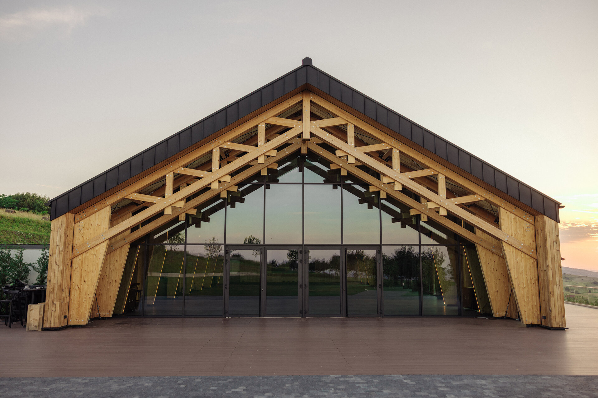 Structura construcției este realizată exclusiv din lemn, pe sistem tip „timber frame”, fundația și placa pe sol fiind singurele elemente structurale din beton armat. Finisajele interioare și exterioare au fost realizate tot din lemn, combinat cu metal și tablă, pentru a obține confort și coerență între zona structurală și abordarea arhitecturală a sălii de evenimente.