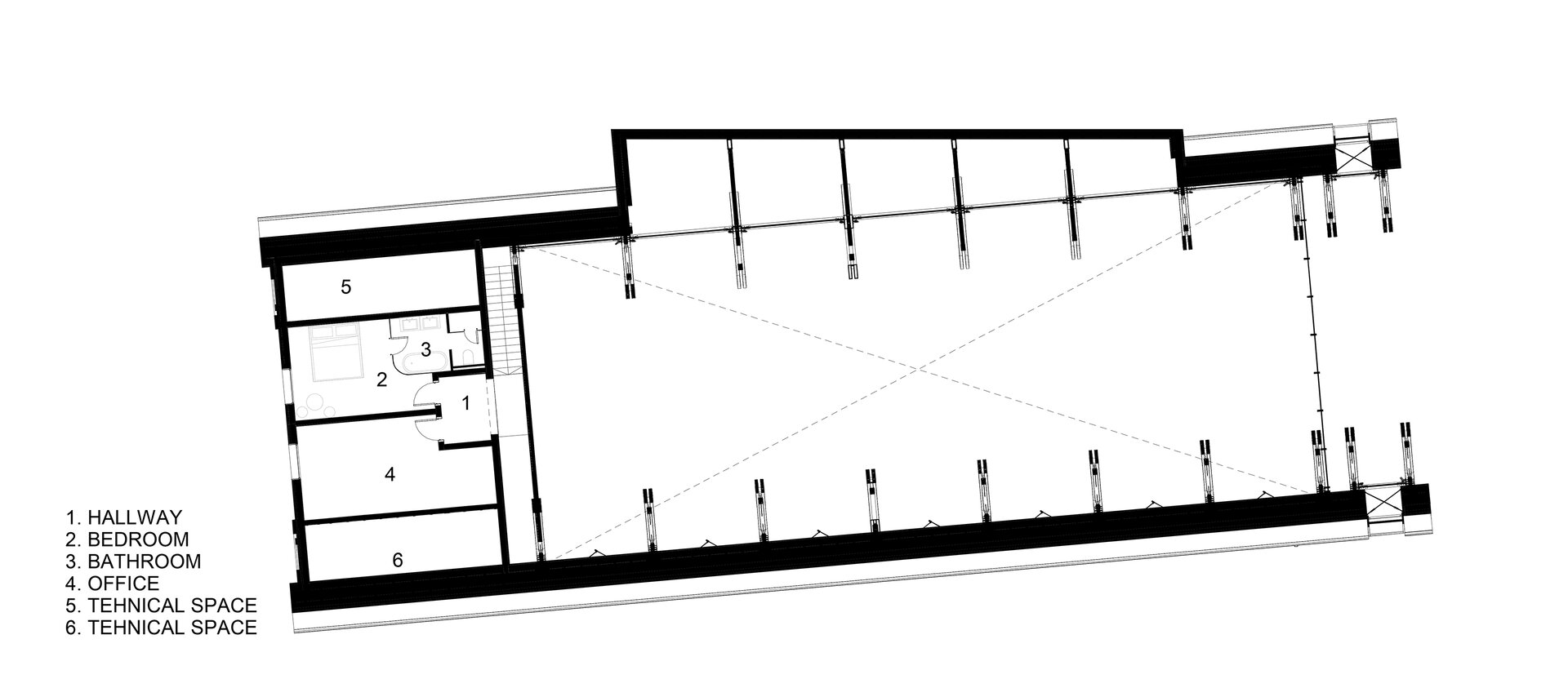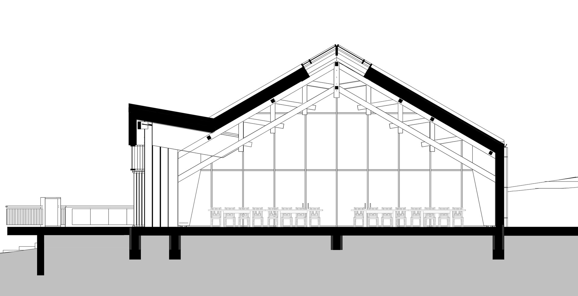 Având o planimetrie simplă și curată, jocul arhitectural s-a realizat prin volumetrie și, implicit, prin structura care definește identitatea locului și a spațiului. La nivel volumetric, există un corp principal, conturat printr-un fronton generos de sticlă și lemn ce constituie accesul principal în locație, și un corp secundar alipită corpului principal, care primește o mică deviație de unghi pentru a surprinde peisajul locului și deschiderea vizuală către orașul Cluj-Napoca. Îmbinarea celor două volume se face la nivel structural prin creativitate și măiestrie inginerească, oferind spațiului interior fluiditate și coerență.