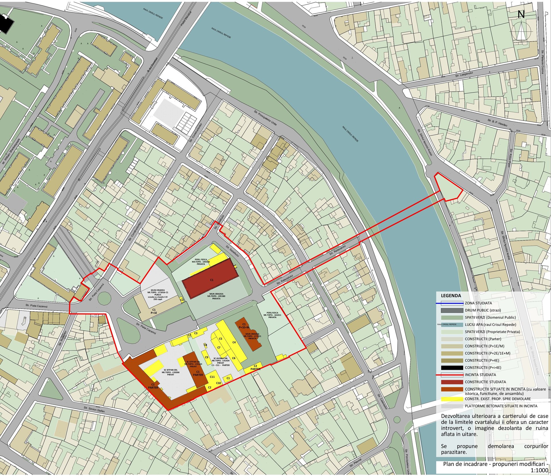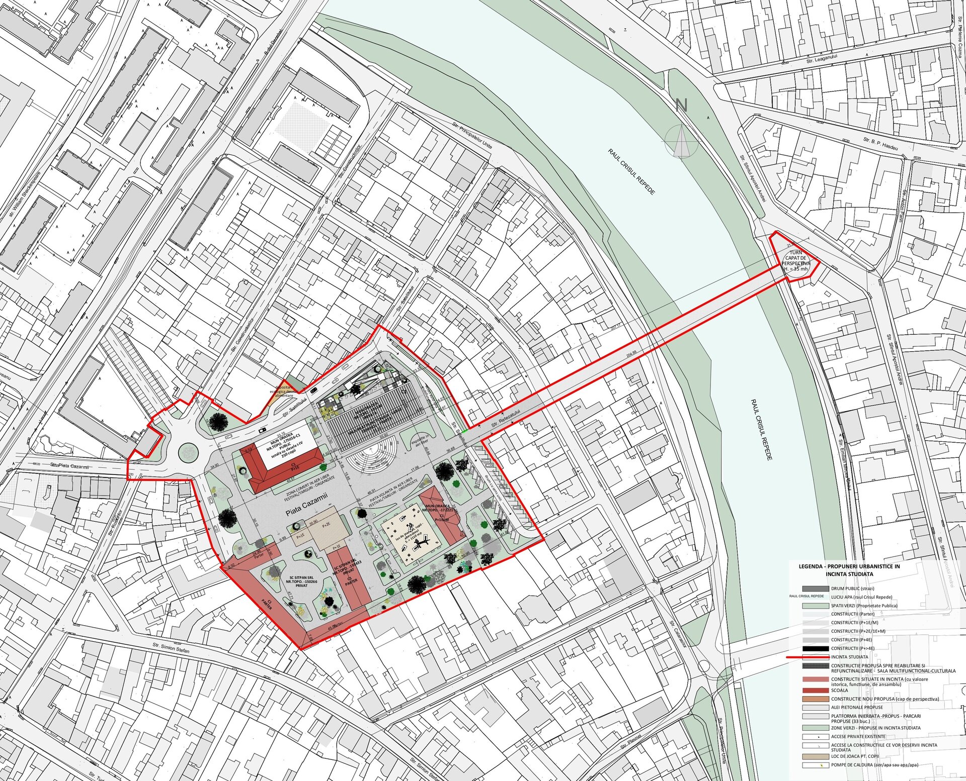 Propunerea urbanistica porneste de la necesitatea creării unui pol de atractie preponderent pentru populatia din zona. Astfel, strategia are mai multe componente: sociala, economica, arhitecturala. Abordarea socială presupune raportarea la diferite clase sociale si diferite tipuri de varsta. Abordarea economica presupune analiza economica a zonei si propunerea unor functiuni care sa poate sustine aconomic zona, micii intreprinzatori si in acelasi timp sa fie adaptate mai multor tipuri de nevoi si activitati.
