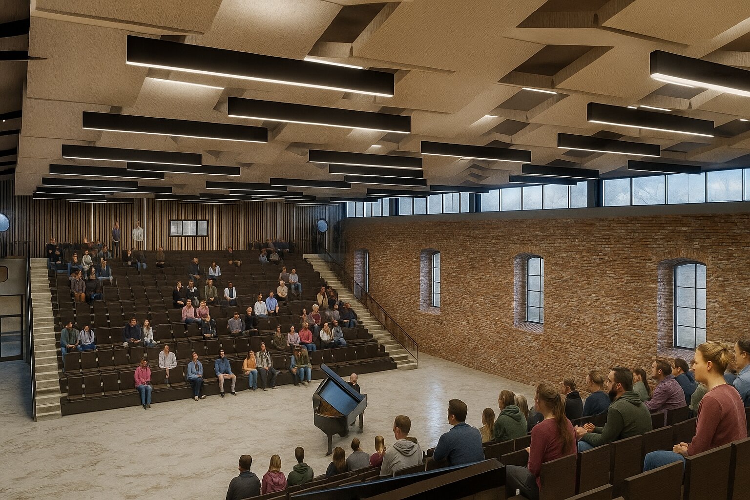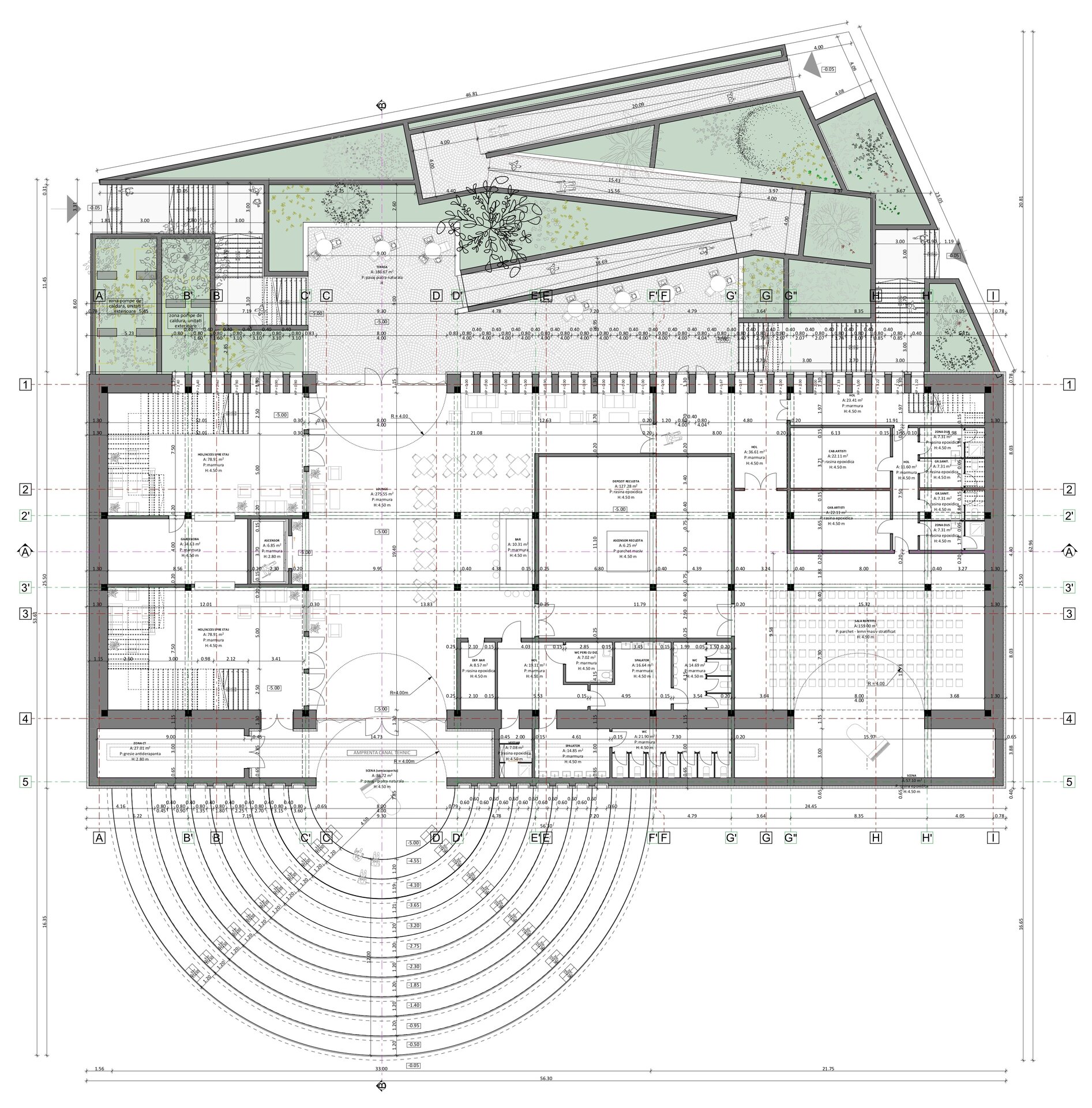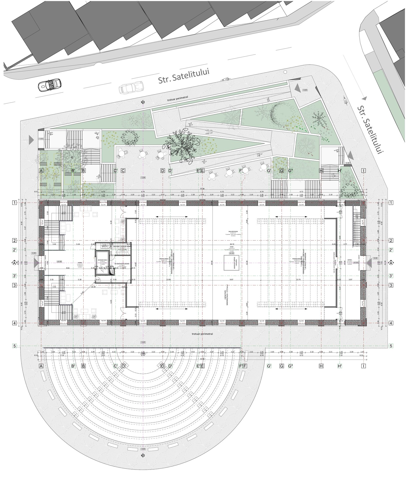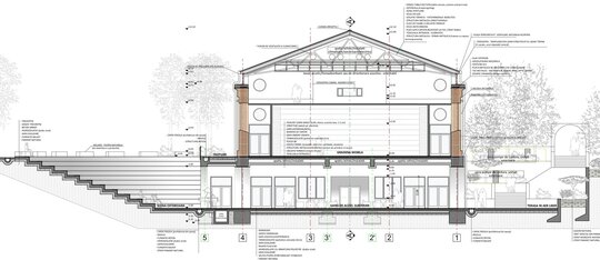 Manejul este gandit ca un complex artistic, cu un interior fluid si adaptabil. Se relationeaza cu exteriorul prin pasajul subteran creat. Pentru a lasa nealterate fatadele istorice, pasajul, amfiteatrul si terasa de pe fatada posterioara se propun subterane. Se dezvolta tema sus-jos, teran-suprateran, vizibil si invizibil.