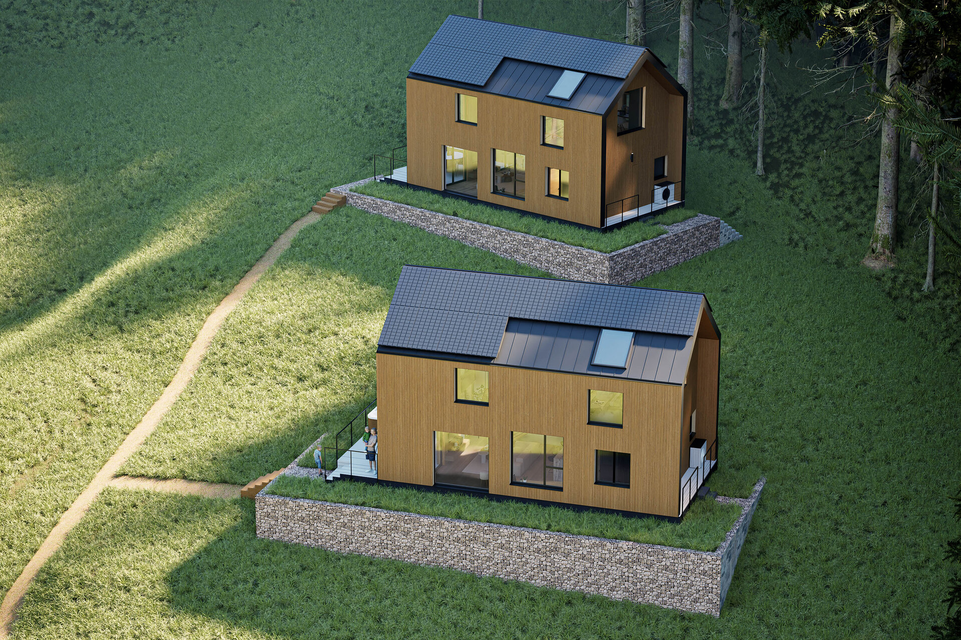 Proiectul prioritizează sustenabilitatea și eficiența energetică: locuințele sunt dotate cu panouri fotovoltaice inteligent orientate, montate pe acoperiș, și respectă standardele Passivhaus, asigurând confort termic optim pe tot parcursul anului.