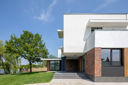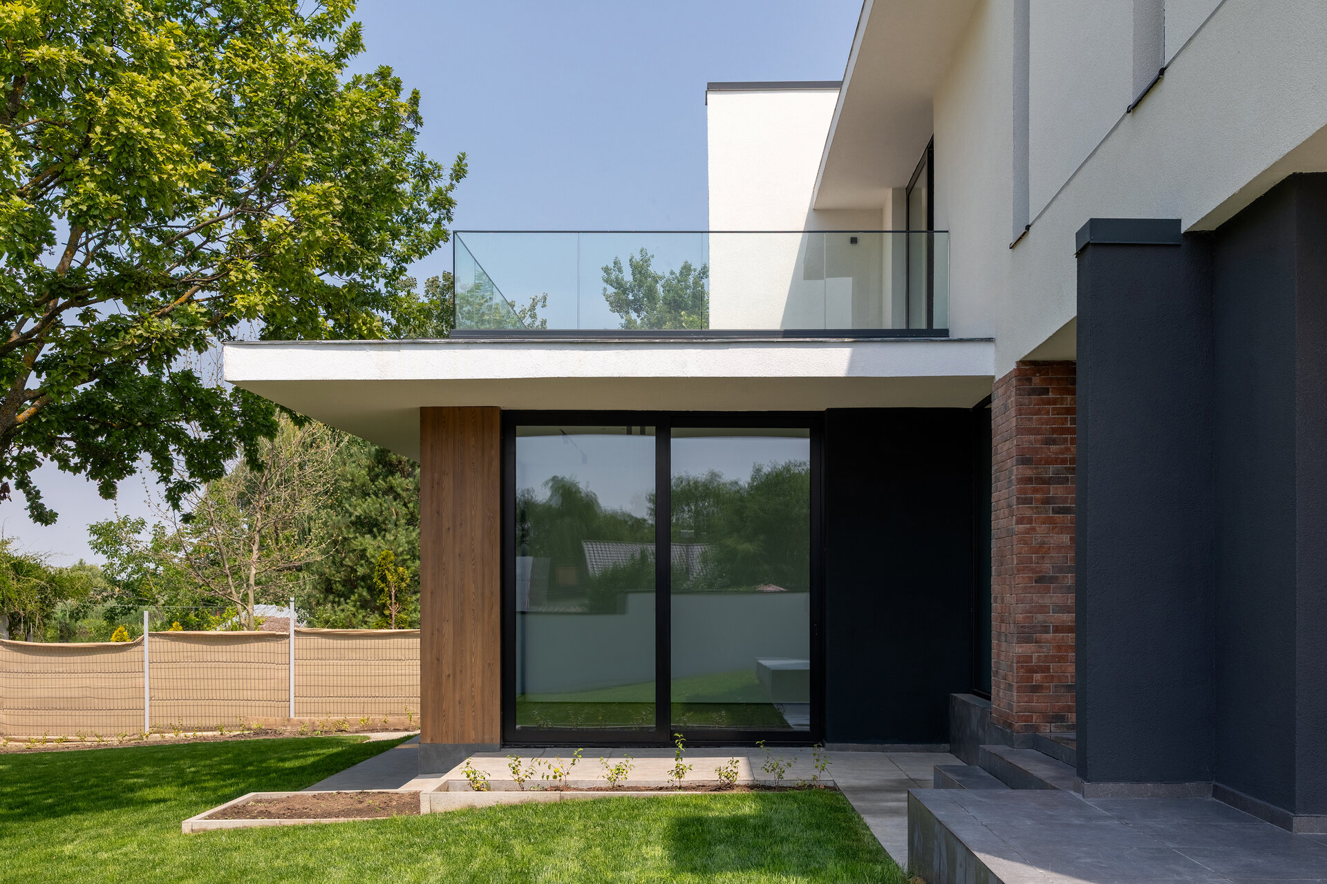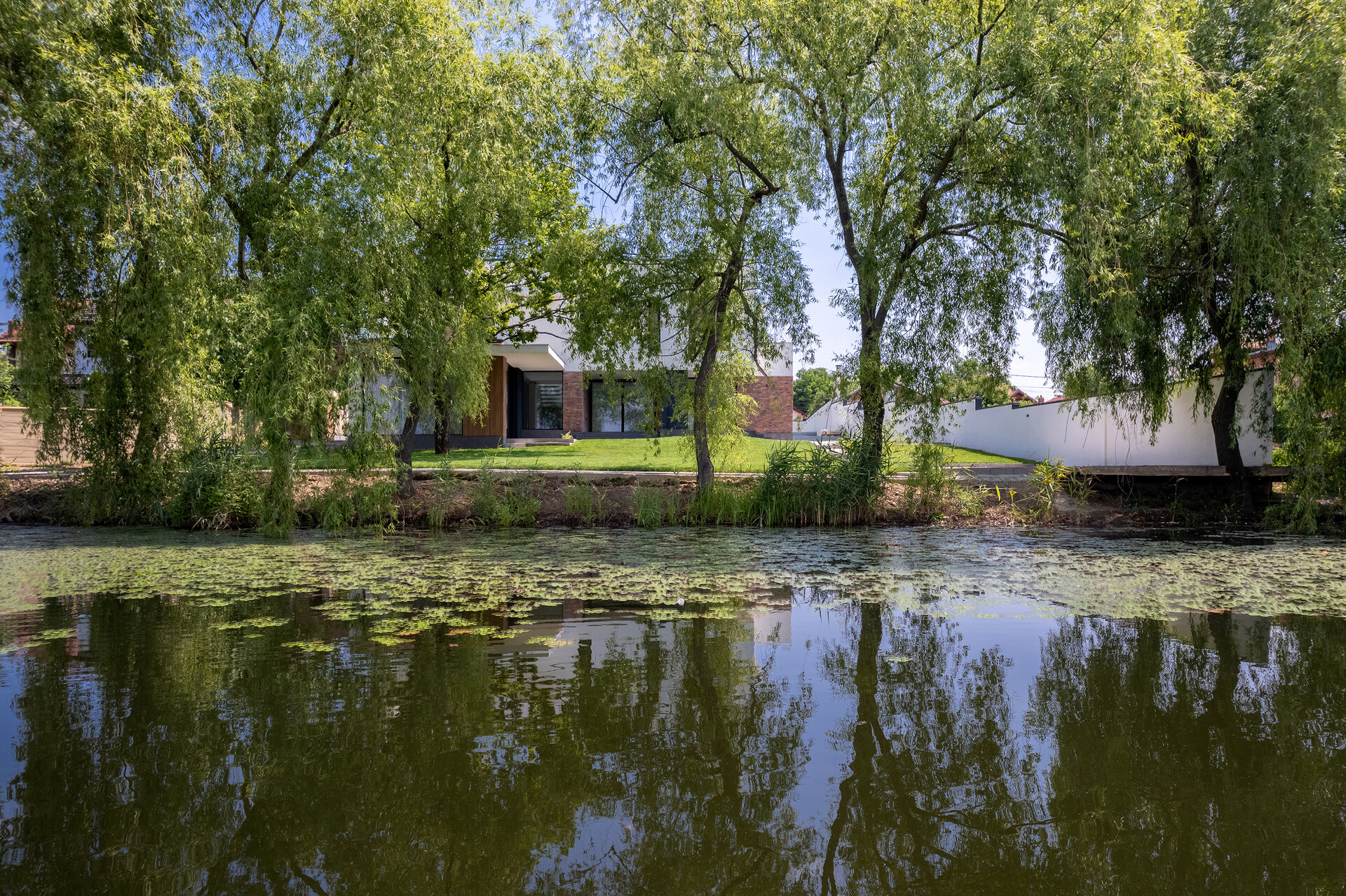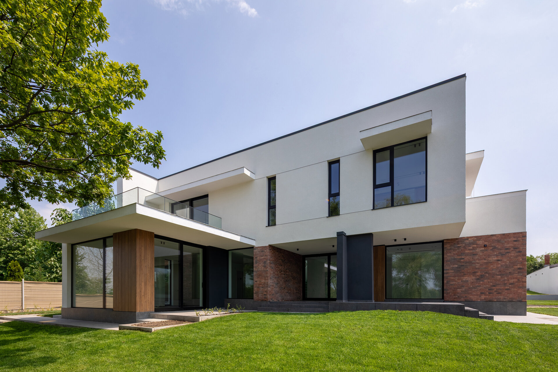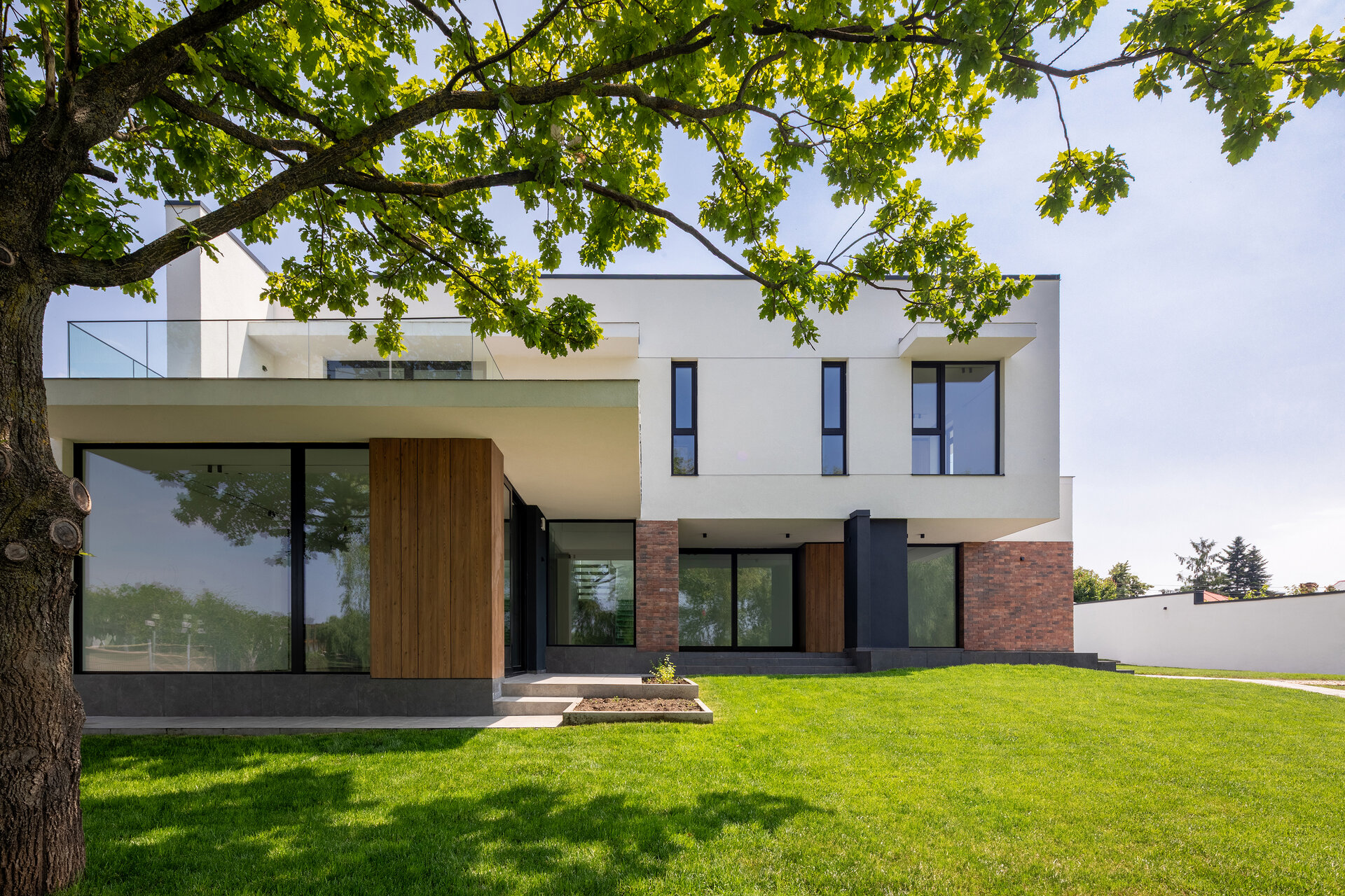 Arhitectura a fost gândită pentru a valorifica relația cu natura și pentru a crea o continuitate firească între spațiile interioare și cele exterioare. Parterul permite o deschidere vizuală amplă către grădină, lac și stejar, contribuind la o locuire profund conectată cu situl.