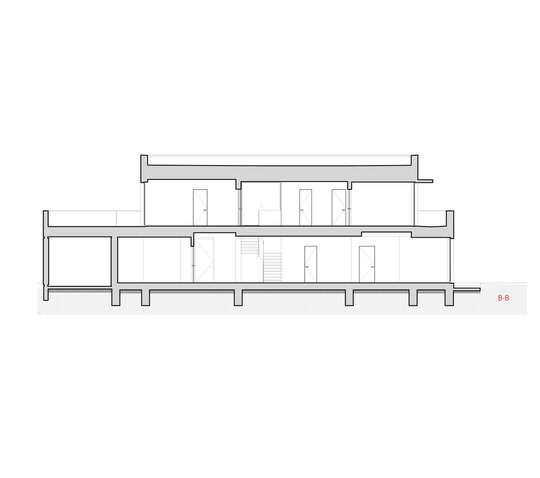 Simplitatea volumului superior este echilibrată de dinamismul parterului, tratat într-o varietate de materiale (cărămidă, lemn, ceramică) și tonuri cromatice (negru, antracit, cărămiziu, ocru, alb). Jocurile de retrageri, lumini și texturi contribuie la o expresivitate arhitecturală complexă, dar coerentă.