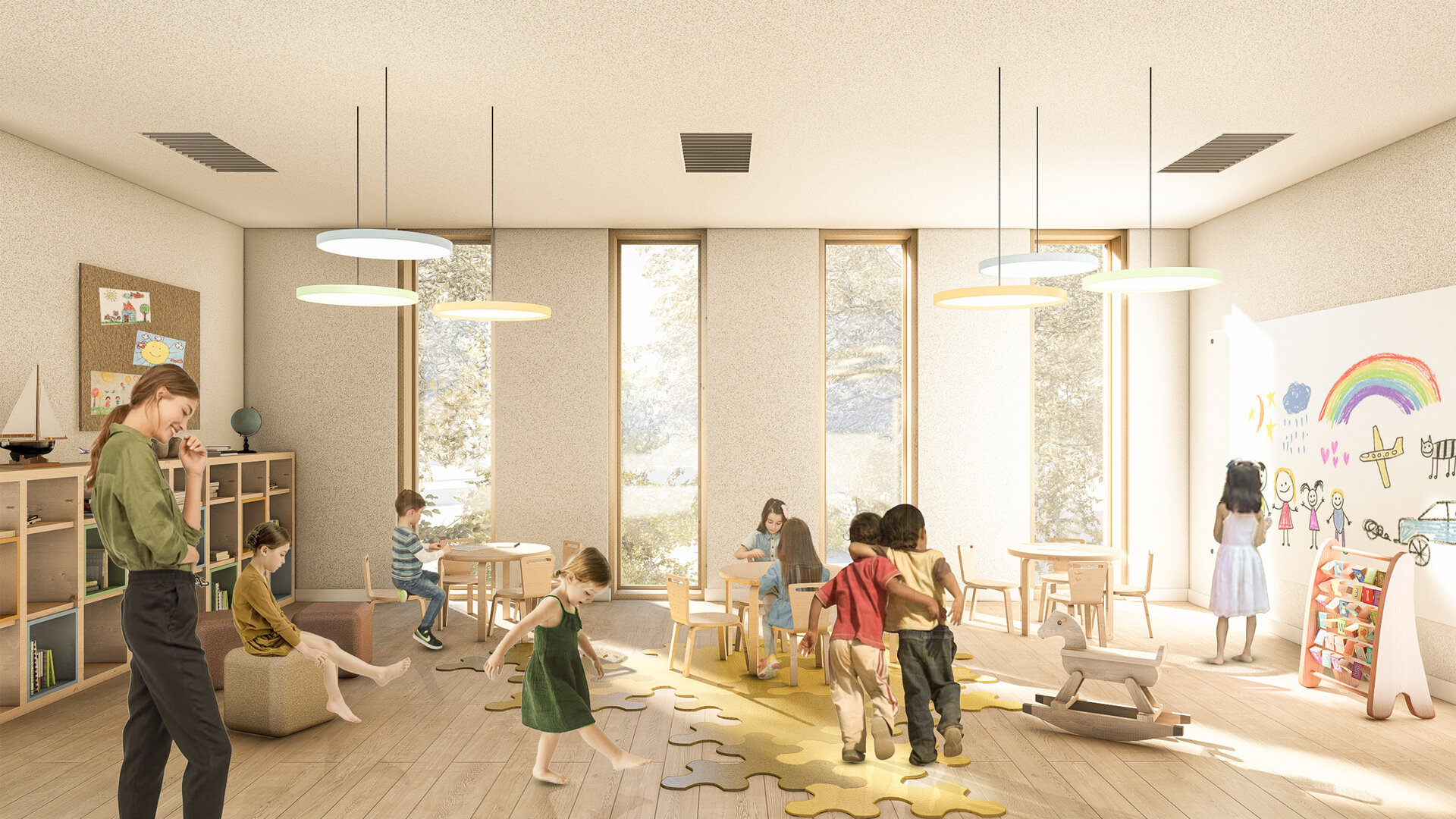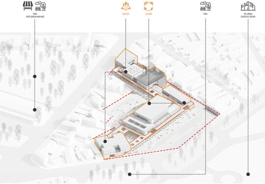 Centrul va fi caracterizat de flexibilitate funcțională, cu săli modulare și mobilier adaptabil pentru cursuri, expoziții și întâlniri. Vizibilitatea și deschiderea vor constitui principii de proiectare esențiale, prin transparență, spații ample și vizibilitate pe diagonală, completate de o piațetă exterioară care să invite comunitatea. Spațiile verzi integrate, precum o grădină educațională pentru activități în aer liber si zone de portic, vor întări legătura dintre educație și natură. Identitatea comunitară va fi consolidată prin ateliere realizate în colaborare cu tinerii locali și artiști din cartier, precum și prin activități culturale desfășurate de grupuri reprezentative, cum sunt de exemplu Studiourile Ferentari.