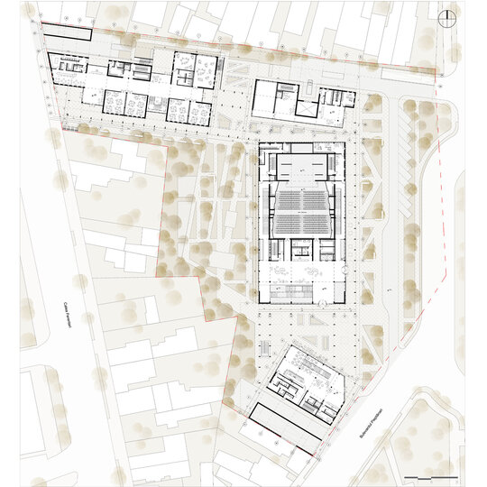 Proiectul se situează în periferia Bucureștiului, Sectorul 5, în cartierul Ferentari, în imediata vecinătate a fostului coridor feroviar Filaret–Progresul. Zona este una cu un trecut industrial puternic, unde numeroase terenuri au rămas dezafectate. Suprafața propusă pentru amplasament este rezultatul comasării a patru loturi – foste terenuri industriale – care astăzi adăpostesc două depozitări, o locuință individuală și un teren liber. Un avantaj major al amplasamentului îl constituie faptul că terenul are deschidere atât către Calea Ferentari, cât și către Bulevardul Pieptănari, ceea ce îi conferă vizibilitate și accesibilitate.