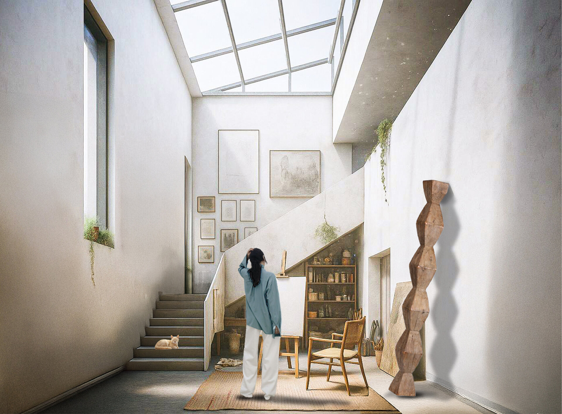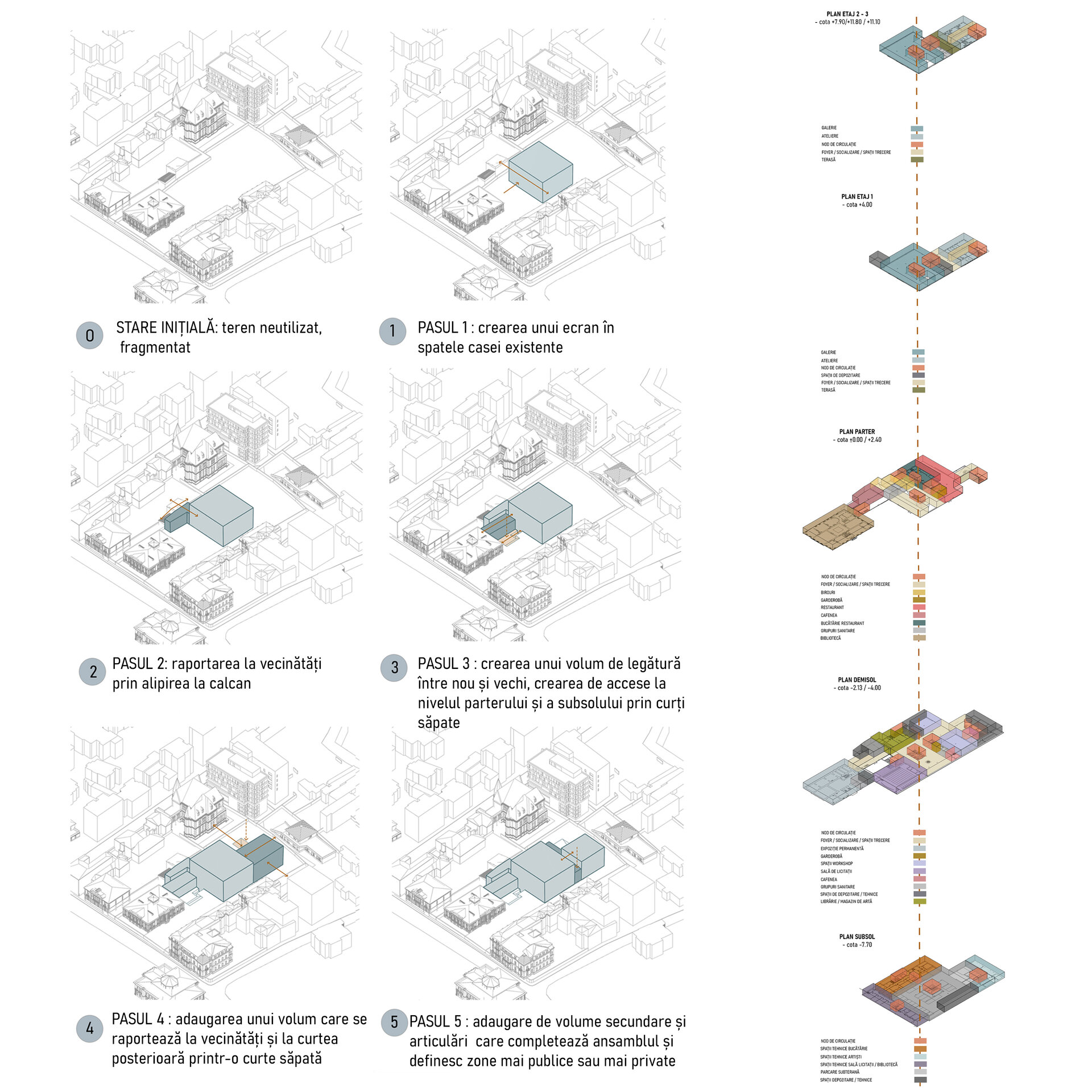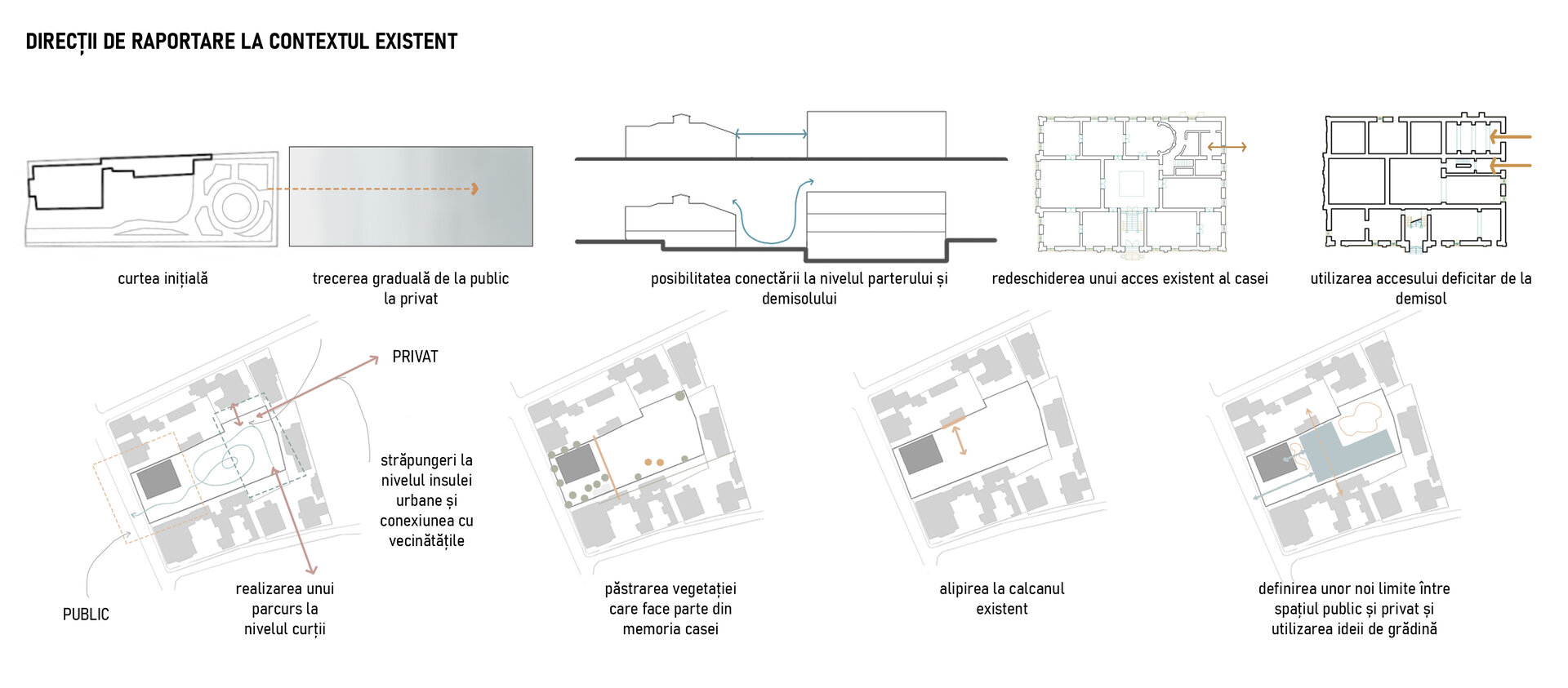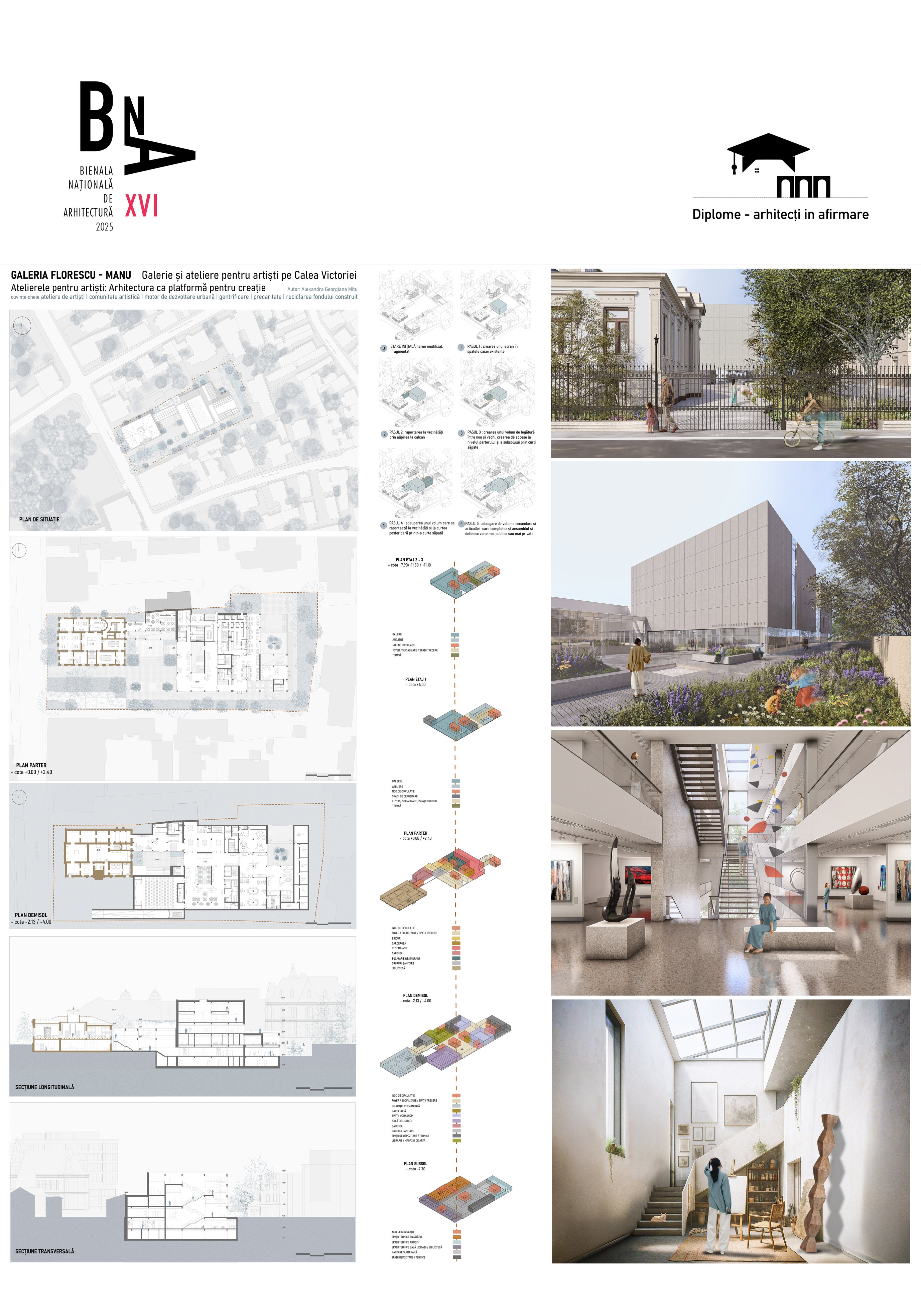 Intervenția arhitecturală are la bază principiul refuncționalizării Casei Florescu–Manu, printr-o abordare atentă și respectuoasă față de patrimoniu, dar în același timp capabilă să introducă noi valențe spațiului existent. Pe lângă restaurarea și adaptarea clădirii istorice, proiectul presupune și inserția unui nou corp de clădire, conceput într-o manieră reversibilă, adaptabilă și în deplin acord cu caracterul și valorile existente ale casei. Acest dialog între vechi și nou nu este unul conflictual, ci complementar, punând în valoare atât calitățile arhitecturii istorice, cât și expresia arhitecturală contemporană. Funcțiunile propuse sunt variate și răspund atât nevoilor artiștilor, cât și celor ale publicului: ateliere de creație pentru producția artistică, spații de expoziție destinate prezentării lucrărilor, săli pentru evenimente și conferințe, rezidențe artistice care încurajează schimburile internaționale și interdisciplinare, precum și zone de interacțiune publică, menite să faciliteze dialogul direct între artiști și comunitate. Întregul proiect este organizat în jurul ideii de dialog permanent între trecut și contemporaneitate, între patrimoniu și inovație, printr-o utilizare activă a clădirii și o implicare reală a comunității în viața culturală a orașului.