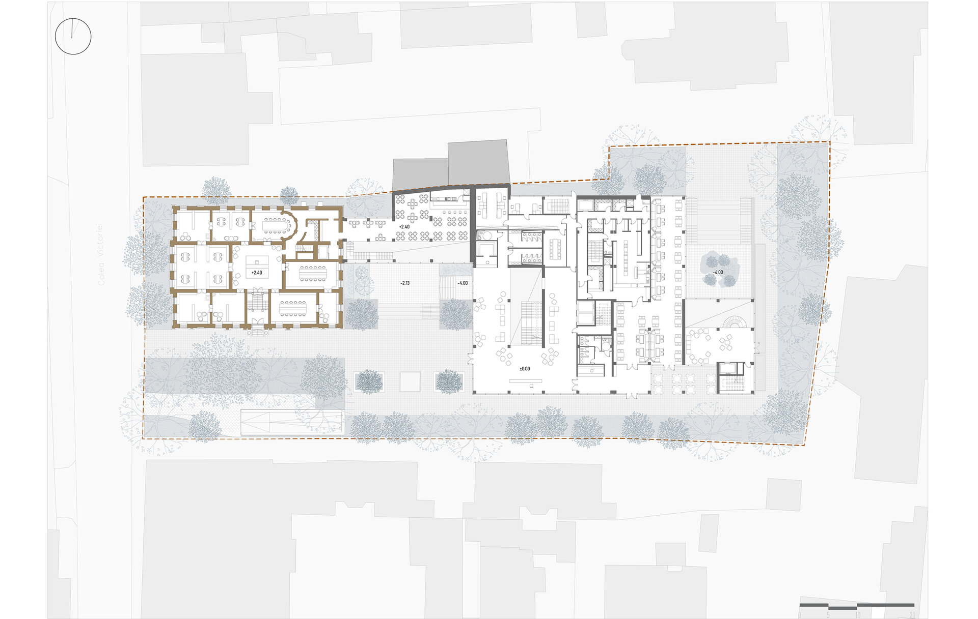 Proiectul de diplomă este localizat în centrul Bucureștiului, pe Calea Victoriei, una dintre cele mai reprezentative artere ale capitalei, cu un rol major în istoria și dezvoltarea orașului. Amplasamentul ales se află în incinta Casei Florescu–Manu, o clădire de patrimoniu cu o valoare istorică și arhitecturală deosebită, ce aparține unui strat important al memoriei colective urbane. Această casă, cu elemente arhitecturale reprezentative pentru epoca sa, constituie nu doar un reper fizic, ci și unul simbolic pentru identitatea zonei. Locația se bucură de un context urban extrem de activ, definit de densitatea funcțiunilor culturale, comerciale și turistice existente pe Calea Victoriei, și beneficiază de o vizibilitate publică majoră, fiind traversată zilnic de un flux intens de locuitori și vizitatori.