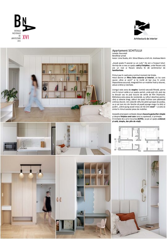 Această locuință vorbește despre bucuria gesturilor simple și despre liniștea unei case care nu epatează, ci primește. Este un proiect despre cum acasă poate fi simultan intim și adaptabil, o invitație de a privi locuirea ALTFEL: ca pe un spațiu ordonat, dar cald, simplu, dar plin de viață, unde prezentul și viitorul se întâlnesc firesc, iar fiecare zi începe și se termină cu confort, siguranță și bucurie.