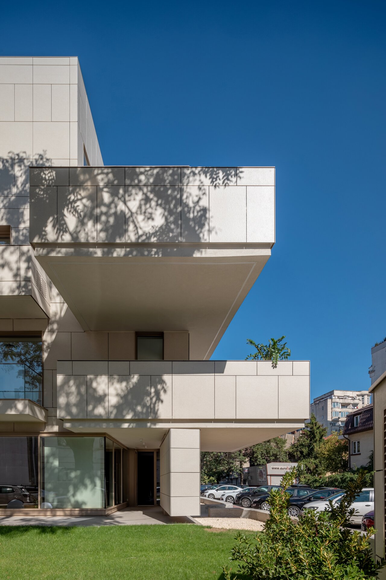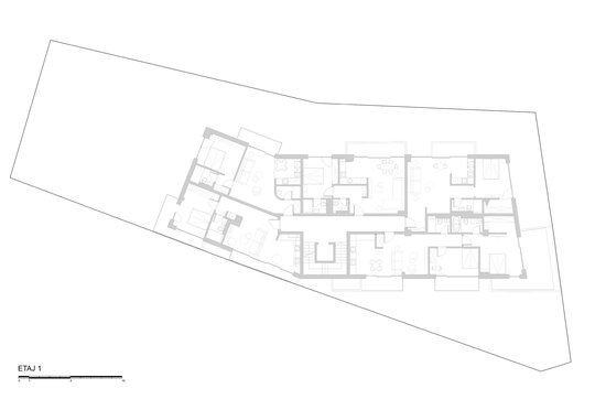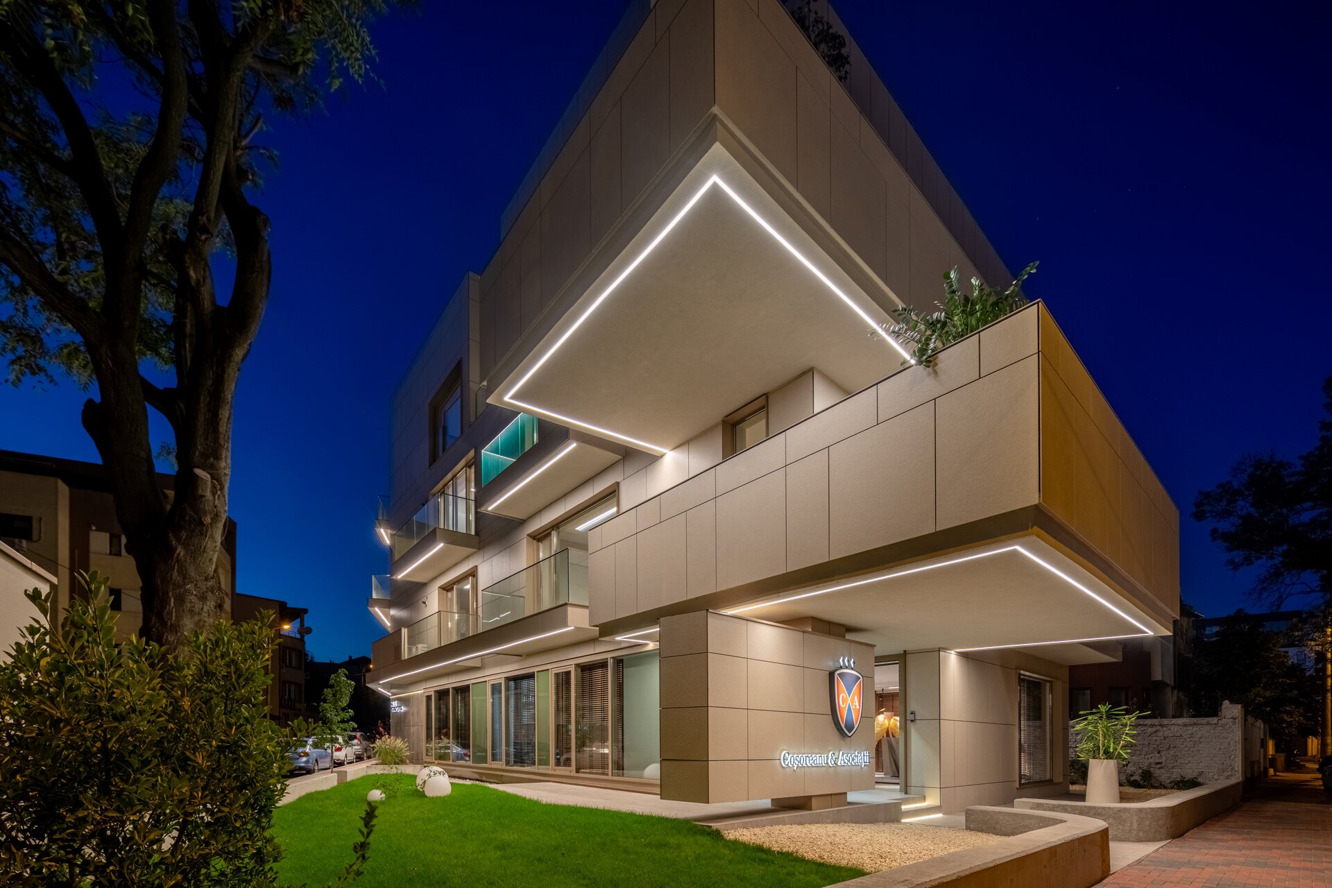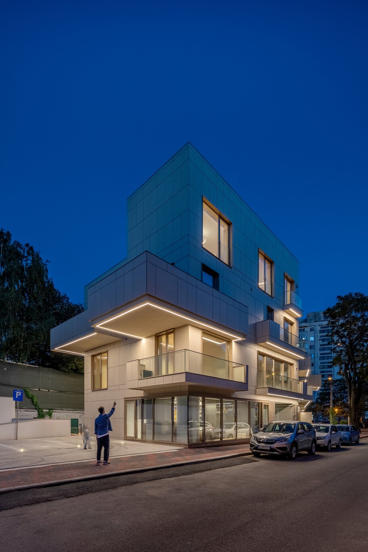 Programul de arhitectură convenit împreună cu beneficiarii acestui teren are în vedere 11 apartamente cu dotări superioare și un spațiu comercial la parter, pe o suprafață construită la sol de 370 mp și desfășurata totală de 1400 mp. Volumetria compactă se dezvoltă pe patru niveluri peste un subsol pe întreg perimetrul construibil, ultimele două etaje fiind parțiale și retrase, așa încât vederea dinspre intersecție să ofere cea mai bună relație cu scara generală a construcțiilor învecinate. Modelarea retragerilor în volumul general construibil permis de regulamentul zonei este foarte bine dozată și generează o bună varietate vizuală la nivelul percepției pietonale, atât de pe strada Cezar Bolliac (fațada lungă, vestică, cu accesul la apartamente), cât și de pe strada Theodor D. Speranția (fațada scurtă, sudică, cu accesul la birourile de la parter). Dificultatea proiectului a constat așadar în negocierea dintre modelarea volumetriei care răspunde cu succes constrângerilor contextuale și formularea unui program capabil să combine locuirea privată și diversificată cu funcțiunea publică. Apartamentele cu suprafețe utile generoase, terase mari, ferestre extinse și mai ales cu un design atent elaborat, peste nivelul ofertelor imobiliare obișnuite, poartă acum eticheta „boutique” care exprimă așteptări mult mai înalte din partea beneficiarilor la nivelul concepției de proiectare, dotărilor și calității de construcție. Primele două etaje grupează cinci apartamente diferite pe nivel, nodul de circulație verticală fiind în contact cu fațada vestică, în punctul în care volumul se „frânge” datorită conturului neregulat al terenului și colțului neconstruibil sud-vestic. Etajul al treilea se reduce progresiv prin modul extractiv al generării celor trei terase în volumetrie, iar etajul al patrulea reține doar un volum retras către fațada estică (cea mai puțin vizibilă) în care se continuă prin intermediul scărilor interioare private zona de noapte a celor mai mari două apartamente de la etajul trei. Suprafețele utile ale apartamentelor variază între 50-54 mp la două camere, 75-80 mp la trei camere pe un singur nivel și 135-162 mp la trei și patru camere pe dublu-nivel. Varietatea tipologică a apartamentelor și modul în care sunt configurate terasele scobite sau extinse în console foarte curajoase produc experiențe spațiale remarcabile între interiorul privat și exteriorul public. Cele două intrări de la parter și colțul sud-vestic în care se întâlnesc fațadele principale constituie locurile cele mai importante din punctul de vedere al percepției urbane, tratate cu multă grijă la nivelul îmbinărilor geometrice de planuri și al punerii în operă a materialelor de finisaj. Colțul sud-vestic nu a fost neglijat nici la nivelul amenajării peisagistice a terenului, astfel încât să participe împreună cu fațadele la interacțiunea pietonală permisă de funcțiunea publică a parterului. Subsolul asigură accesul auto printr-o rampă pentru 17 autoturisme și spațiul necesar pentru funcțiunile tehnice. Parterul, ocupat integral de spațiul de birouri și de micul hol de intrare cu nodul vertical de circulație pentru apartamentele de la etaj, profită de avantajul expunerii perimetrale către curtea care marchează inelar terenul, configurată în urma retragerilor urbanistice. Accentul principal cade pe zona intrării la birouri, expusă către intersecție, bine modelată prin retragerea peretelui vitrat și prin extinderea îndrăzneață în consolă a terasei de la etaj. Tratamentul sculptural al volumetriei, care continuă la fel de dinamic și la celelalte etaje prin retragerile și avansările teraselor, răspunde dorinței beneficiarilor de a pune în valoare funcțiunea publică a parterului și imaginea caracteristică a unui bloc-boutique, capabile să transmită caracterul adecvat al arhitecturii într-o zonă încărcată cu memorie istorică.