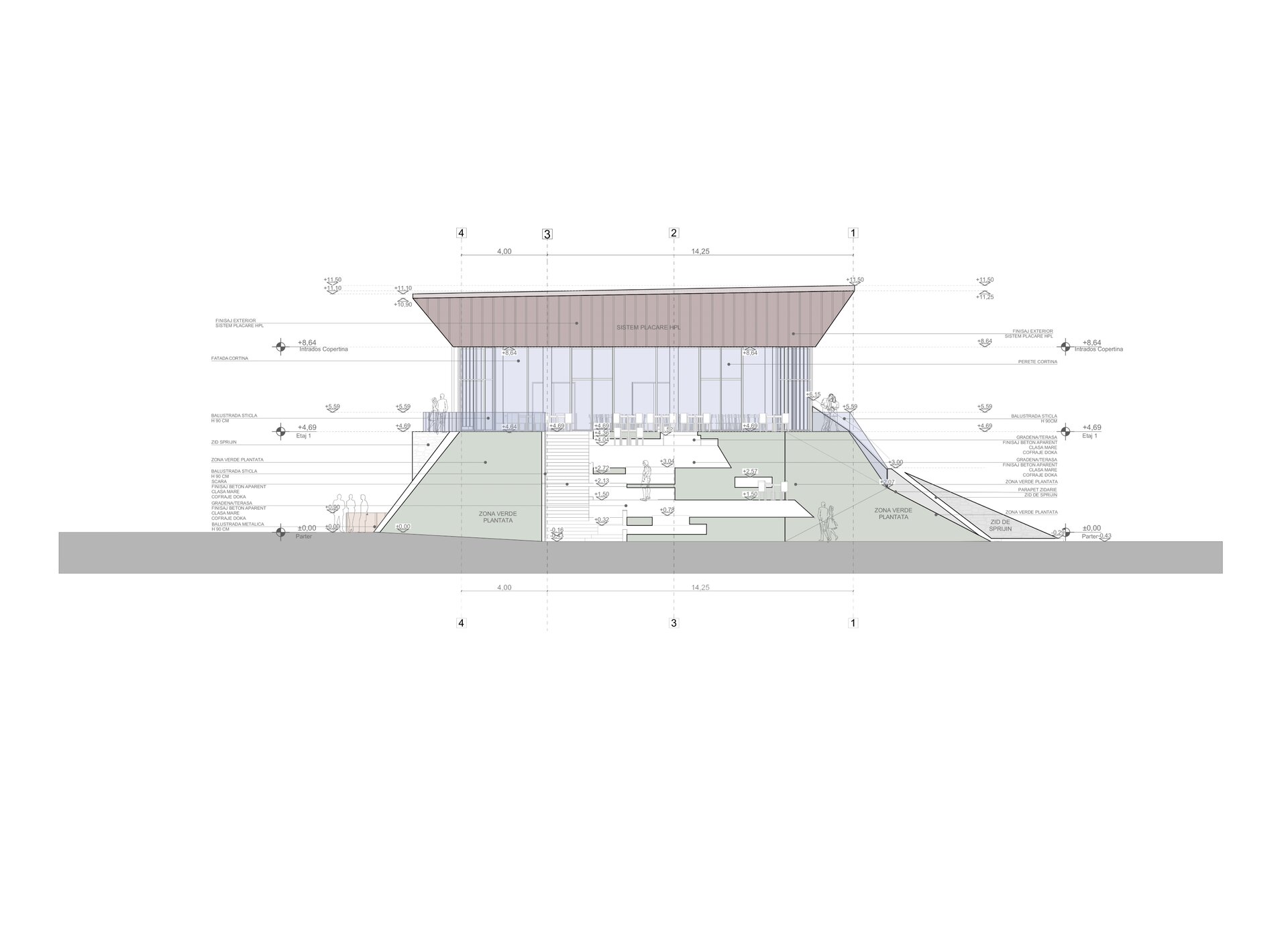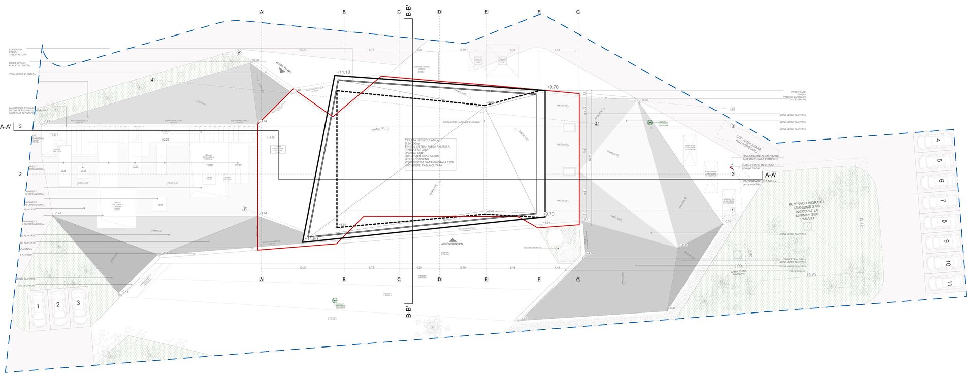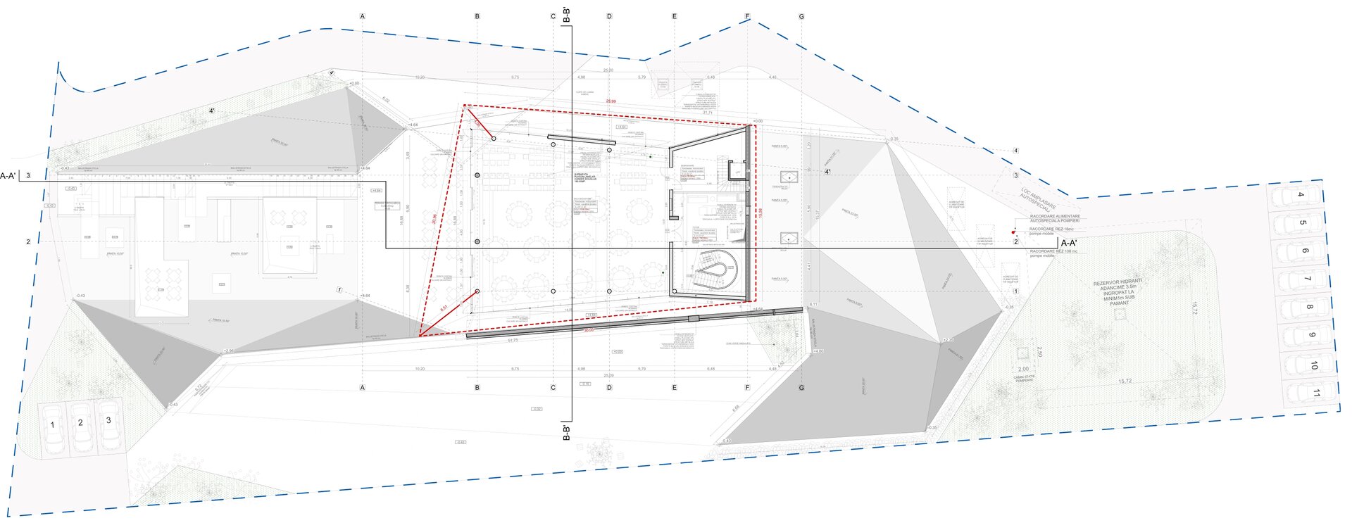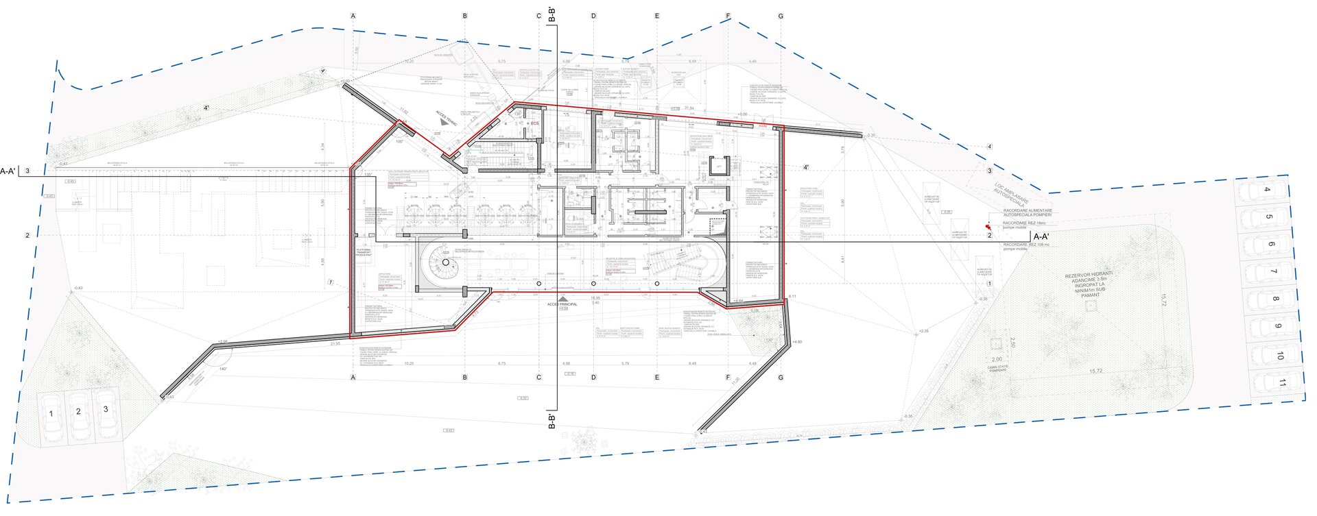 Construcția folosește un sistem dual de cadre și pereți structurali din beton armat, completat de soluții sustenabile: acoperiș verde, taluzări vegetale și fațade ventilate, pentru eficiență energetică și durabilitate. Materialele au fost alese pentru longevitate, rezistență la foc și integrare estetică, respectând normele PSI și de protecția muncii. Tehnologia și designul se completează reciproc, creând o cramă modernă, funcțională, prietenoasă cu mediul și fidelă spiritului locului.