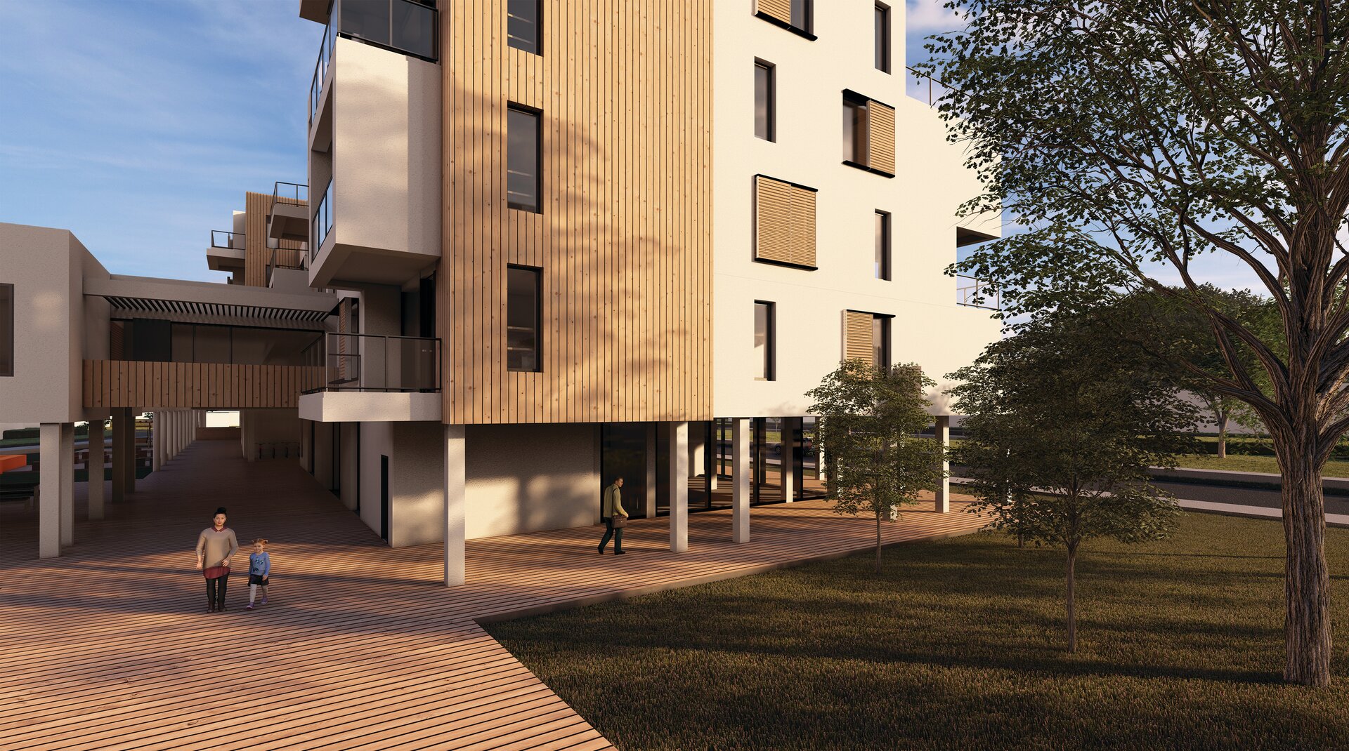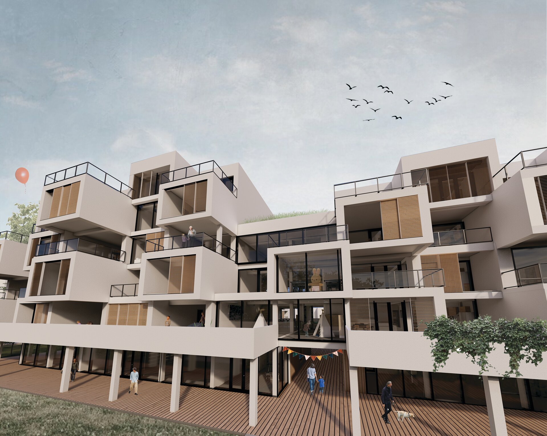 Proiectul se sprijină pe trei piloni fundamentali: comunitatea, reflectată în însăși tipologia de locuire colectivă; diversitatea, definită de multitudinea de funcțiuni ce coabitează armonios pe același sit; și natura, integrată printr-un sistem de terase verzi ce transformă fiecare unitate de locuit într-un mic ecosistem. Terasele verzi, tot mai des discutate și aplicate în arhitectura contemporană, au fost valorificate la maximum: fiecare apartament dispune de o terasă proprie, spațioasă și plantată, obținută printr-un joc volumetric atent calculat pe fațadă. Retragerile și avansările modulelor au generat „casete” deschise, spații intime de relaxare în aer liber, depășind simpla idee de balcon atașat. În acest fel, fiecare „acasă” devine verde, aerisit și luminos, iar vegetația contribuie la filtrarea poluării cauzate de traficul rutier, transformând terasele într-un adevărat „plămân” al clădirii.
