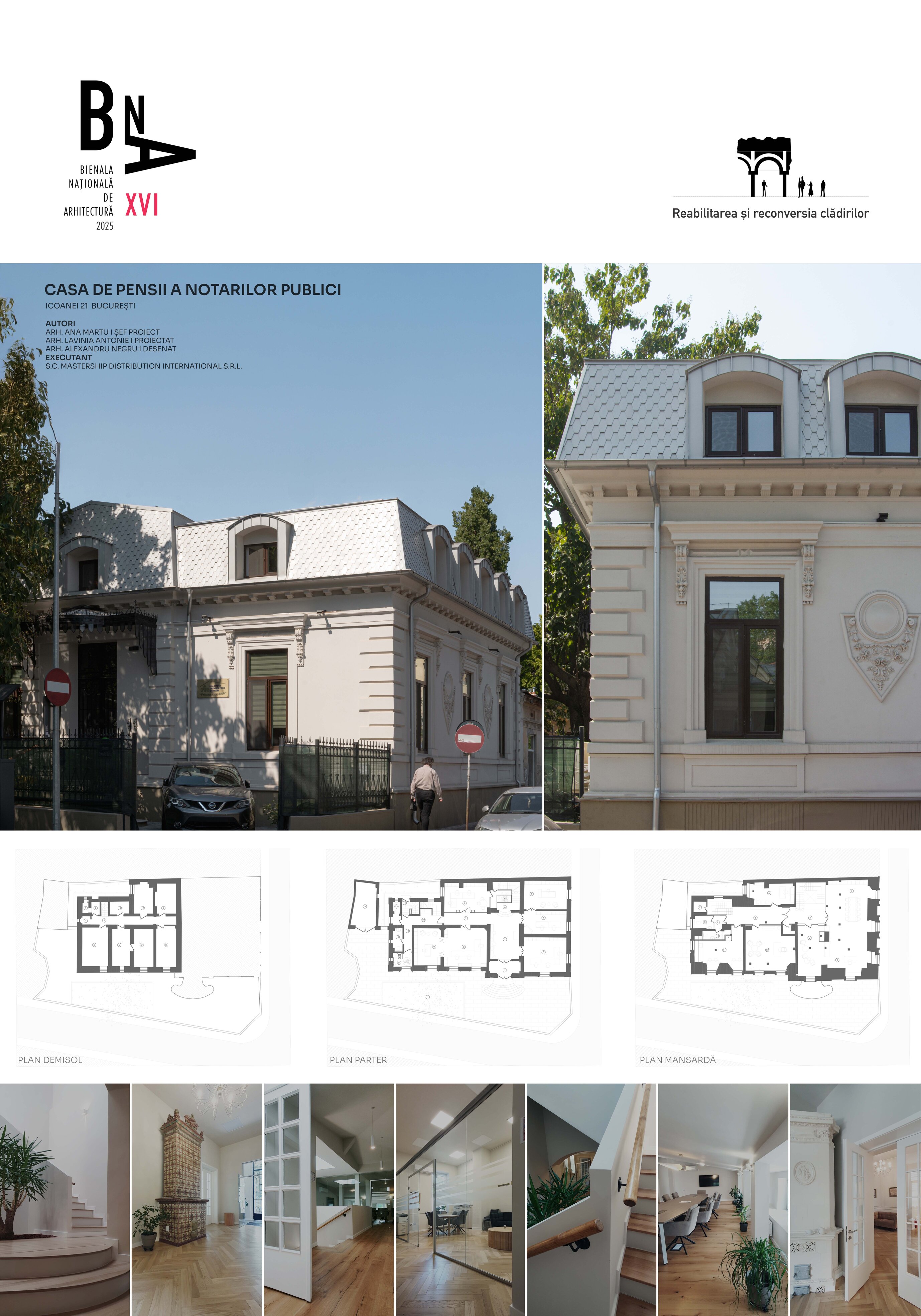 Proiectul de reabilitare a Casei de Pensii a Notarilor Publici a fost pentru noi un studiu de caz, o dovadă concretă a faptului că patrimoniul poate fi conservat și valorificat, servind în același timp nevoilor societății contemporane. Prin respectul pentru detaliu, prin alegerea soluțiilor tehnice non-invazive și prin viziunea de a reda clădirii funcționalitatea și frumusețea sa, am reușit să onorăm istoria, să creăm un spațiu de muncă modern și eficient și, nu în ultimul rând, să contribuim la menținerea identității arhitecturale valoroase a zonei protejate „Icoanei”.