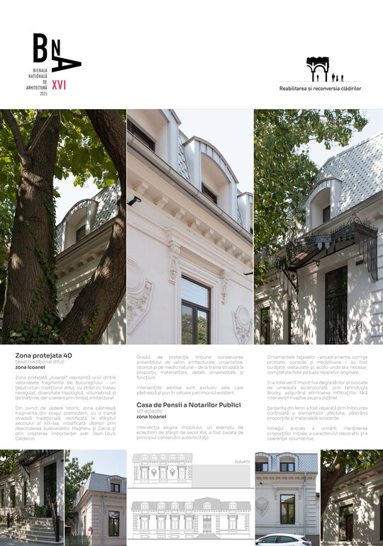 Proiectul de reabilitare a sediului Casei de Pensii a Notarilor Publici, situat pe Strada Icoanei nr. 21, în inima zonei protejate „Icoanei” din București, reprezintă o intervenție asupra unui fond construit cu caracter istoric evidențiind faptul că modernizarea și conservarea pot coexista, îmbogățind reciproc valoarea clădirii și a contextului urban în care se află.