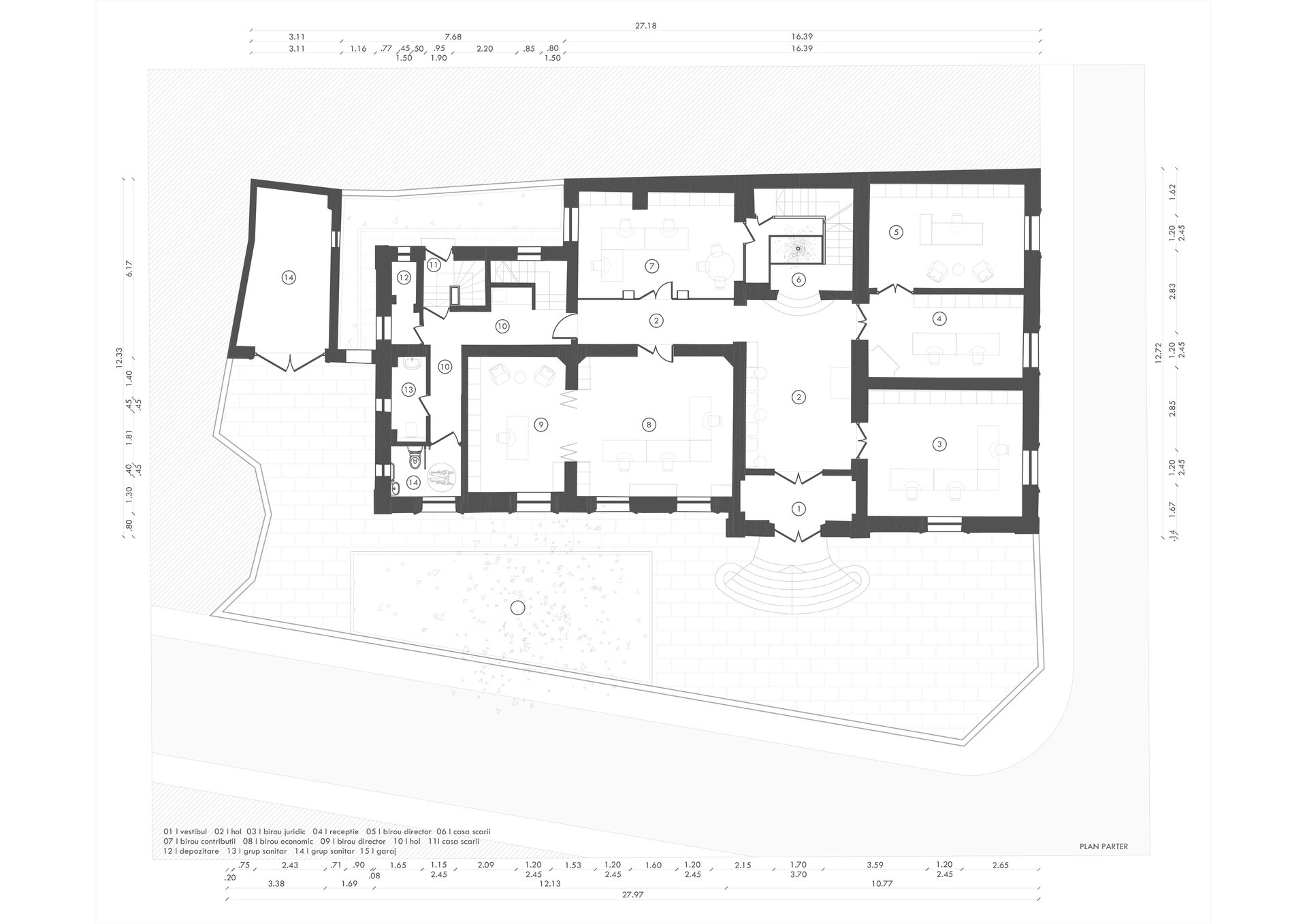 Intervențiile în această zonă sunt acțiuni de conservare și valorificare a unui patrimoniu comun. Gradul de protecție impune conservarea ansamblului de valori – de la trama stradală și proporțiile volumetrice, până la materialitate, detalii ornamentale și funcțiuni. Misiunea noastră a fost de a ne integra discret, de a adăuga un nou capitol la povestea clădirii, fără a-i altera esența. Am abordat proiectul cu un respect profund pentru aceste principii.