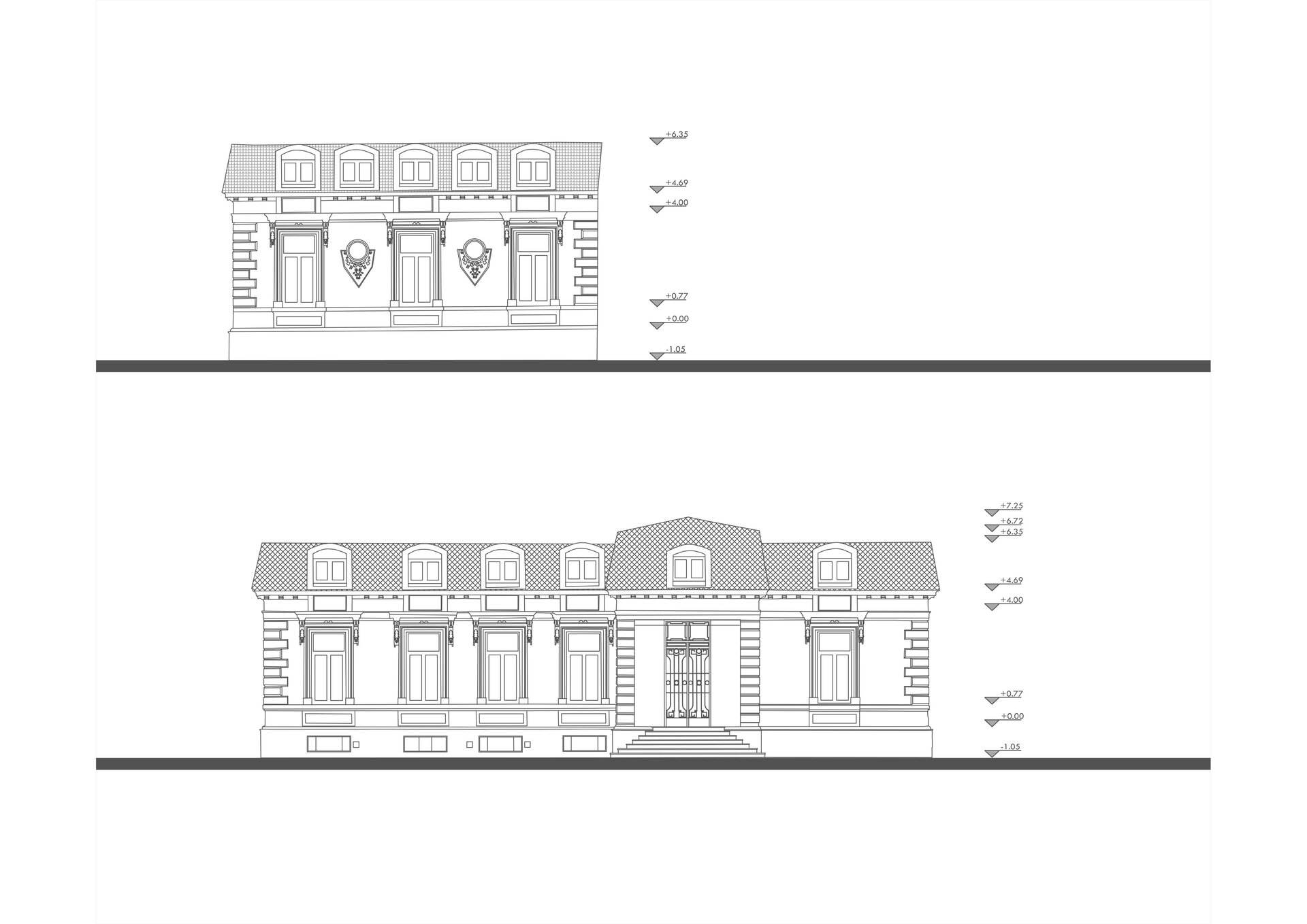 • Restaurarea elementelor decorative: Curățarea, restaurarea și, acolo unde a fost absolut necesar, completarea elementelor ornamentale ale fațadelor (ancadramente, cornișe, console, medalioane) s-au făcut cu o fidelitate absolută față de reperele originale.