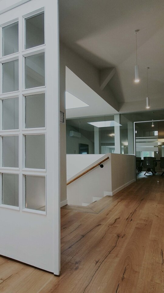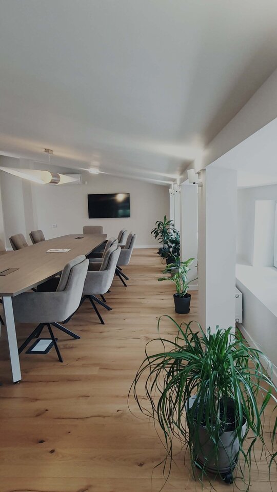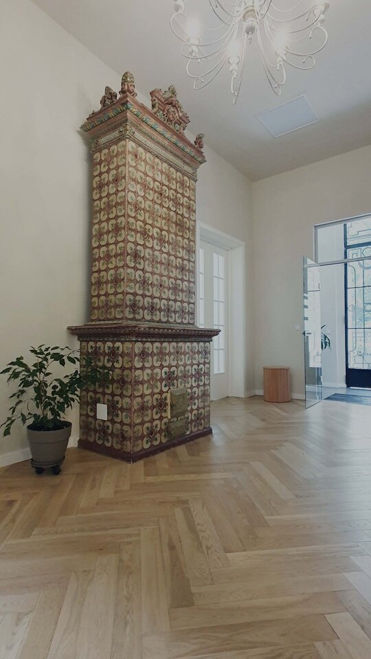 • Modernizarea interioară și funcțională: La interior, intervenția a urmărit o dublă misiune: pe de o parte, adaptarea spațiilor la cerințele funcționale actuale ale unui sediu modern de birouri și, pe de altă parte, corectarea intervențiilor anterioare. O atenție deosebită a fost acordată elementelor de patrimoniu interior, cum ar fi tâmplăria interioară și sobele de teracotă.