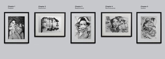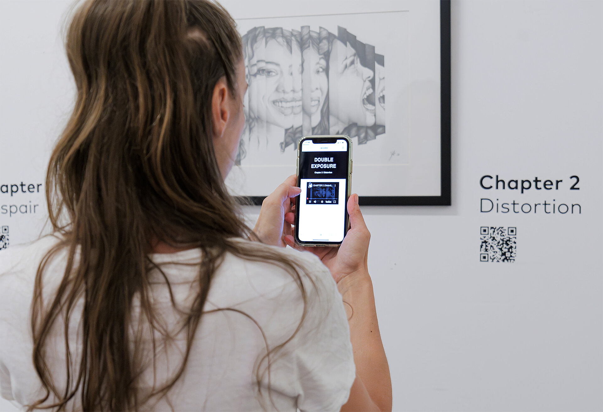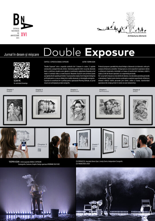 "Double Exposure" este o expoziție alcătuită din 5 desene în creion, 5 „capitole” consecutive autoportrete ale artistei. Asemenea paginilor dintr-un jurnal, desenele devin o subtitrare vizuală a unor gânduri și sentimente copleșitoare, înregistrate pe o axă temporală a emoțiilor.