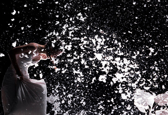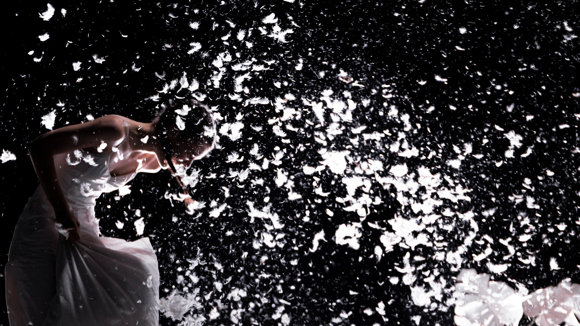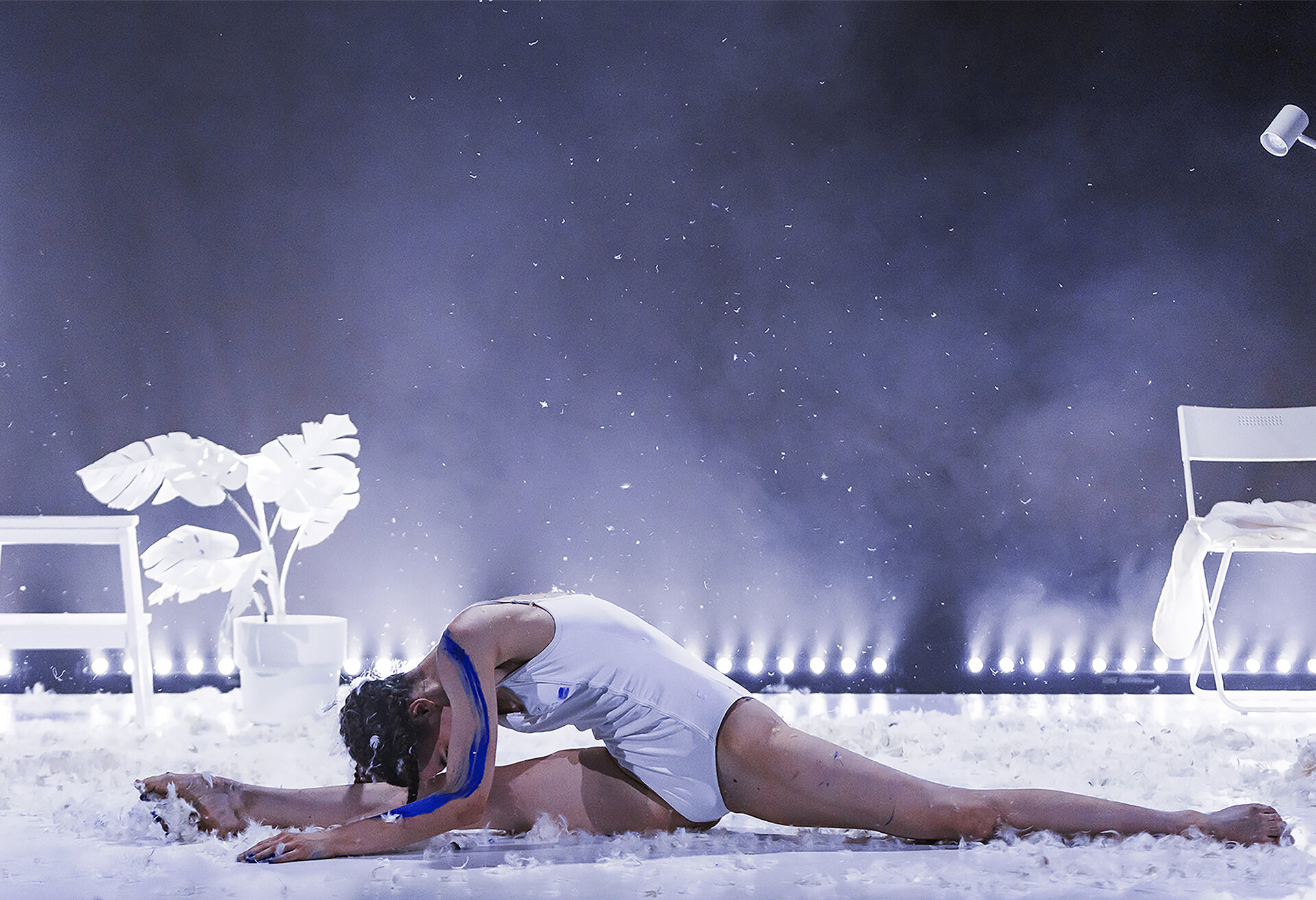 Transformările interioare ale personajului se reflectă în dinamica obiectelor: cutremurul interior și prăbușirea corpului se reflectă în prăbușirea mobilierului, în dezorganizarea spațiului, spațiul imaculat este „contaminat” prin pete cromatice de albastru electric și prin dispersia de fulgi albi. Acest proces scenografic echivalează cu materializarea rănilor personale în arhitectura spațiului. Spre final, scenariul se rescrie într-o cheie ludică, aducând o reechilibrare și o revenire către sine. Pentru Alexandra, dansul a devenit salvare și zbor.