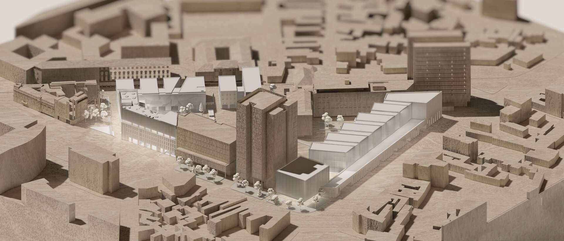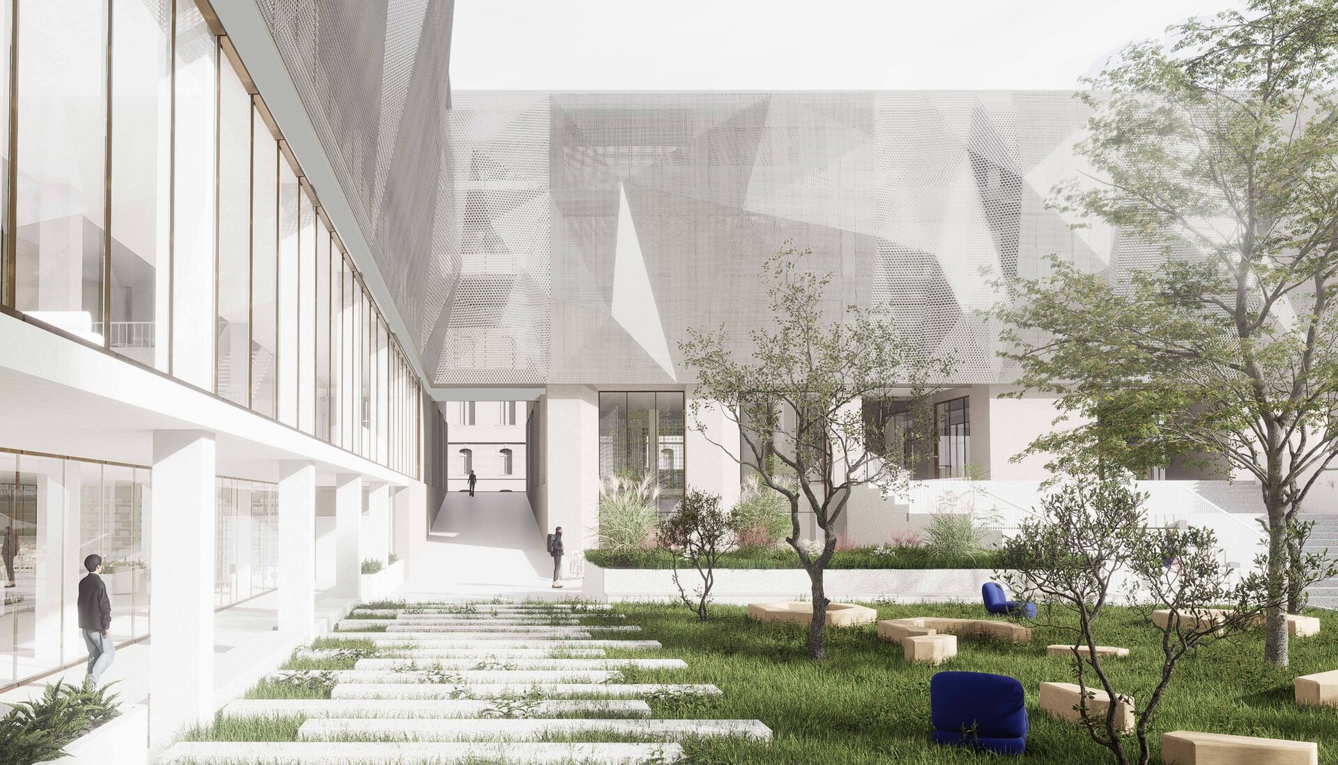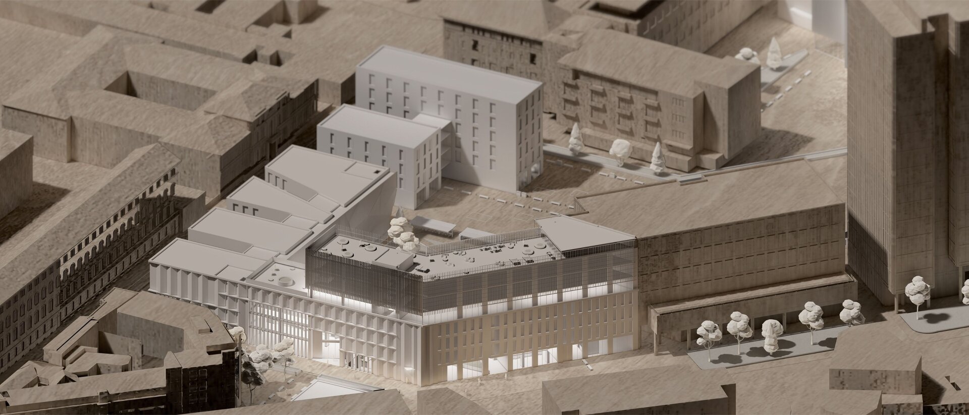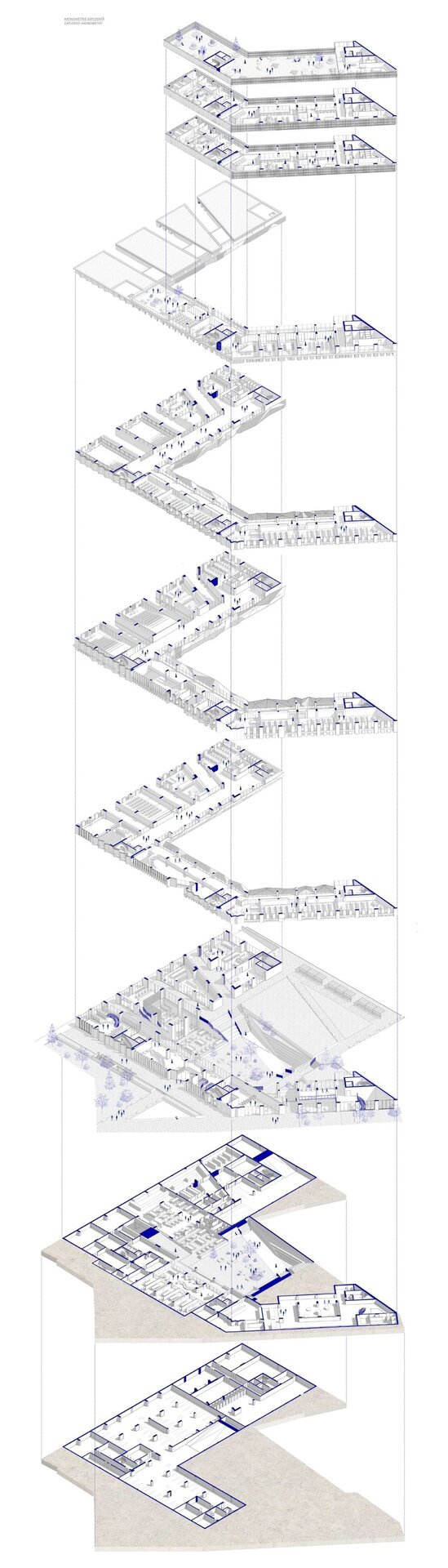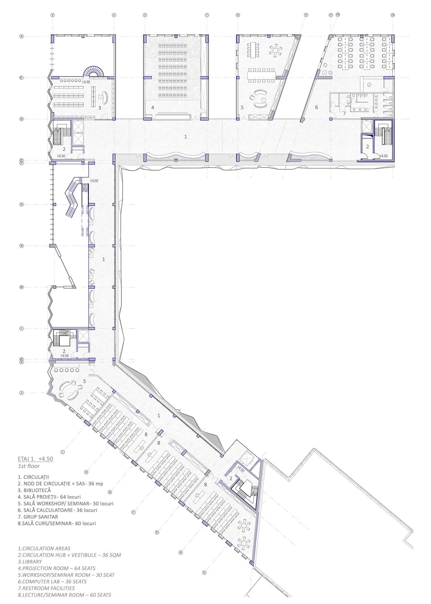 Imaginea de astăzi a țesutului bucureștean este rezultatul numeroaselor peticiri și uzuri de pe firul temporal al evoluției sale. Neconstruitul, ca și construitul, participă în mod activ la peisajul urban. Oportunitatea acestei teme de proiectare a venit în urma învecinării cu Universitatea Politehnica București- Campus Polizu și totodată a dorinței exprimate de conducerea acesteia prin cadrul concursului anunțat în urmă cu câțiva ani. Inserția într-un context fragmentat si afectat de-a lungul timpului a făcut ca primul pas al proiectului să fie propunerea unei imagini noi a întregii insule. Principiile care au stat la baza proiectului sunt: respectarea direcțiilor vechilor parcele, preluarea unor volume si direcții generate de context, refacerea frontului continuu pe ambele străzi, evitarea unor accente de înălțime care ignoră scara medie spre joasă a mediului construit adiacent și cel mai important crearea unei zone centrale- o curte interioară ce funcționează ca un punct de captare și redistribuire a circulațiilor.În cadrul proiectului am ales amplasarea funcțiuniilor publice la nivelul parterului, adăugând o stradă pietonală care să lege cele două străzi la care volumetria are deschidere. Totodată noua zonă pietonală permite generarea unei piețe în directă legătură cu intrarea principală. La nivelul subsolului și în directă legătură cu curtea îngropată sunt funcțiuni destinate studenților precum:săli de lectură, săli de studiu individual și cantină. Spațiile pe dublă sau triplă înălțime, zonele de trecere de la cât mai intim la foarte public, curtea interioară și străpungerile pietonale care duc la ea sunt elemente care definesc complexitatea unui astfel de program.