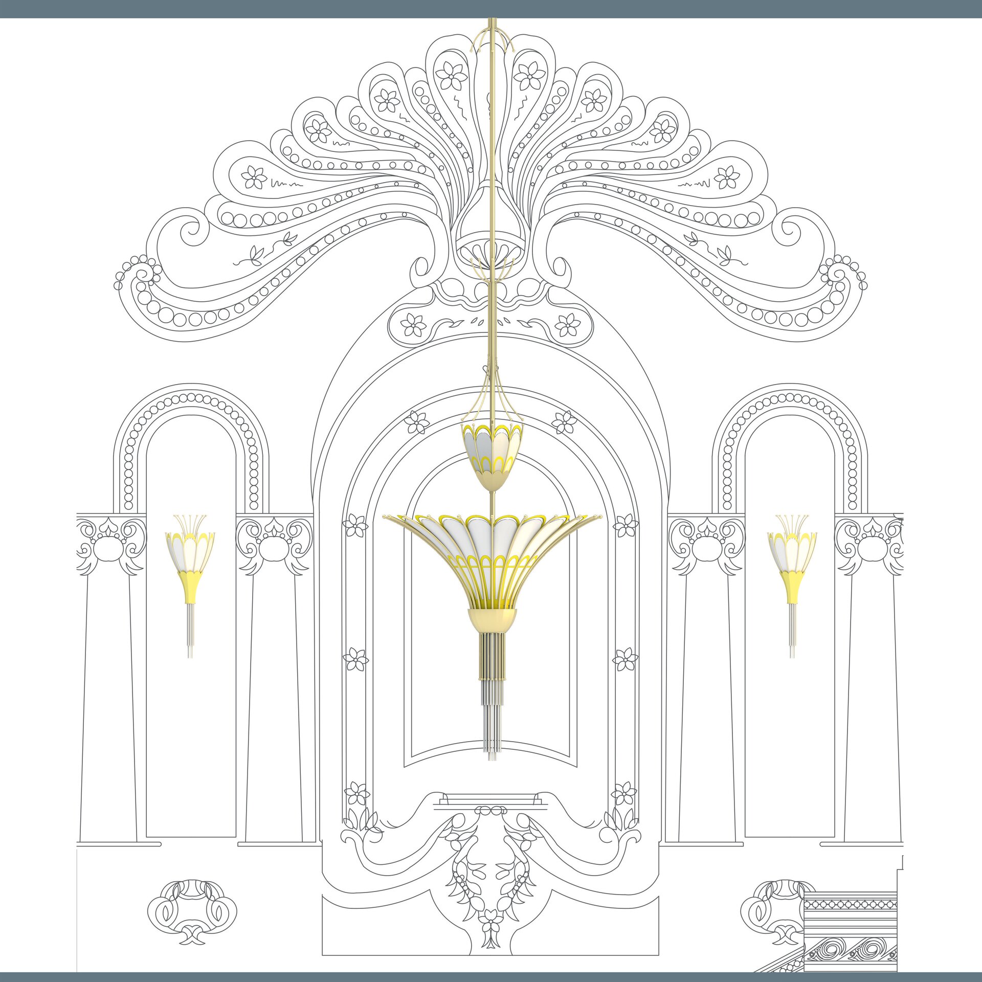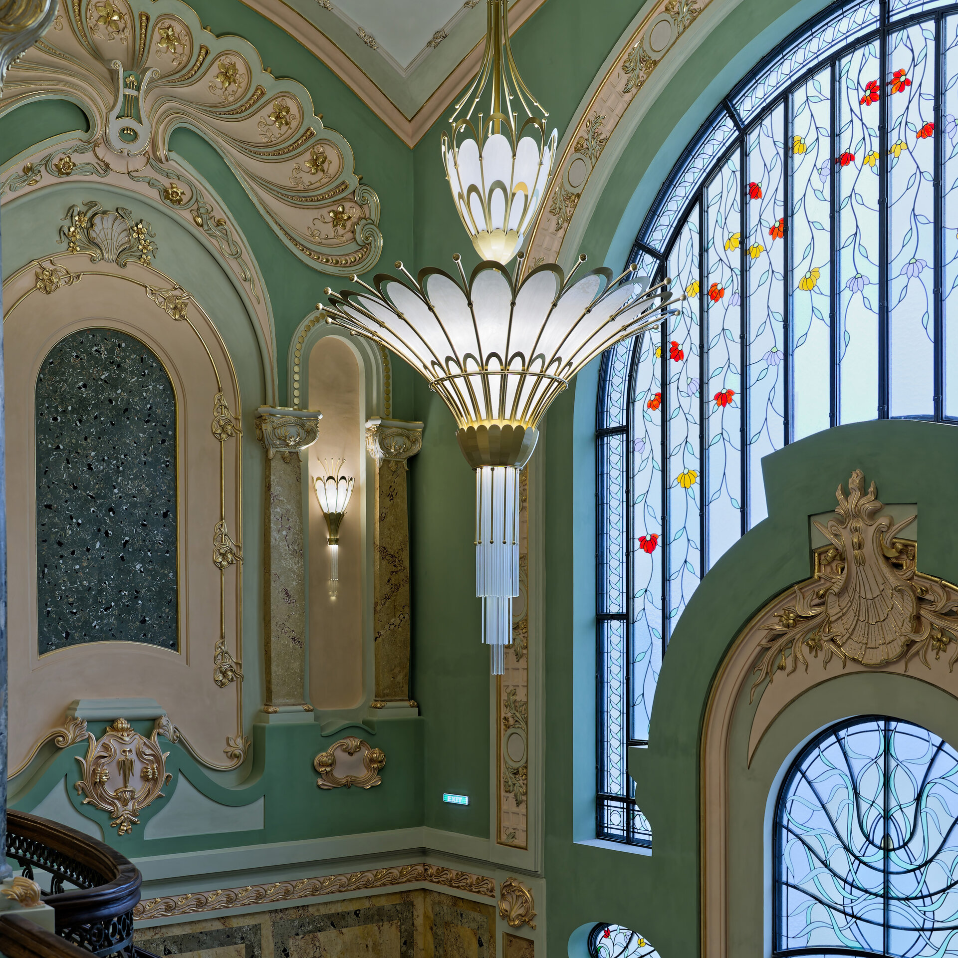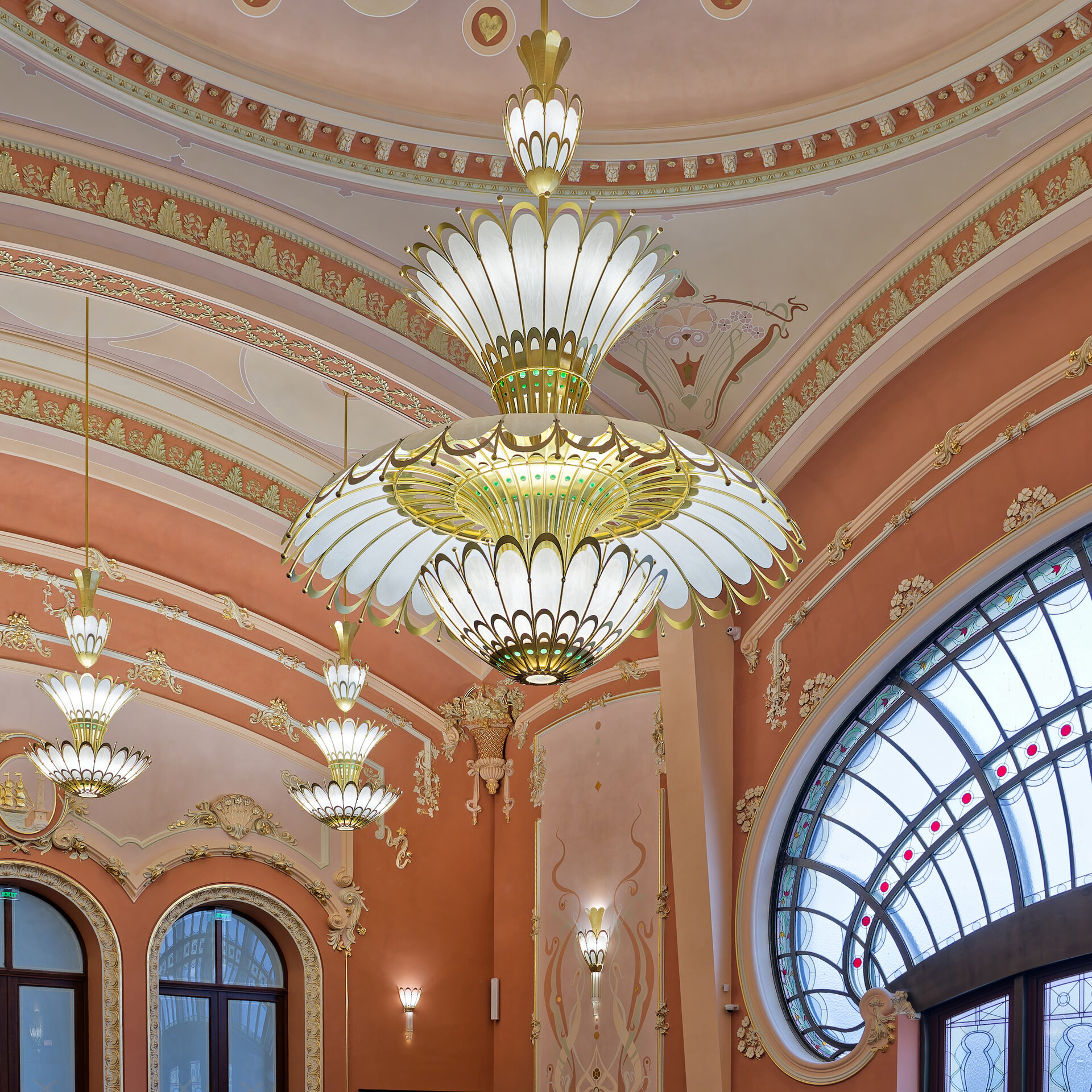 nu existau modele clare pentru candelabre monumentale în stil Art Nouveau. În acest