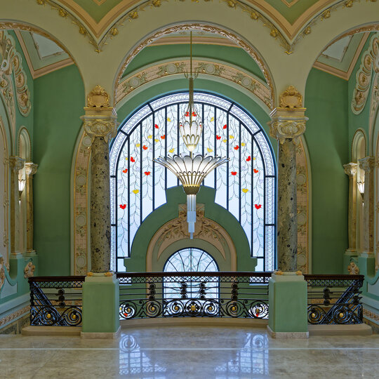și din forme marine evocate de meduzele din Marea Neagră. Pentru casa scării, designul