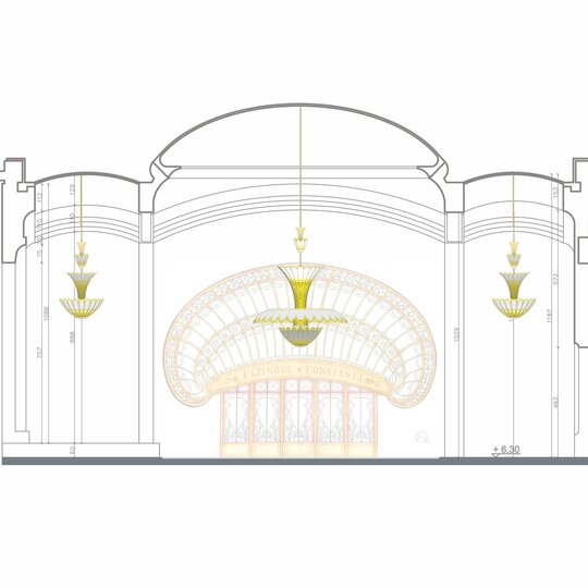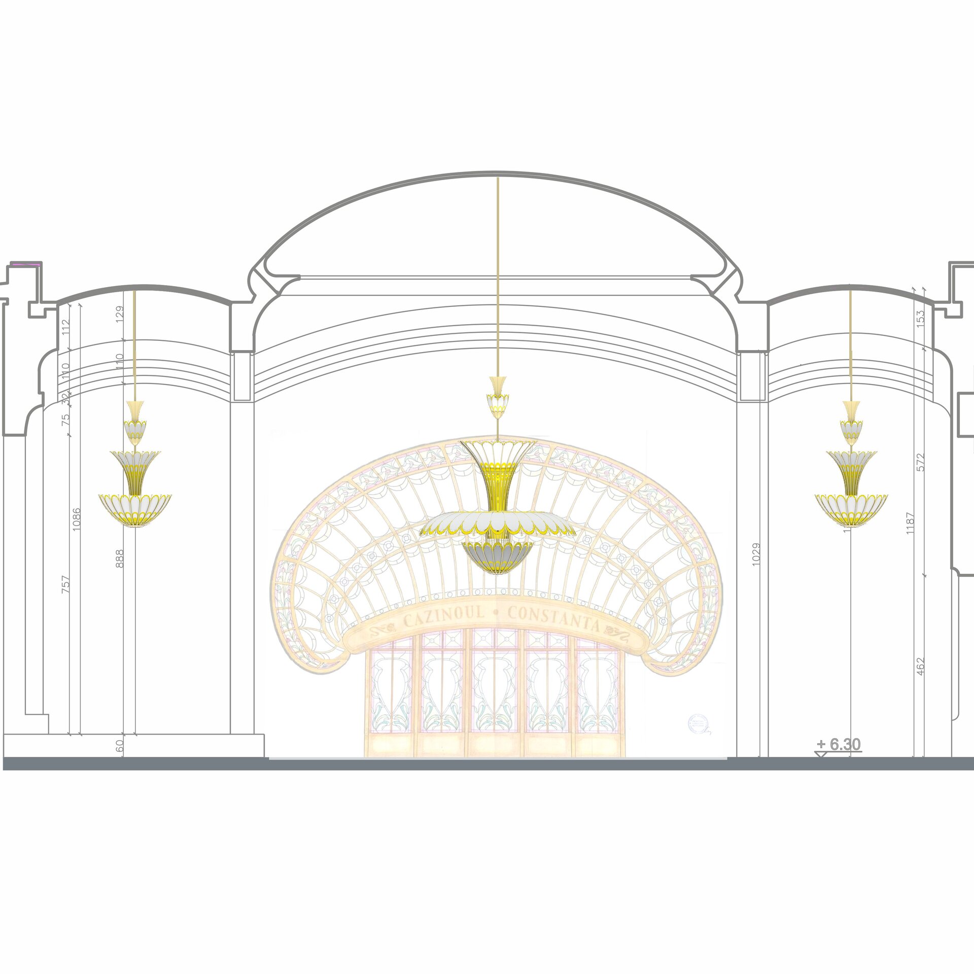 corpurilor de iluminat din Cazinoul Constanța au fost utilizate 3000 kg de alamă și 1160