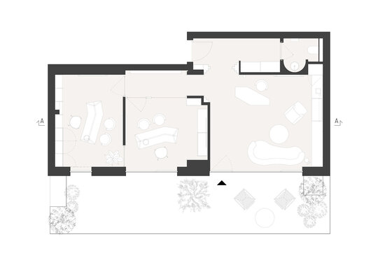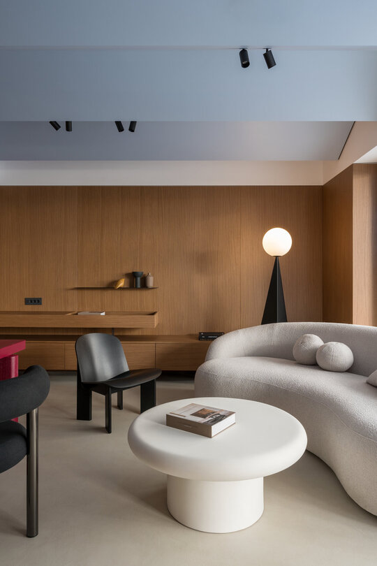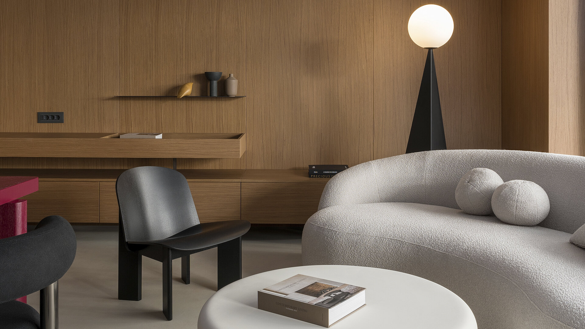 Selecția de mobilier este compusă exclusiv din piese cu caracter, cu alură sculpturală și detalii rafinate: scaune cu siluete curbe și structură metalică, un fotoliu minimalist din lemn închis, canapea organică într-un material tactil și o masă joasă cu volum cilindric. Fiecare element este nu doar estetic, ci și perfect adaptat cerințelor de confort și funcționalitate zilnică.