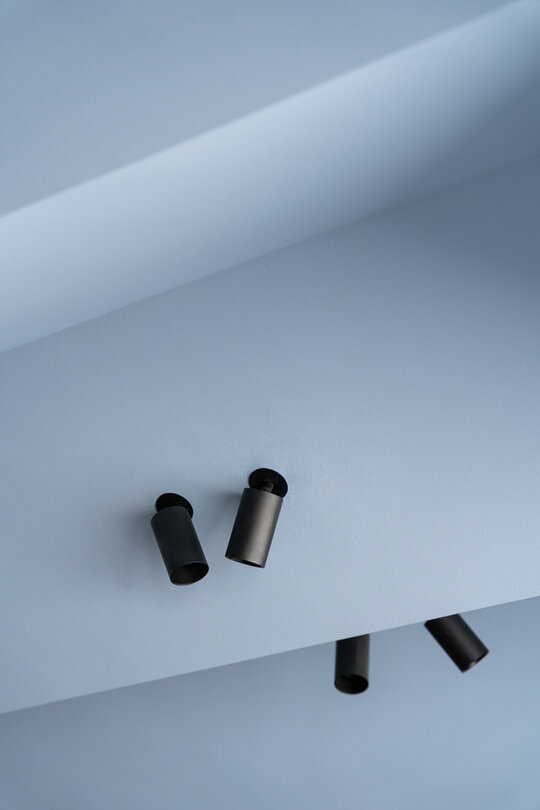 Iluminatul accentuează caracterul spațiului și subliniază intențiile de design: spoturile devin sursele discrete de lumină, în timp ce lămpile sunt puncte de interes ce creează o varietate de scenarii ambientale. Jocul controlat de reflexii, umbriri și contraste contribuie la atmosfera scenografică, sofisticată.