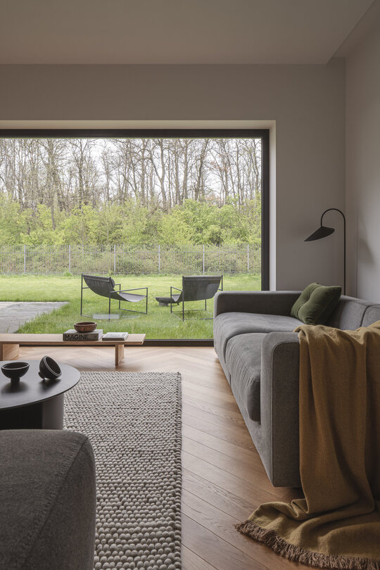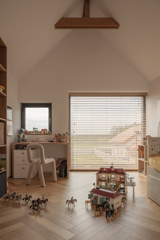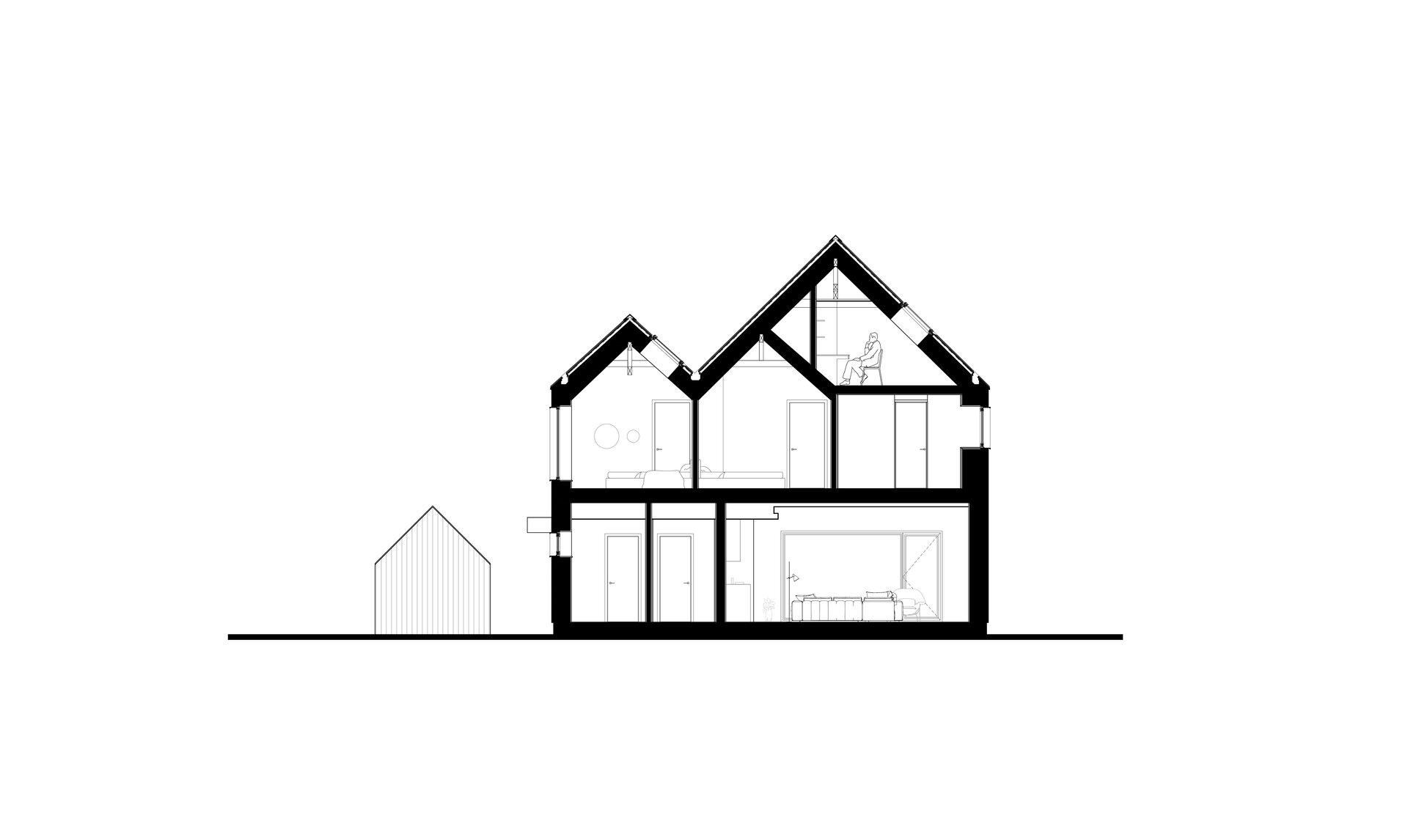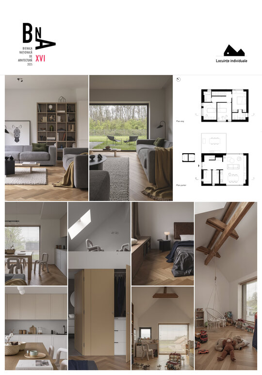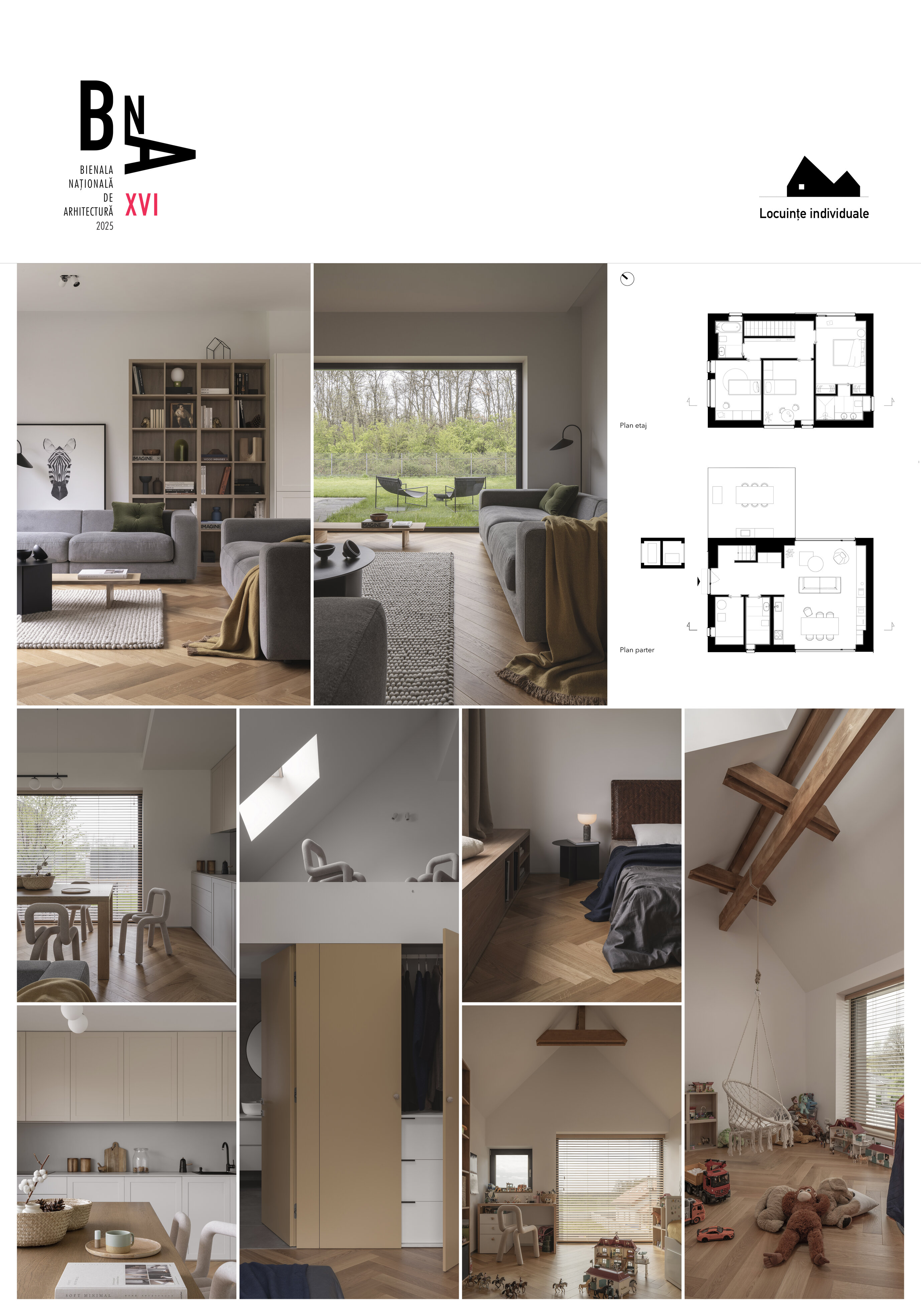 În al doilea rând, s-a dorit obținerea unor spații calitative și funcționale. Deși se desfășoară pe o suprafață totală de 155mp, construcția cuprinde toate spațiile necesare unei familii de patru persoane și folosește fiecare colțișor disponibil, păstrând totuși un aspect aerisit și luminos. Materialele și culorile folosite la interior au fost alese din game cât mai neutre, cu intenția de a încuraja orientarea privirii către exterior.