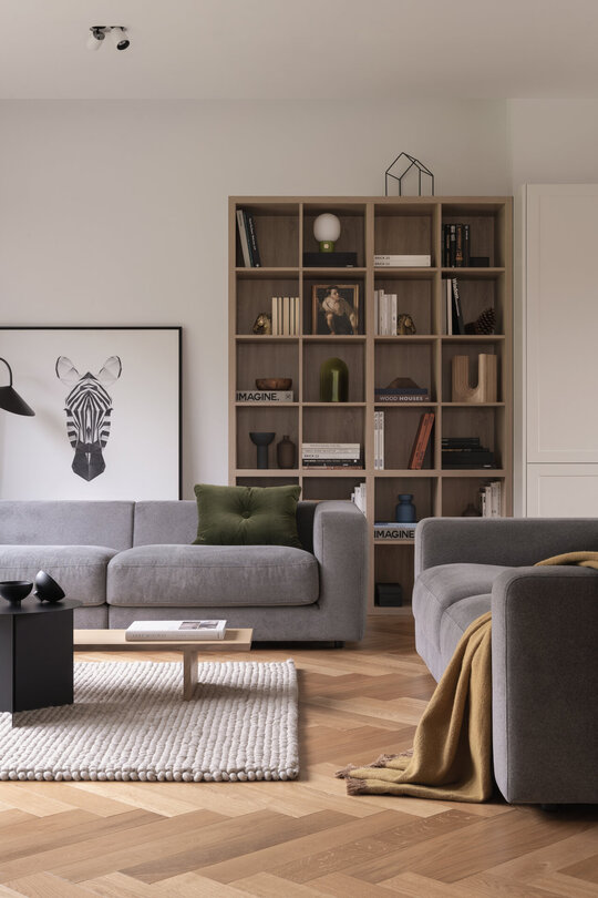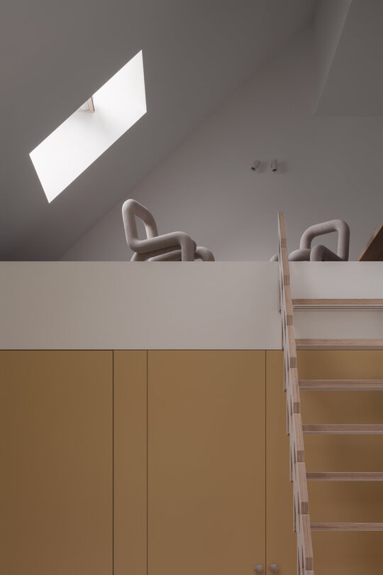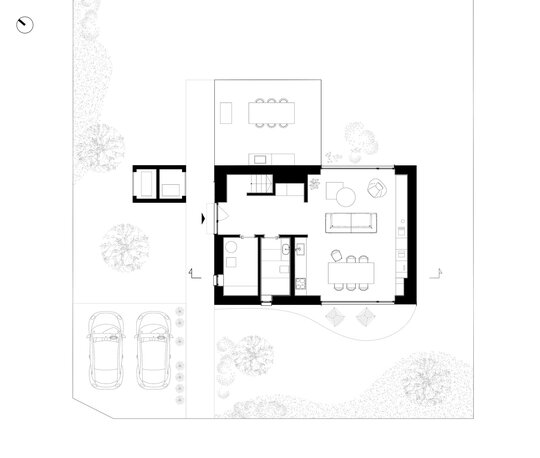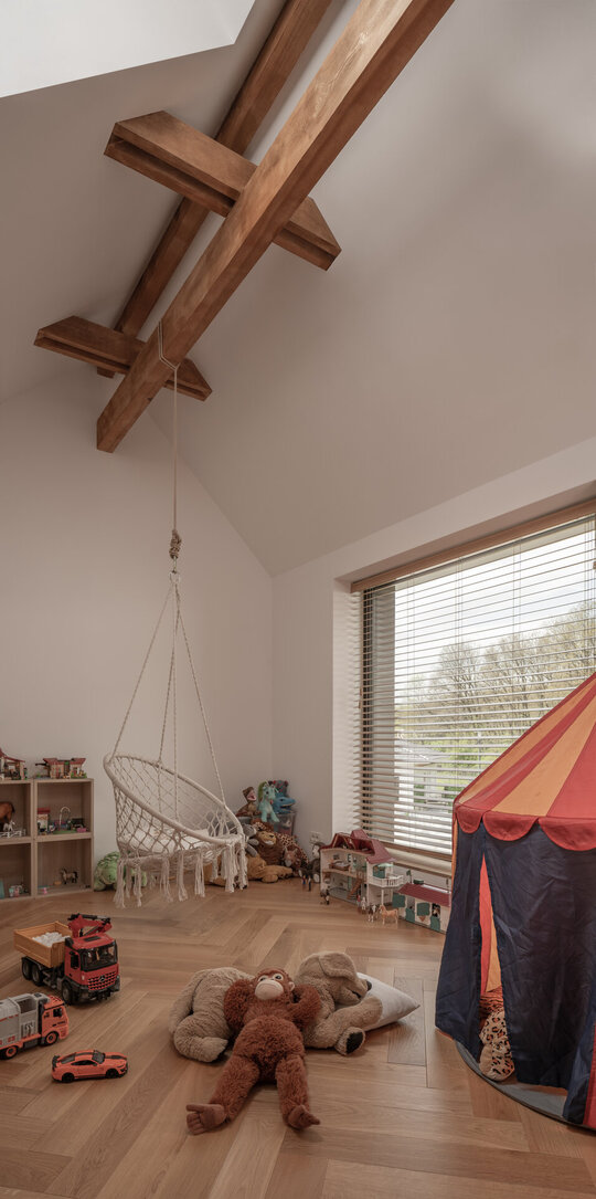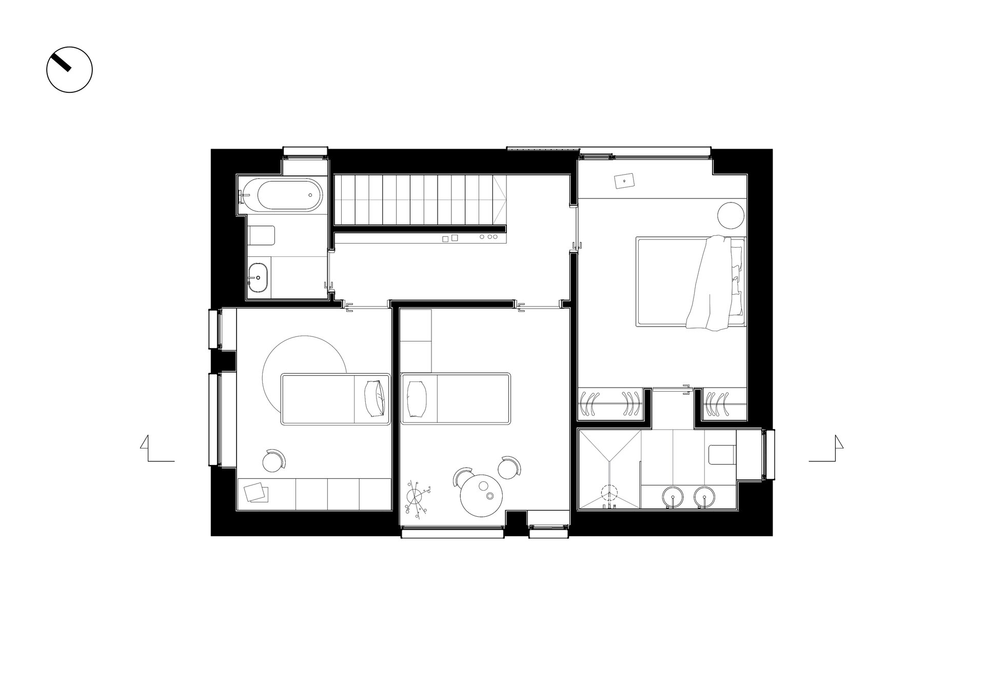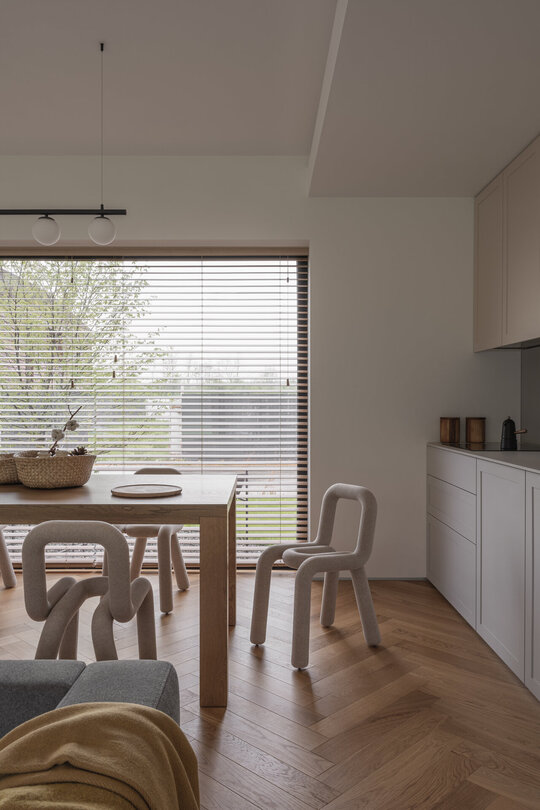 În al doilea rând, s-a dorit obținerea unor spații calitative și funcționale. Deși se desfășoară pe o suprafață totală de 155mp, construcția cuprinde toate spațiile necesare unei familii de patru persoane și folosește fiecare colțișor disponibil, păstrând totuși un aspect aerisit și luminos. Materialele și culorile folosite la interior au fost alese din game cât mai neutre, cu intenția de a încuraja orientarea privirii către exterior.