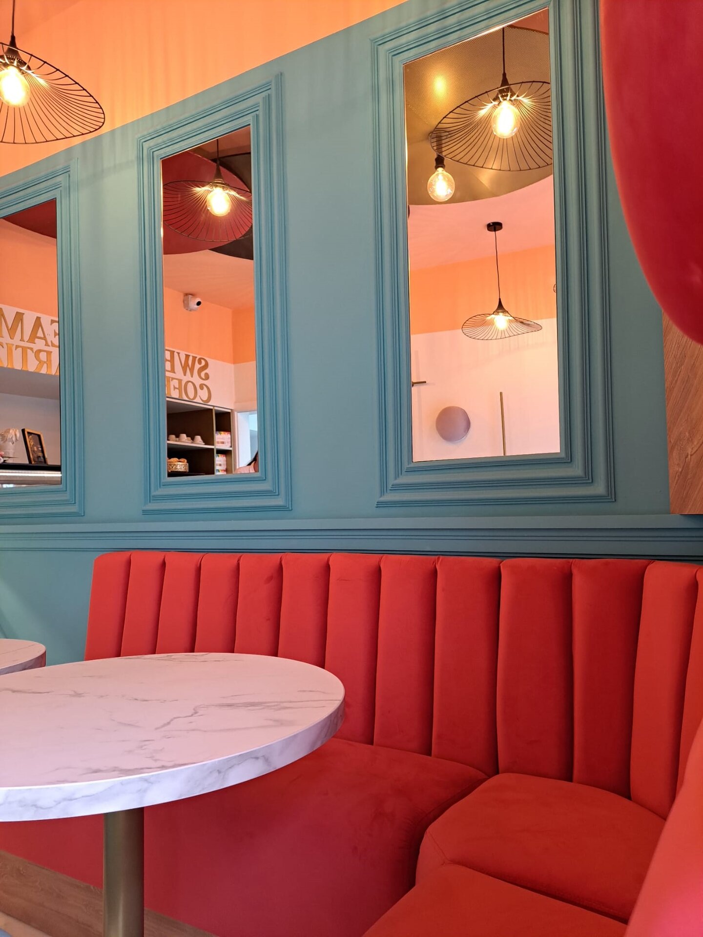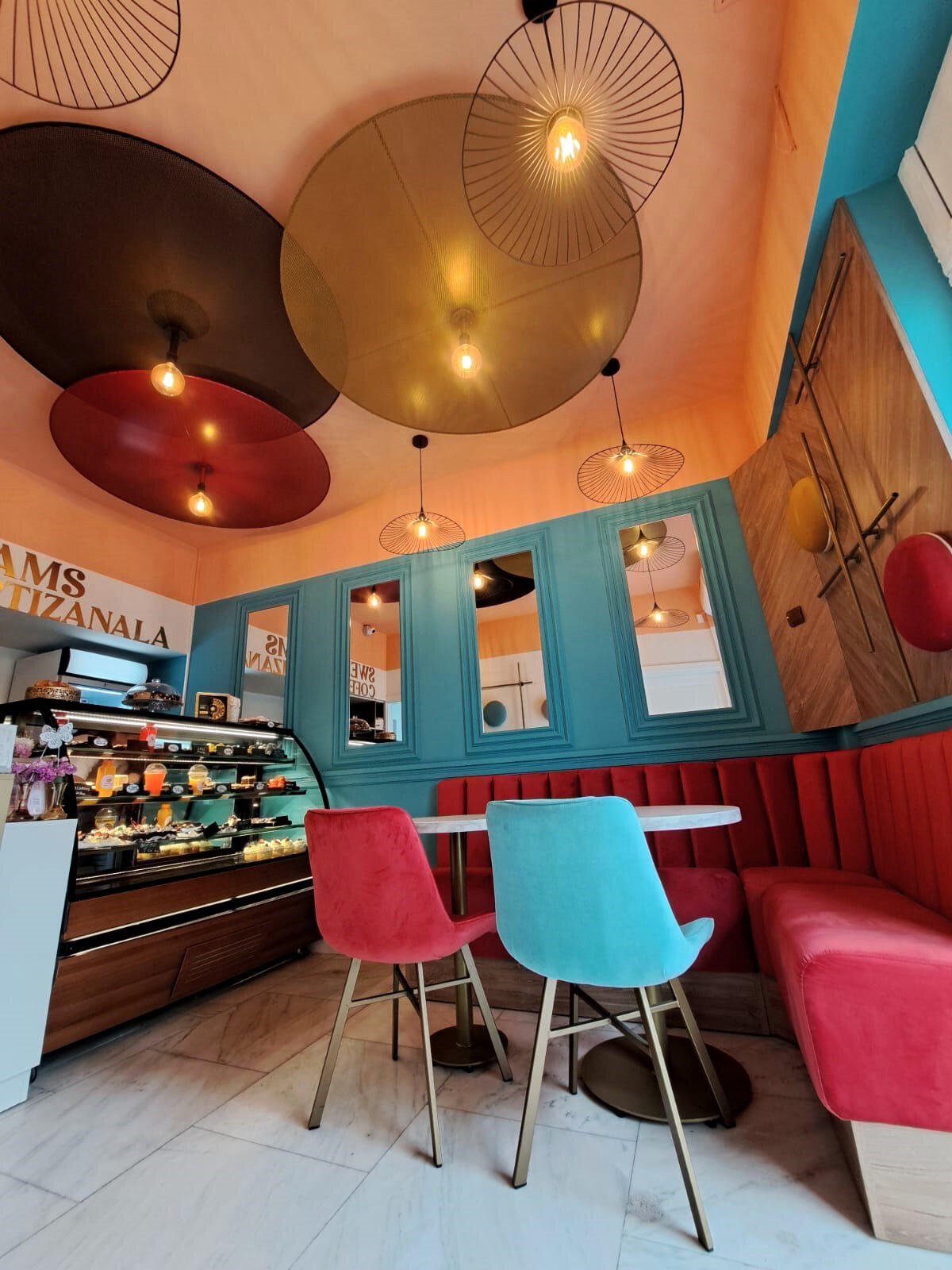 Tema centrală a localului este marcată de explozia de culori și decoruri care transpun vizitatorul direct în lumea îndrăzneață a dulciurilor.